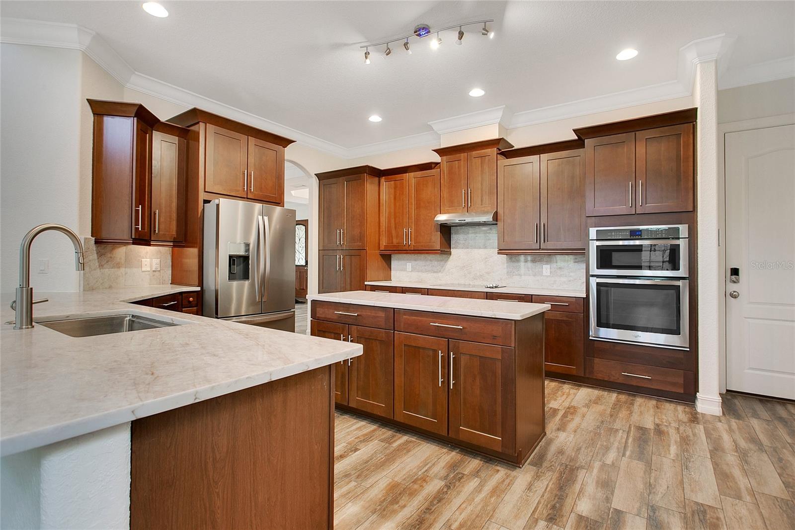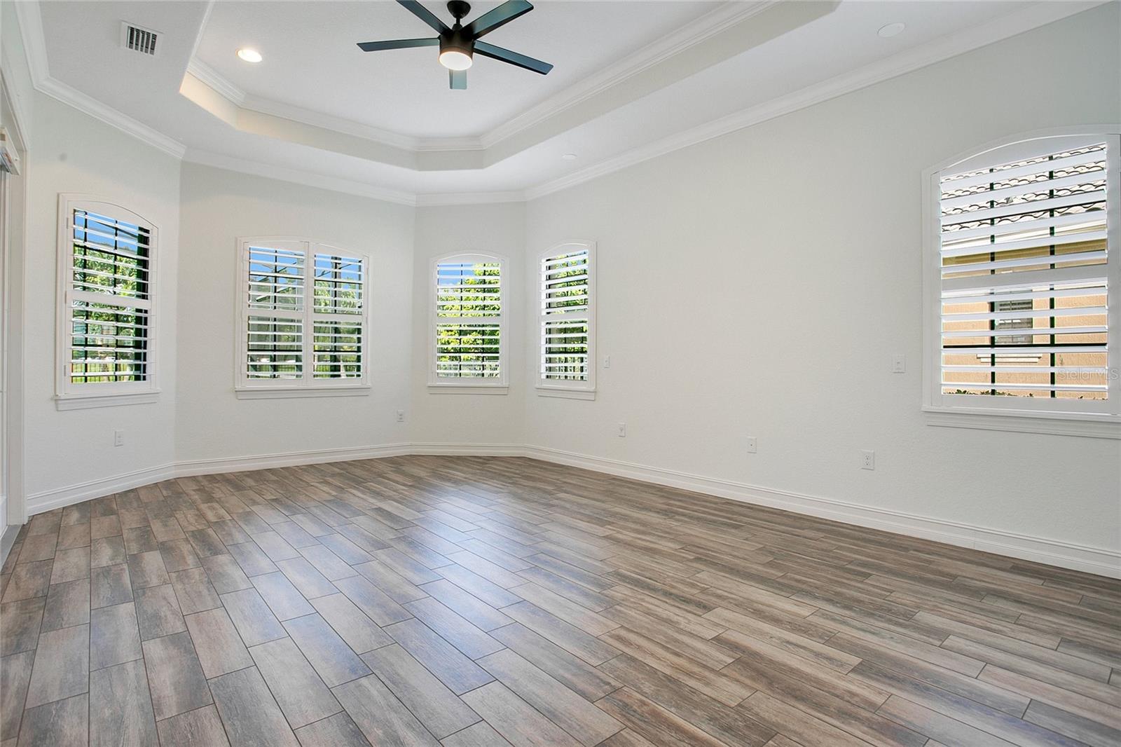Built-in Features, Cathedral Ceiling(s), Ceiling Fans(s), Crown Molding, Eat-in Kitchen, High Ceilings, Kitchen/Family Room Combo, Open Floorplan, Primary Bedroom Main Floor, Solid Wood Cabinets, Split Bedroom, Stone Counters, Tray Ceiling(s), Walk-In Closet(s)