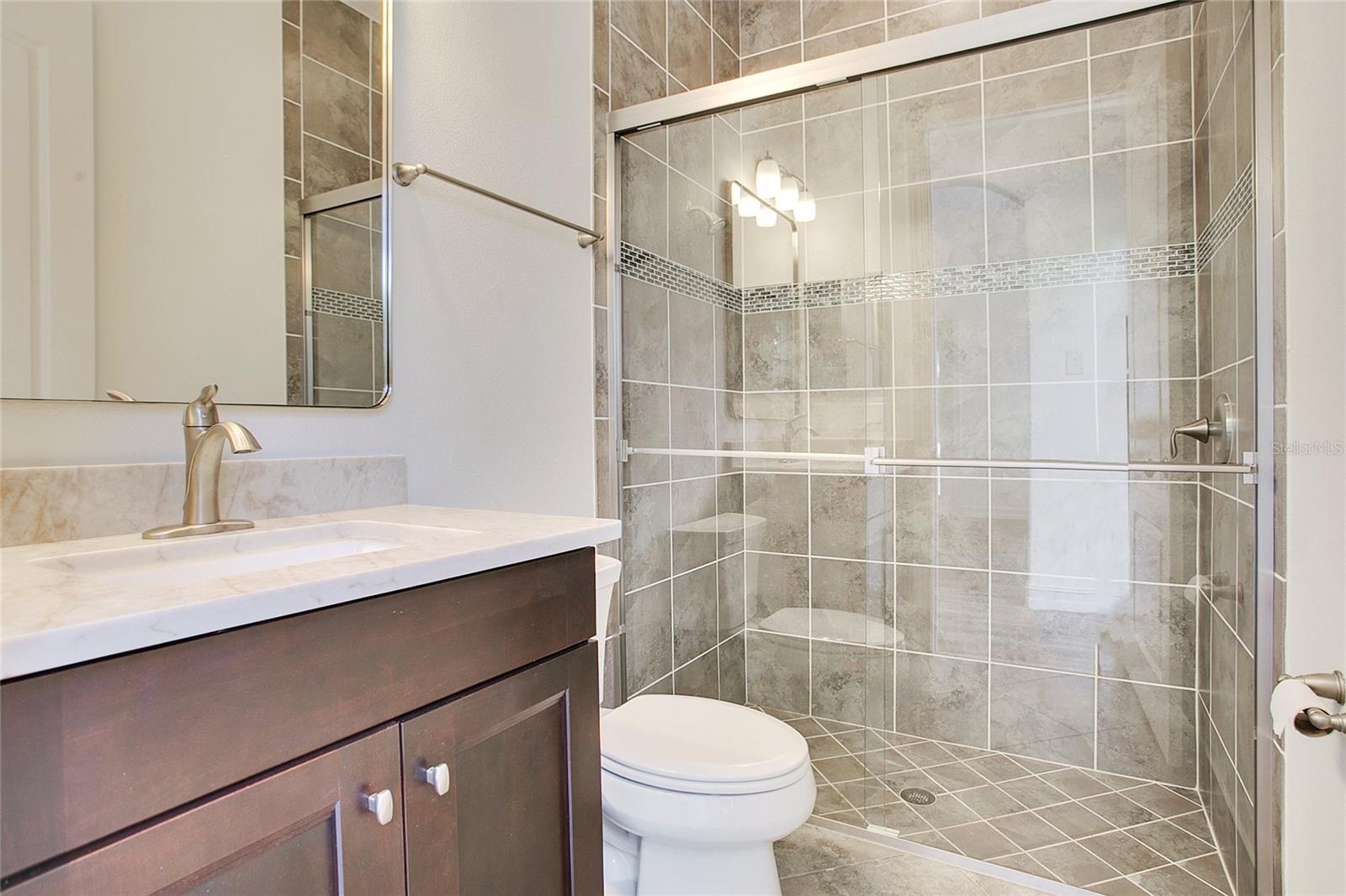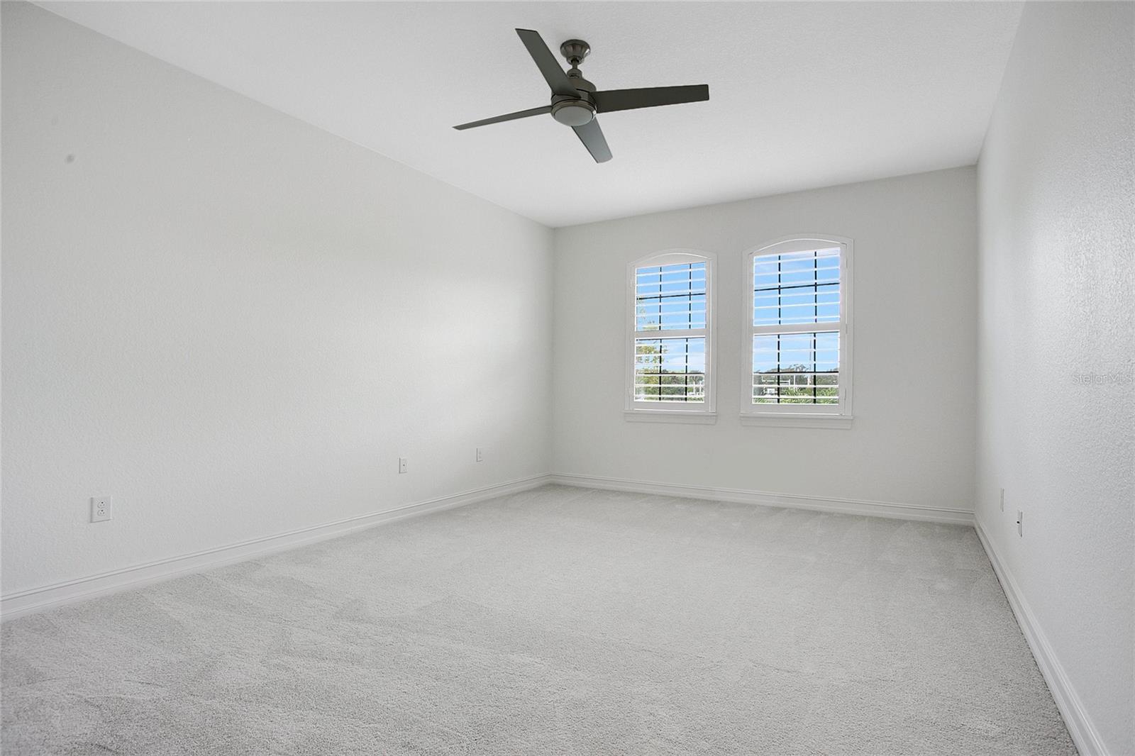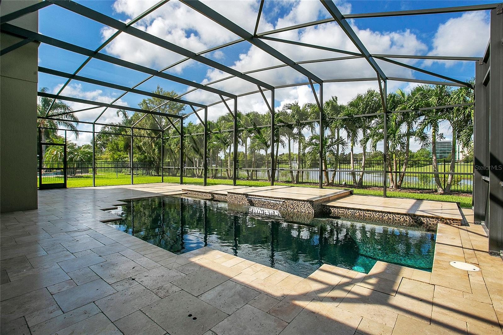 One or more photo(s) has been virtually staged. This is it! Welcome home to this SHOWSTOPPER Pool home with water views overlooking the 7TH HOLE tee box in highly sought after 24 manned gated community of Eagle Creek. Exclusivity, Privacy and Security are at a maximum with access past a 2nd gate required to enter the Balmoral subdivision after getting past the 24 manned gate within Eagle Creek. This like new home feels larger than it is and every room is filled with natural light. The kitchen was recently updated with quartz counters, solid wood cabinets and stainless steel appliances (including a double oven). It overlooks family room with a 22ft ceiling and views of the screened in saltwater pool and travertine deck. The primary suite is downstairs and so is the 2nd bedroom off the 2nd bath that doubles as the pool bath. Upstairs you will find BRAND NEW CARPET, 3 bedrooms 2 full bathrooms and a loft space. Eagle Creek is the jewel of Lake Nona and besides it's incredible golf course it offers multiple pools, a fitness center, basketball courts, tennis courts, playground and is golf cart friendly. Click Virtual Tour Link 1 for Matterport Interactive Walkthrough. Click Virtual Tour 2 for a drone view of the entire home.