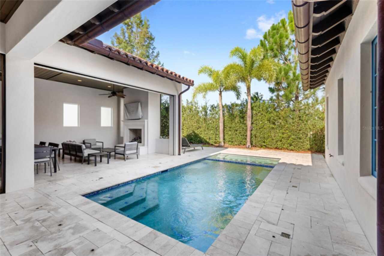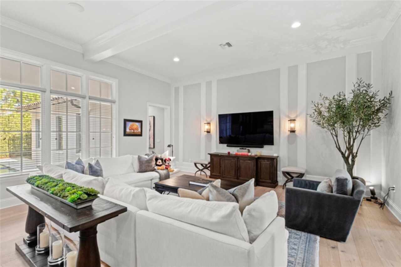 Located deep inside the prestigious Golden Oak neighborhood, "Venice" was built in 2018 by renowned builder ISSA homes as a graceful Spanish-style residence that blends timeless architecture with the magic of Disney living. Designed for both relaxed living and elegant entertaining, the home’s open-concept layout seamlessly connects the great room and gourmet kitchen to a tranquil courtyard and expansive outdoor living space. The first-floor primary suite is a peaceful retreat, complete with courtyard views, a spa-like bath, a large walk-in closet, and a layout that prioritizes both comfort and privacy. Outdoors, a resort-style experience awaits, with a summer kitchen, fireplace, pool, roll-down screens, and spa designed for year-round enjoyment. Upstairs, a spacious loft was thoughtfully imagined as a Jungle Cruise-inspired getaway, offering a whimsical escape that still feels elevated and refined. Offered fully furnished, this home is move-in ready with interiors that complement the home’s architecture and warm, welcoming aesthetic. As part of the Golden Oak lifestyle, residents enjoy exclusive access to Summerhouse, the private clubhouse featuring casual yet upscale dining, a fitness center, resort-style pool, family room, and concierge-level service. Also offered for a one-year lease. Call today for more information or to set up a private tour.