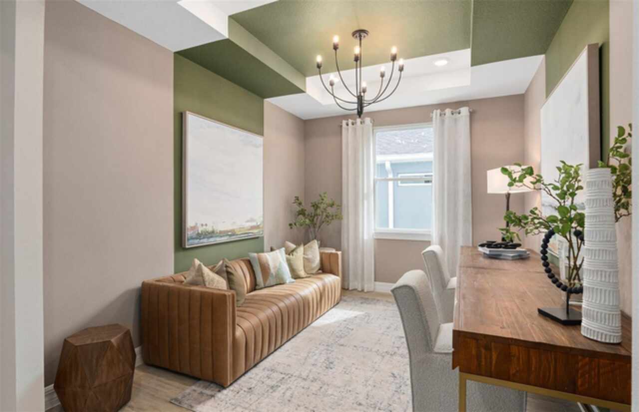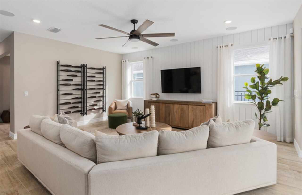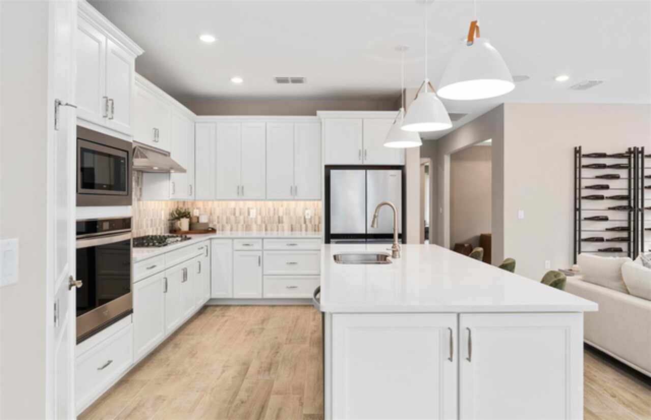 Under Construction. Parkview Reserve is a highly anticipated neighborhood in the heart of coveted Dr. Phillips! Located off Daryl Carter Parkway, this new construction, luxury estate-style single-family home community features private homesites with pond and conservation views, within walking distance to O-Town West, Dr. Phillips Community Park, and highly ranked schools. This natural gas community is located less than two miles from I-4, theme parks and the famous dining, shopping and entertainment of Restaurant Row – all with a low HOA and no CDD. Experience the perfect blend of luxury and convenience with this brand-new, ready-to-move-in Mystique Grand home by Pulte. This two-story home situated on a water view homesite offers a thoughtfully designed layout featuring 4 bedrooms, 4 bathrooms, and a 2-car garage. The owner's suite is conveniently located on the first floor, offering a private retreat with a spa-inspired en suite bathroom. The heart of the home is the open-concept kitchen, café, and gathering room, where natural light floods the space, creating a welcoming and airy atmosphere. Tall ceilings, expansive windows, and a pocket sliding glass door leading to the covered lanai seamlessly blend the indoor and outdoor living areas, ideal for effortless entertaining. Enjoy your outdoor kitchen as you relax on your lanai overlooking the water view. The gourmet kitchen is a true highlight, featuring Whirlpool stainless steel appliances—including a built-in natural gas cooktop and a refrigerator, 42” Winstead White soft-close cabinetry, Quartz countertops, and a decorative tile backsplash. A spacious walk-in pantry, upgraded faucet, single-bowl granite sink, under-cabinet lighting, and pendant pre-wire complete this culinary space, which is both stylish and functional. The owner's suite is designed for relaxation, with an en suite bathroom that includes a glass enclosed shower, garden tub, dual vanity with quartz countertops, a linen closet, and an enclosed toilet for added privacy. On the first floor, you’ll also find two conveniently located spare bedrooms and two full bathrooms (one of which is attached to a bedroom as an en suite) at the front of the home, offering privacy for everyone. The first-floor laundry room offers includes built-in cabinets, quartz countertop, utility sink, and Whirlpool washer and dryer for added convenience. Upstairs, the expansive loft provides additional space for leisure, and the third bedroom features its own walk-in closet and private bathroom. Throughout the home, designer-curated finishes enhance the sense of luxury, including brushed nickel hardware and plumbing fixtures, garage floor epoxy finish, and Sherwin Williams City Loft Interior Wall Paint throughout. The entire first floor is outfitted with beautiful tile flooring, while the loft and upstairs bedroom are enhanced with plush, stain-resistant Shaw brand carpet adding warmth and comfort. For a more refined look, this Mystique Grand home includes wood treads on the staircase. This home is also equipped with the latest in-home technology, including a smart thermostat, video doorbell, LED downlights, digital IP camera pre-wire, electric car plug-in, and garage lighting package. Don’t miss the opportunity to own this beautifully designed home with unparalleled functionality and elegance. Schedule your tour today!