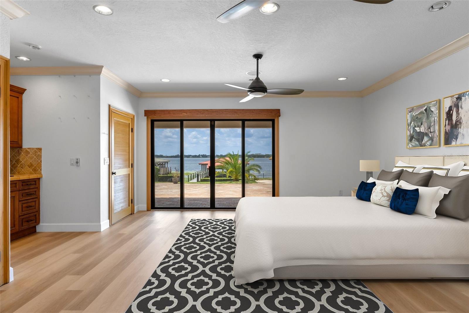 Under contract-accepting backup offers. Enjoy stunning sunsets from your private estate with expansive views, located on Lake Down, the prestigious Butler Chain of Lakes in Windermere. This well-appointed property features 2.78 acres with fully fenced terraced grounds, electric security gates, brick pavers, mature landscaping for privacy, and 130 feet of water frontage with a seawall, enclosed boat house, dock, and lift. The heated 7, 363 square feet of living space includes the main home with 4 bedrooms and 5 bathrooms, as well as a lake guest house. Most rooms are graced with breathtaking views. Almost 10, 000 square feet under roof, with a porte cochere, extensive balconies, walkways, outdoor kitchen, and multiple patios. The screened pool area has an inviting resort feel, complete with a waterfall, slide, and hot tub, all connected to the outdoor entertainment areas. Many quality upgrades, expansive ceilings with craftsman woodwork, wood and marble floors, formal dining with a music room, and fireplaces in the living, family room, and primary bedroom. The living room features a floor-to-ceiling window with remote-control blind, taking full advantage of the priceless view. The main staircase gives a dramatic vantage point to appreciate the open floor plan, ideal for entertaining. The well-appointed kitchen features a chef's prep kitchen, electric and Wolf gas double oven, two Sub-Zeros, double dishwashers, and a built-in espresso machine. All kitchen elements are set within rich wood custom cabinetry and granite countertops, with a breakfast room that leads to the pool area. The guest bathroom, laundry & family room are all conveniently located near the pool. The primary suite is downstairs and includes a private screened porch, remote-control blackout blind, custom cabinet with washer & dryer, and a large master bath with a soaking tub, walk-in shower all with elegant stonework. The suite is adjoined by a generous custom closet, safe for valuables, private gym with mirror, rubber floor, bonus storage, and a private staircase to the upstairs. Upstairs features large bedrooms with lots of closet space, balconies overlooking the water with Ipe decks and a secondary family room or playroom for the family. The lake cottage spells fun with balconies all around and views of the water and pool on three sides. Open beam ceilings, bamboo and new luxury vinyl wood floors, full kitchen & living room upstairs with a full bedroom and bath downstairs complete with a wet bar. The property has rear yard access down to the lake, great for boat parking or extra parking when you rally the team for a volleyball match on the court. You can also utilize the tennis courts & private boat ramp just a short walk down the street. There are too many low maintenance, cost saving features to list, but a few include; energy efficient solar power, metal roof, and three on demand propane powered gas water heaters. There are over $55, 000 in solar panels that will save countless dollars over the years and is good for the environment. The electric bills are minimal. As I mentioned earlier Ipe hardwood is the best exotic hardwood the industry has to offer and it was used on the extensive decks for low maintenance. A new two horse sprinkler pump was recently installed that draws from the lake to maintain the exotic landscape. The durable easy to clean composite dock has two lifts & two boat slips. The owner will even throw in the $50, 000 ski boat (approx Value) with an acceptable offer.