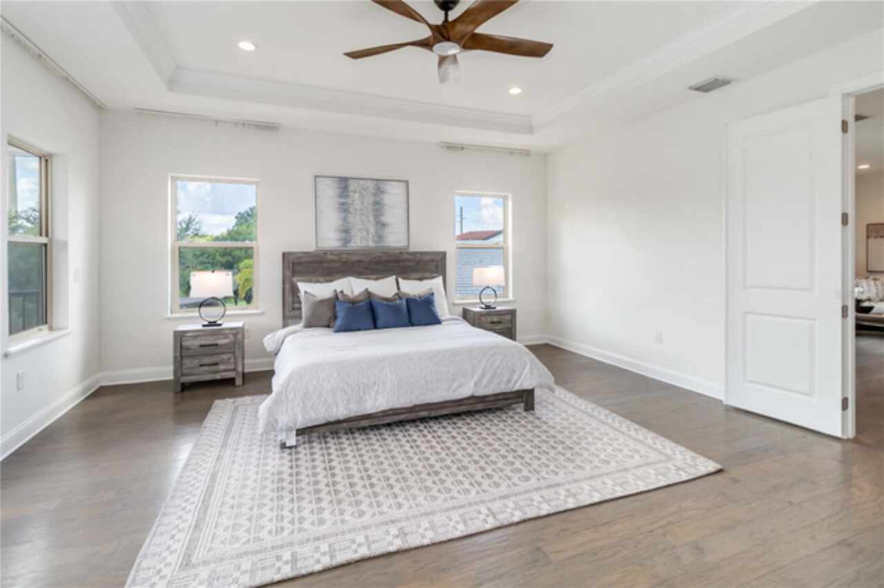 Royal Cypress Preserve, a luxury community situated just beyond the magic of Walt Disney World in Orlando, is the perfect intersection of serenity and luxury. This exquisite modern-style Toll Brothers home is located just minutes from the famed Restaurant Row, Walt Disney World, and Universal Studios. Nestled behind the gates of Royal Cypress Preserve sits this upgraded pool home, featuring one of the largest lots in the community, with preserve & Disney Fireworks views, a gourmet kitchen perfect for entertaining, a picturesque rose garden and backyard, and several designer upgrades throughout. This home features 5 bedrooms and 5 bathrooms, including dual owner's suites —one on the first floor and one on the second. Upon entry, you will be immersed in natural light from the two-story entry. There is a dedicated office and an open loft area with limitless options. You can sit from the second floor owners' suite on the private balcony or on the patio of the outdoor oasis with a screened-in pool and summer kitchen, and enjoy the nightly Walt Disney World firework show. This home sits on an impressive lot with a sizable pool and an abundance of green space, a basketball hoop that conveys, surrounded by no rear neighbors. In need of a change of scenery? Take a short stroll over the private community dock overlooking South Lake and take in the beautiful water views from there. Looking for a more active repass? Take advantage of the fitness center or the skiable waters with a boat, jet skis, kayak, or paddleboard. Experience resort-style living at Royal Cypress Preserve, a private 24-hour guard-gated enclave of only 206 homes that features a resort-style clubhouse with a zero-entry sparkling pool and fitness center overlooking the pristine 124-acre South Lake with landscape maintenance included in the HOA. Enjoy life, luxury, and limitless possibilities by making this home yours today!