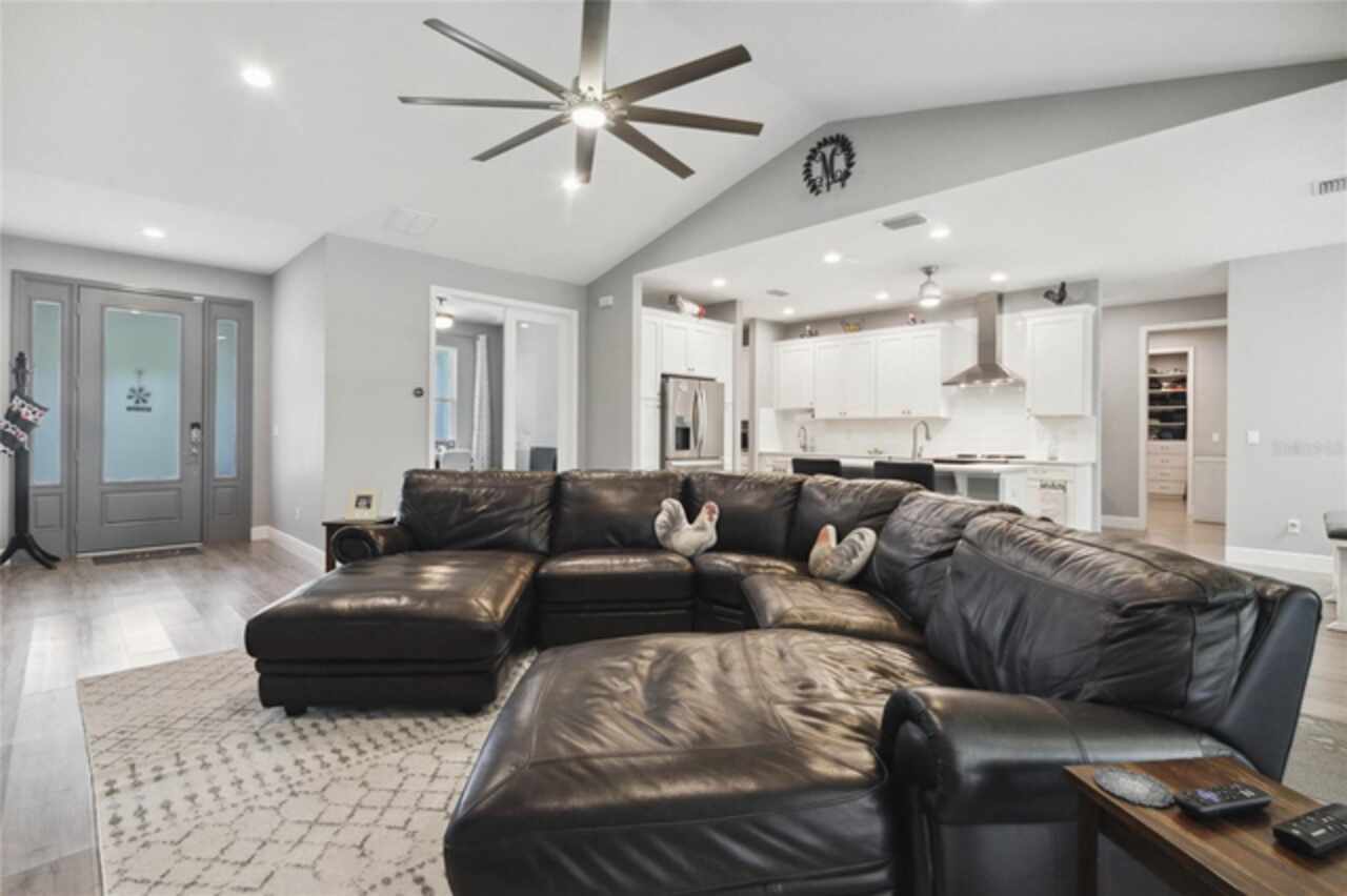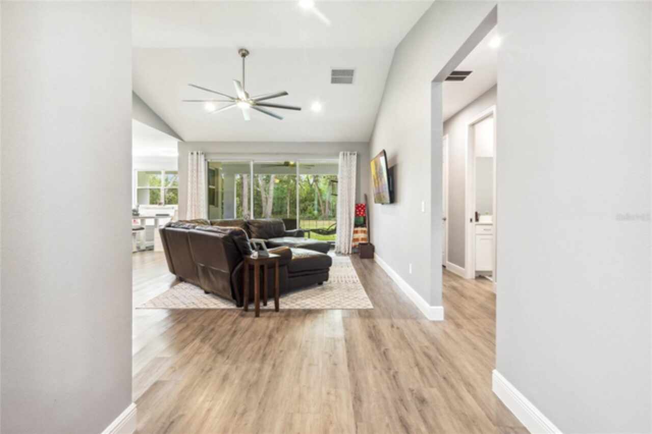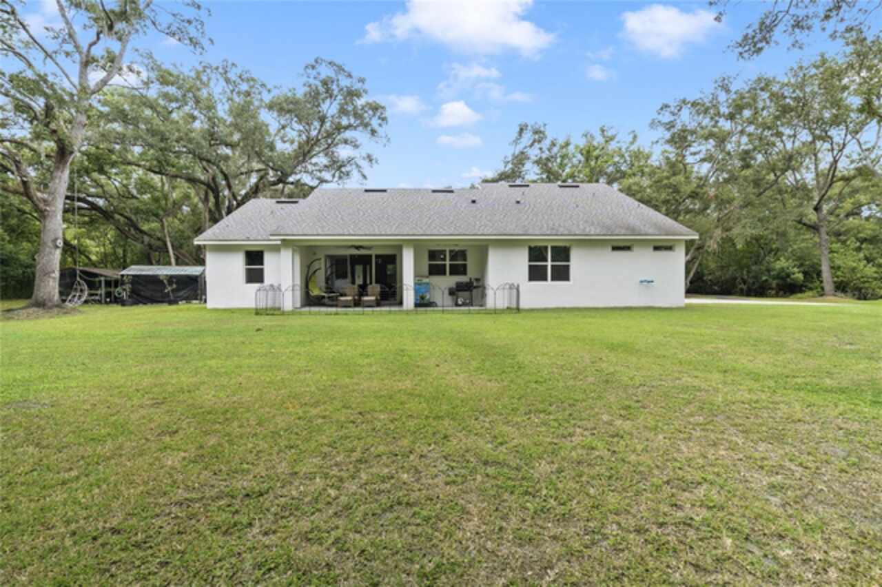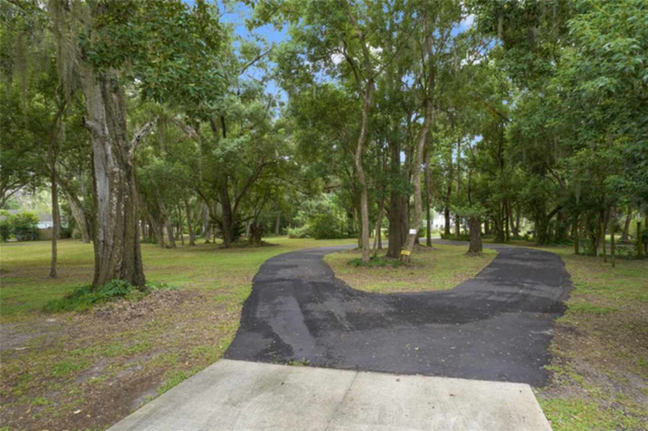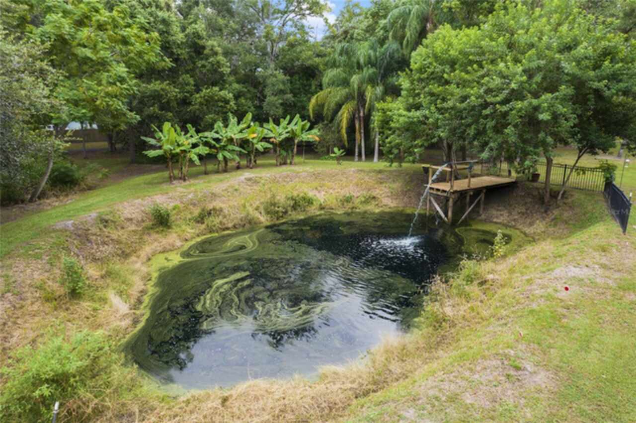 Don’t miss this rare opportunity to own almost 5 acres in the heart of downtown Winter Garden. Privacy at its best yet just a short golf cart ride to downtown for your restaurants retail therapy and fun, YES IT IN THE GOLF CART DISTRICT! 2019 custom built home sits on 4.89 acres of privacy. Two separate driveways lead to this beautiful home. This two-story home currently is a 3 bed 2 bath with unfinished space for 1 bed 1 bath upstairs. Seller will completed by closing (if buyer prefers).. It is pre-wired and pre-plumbed just needs drywall and finishings. Enter through the front door to a spacious open plan with split bedrooms and an office with glass doors overlooking the front yard with a beautiful glass picture window. 10ft ceilings throughout . The kitchen has custom tall cabinets with crown molding, Whirlpool, stainless steel appliances, and beautiful quartz countertops. The island also has a farmhouse sink. The primary bedroom is spacious and has a beautiful spacious walk in closet with California closet system installed. The master bath has a large shower with three showerheads one is a rain system. Two separate sinks with quartz countertops the other two bedrooms are on the opposite side of the house with a shared bathroom . Back in the large family room there are sliding pocket doors opening up to a covered back porch overlooking the backyard and wooded area to the rear for complete privacy. The front of the property also boasts a pond with aerator and a deck to sit on and overlook or fish from. Plenty of nice, mature Oaks and lots of fruit trees compliment this beautiful private oasis. Five years remaining on the builders warranty and also five years warranty on the HVAC system, which will transfer to the buyer. Energy star Windows. Exterior 360 camera security system will stay with the home (buyer would pay for monitoring) Outside, you will find a large shed, chicken pen and also another larger shed for storage. this home is across from the Tildenville Elementary School and just 1 mile from downtown Winter Garden. The land used to be two lots, so there is a possibility you could divide back up and build another house on the property. buyer/buyers agent would need to check with the city of Winter Garden. 5 Chickens are allowed with City permit buyer/buyers agent to check all measurements.