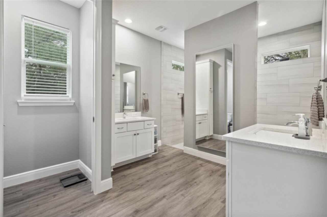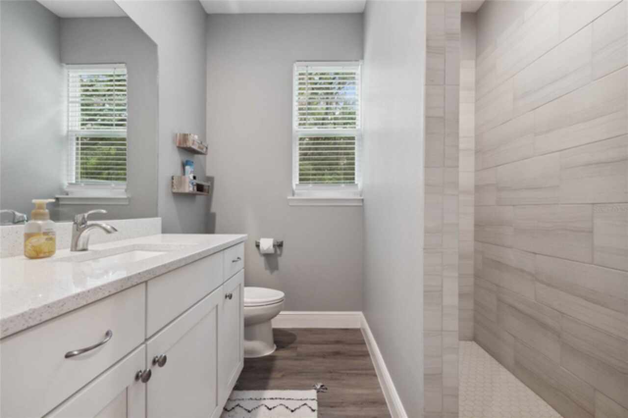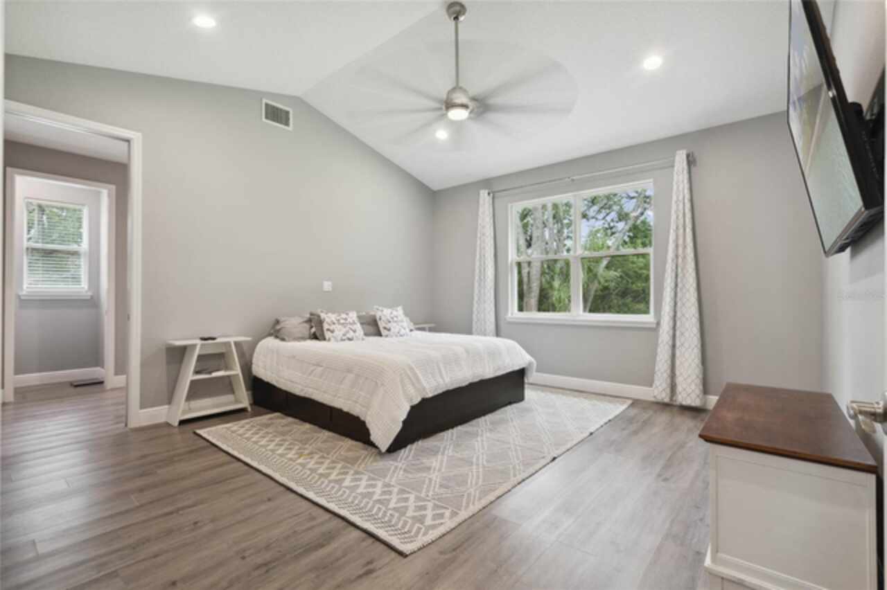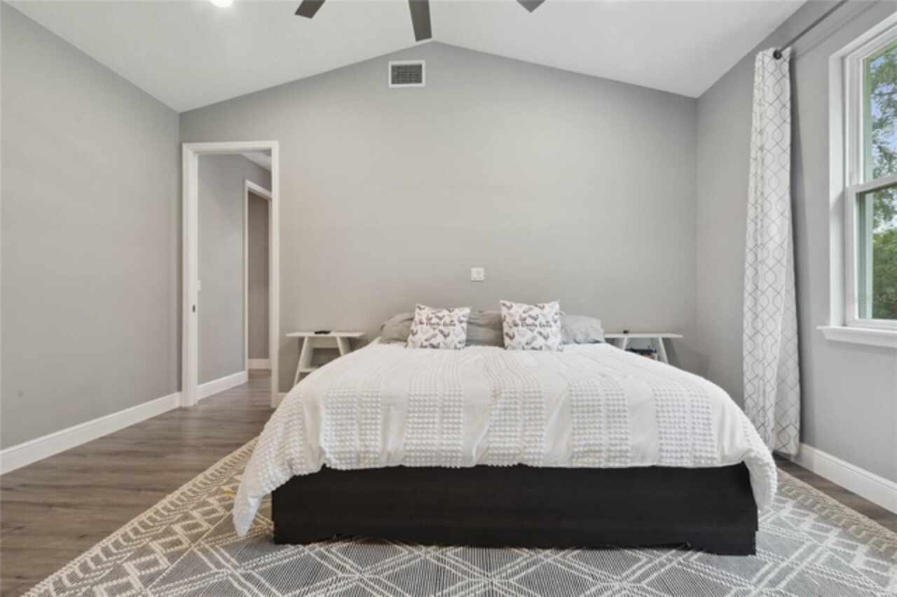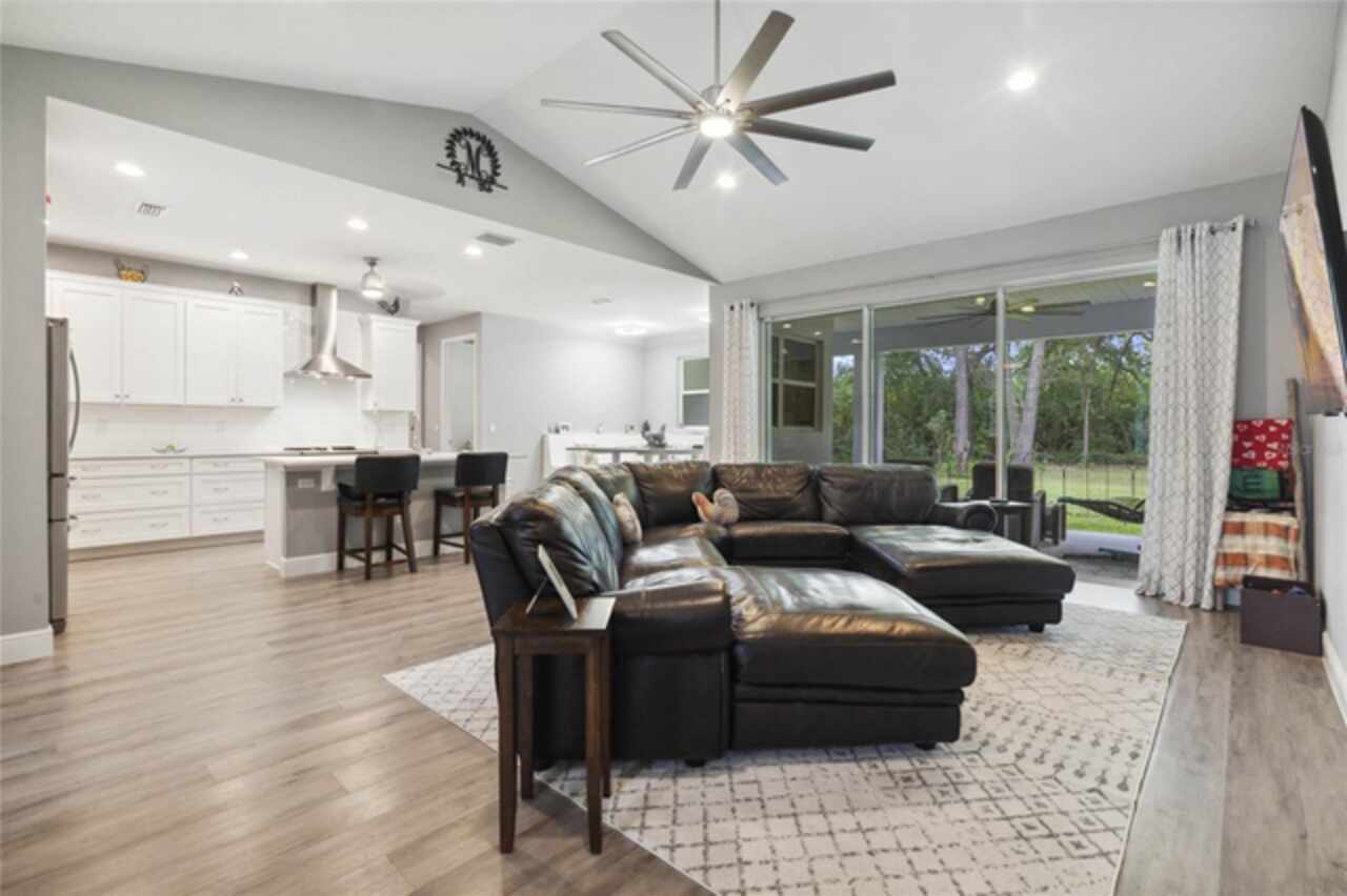 Don’t miss this rare opportunity to own almost 5 acres in the heart of downtown Winter Garden. Privacy at its best yet just a short golf cart ride to downtown for your restaurants retail therapy and fun, YES IT IN THE GOLF CART DISTRICT! 2019 custom built home sits on 4.89 acres of privacy. Two separate driveways lead to this beautiful home. This two-story home currently is a 3 bed 2 bath with unfinished space for 1 bed 1 bath upstairs. Seller will completed by closing (if buyer prefers).. It is pre-wired and pre-plumbed just needs drywall and finishings. Enter through the front door to a spacious open plan with split bedrooms and an office with glass doors overlooking the front yard with a beautiful glass picture window. 10ft ceilings throughout . The kitchen has custom tall cabinets with crown molding, Whirlpool, stainless steel appliances, and beautiful quartz countertops. The island also has a farmhouse sink. The primary bedroom is spacious and has a beautiful spacious walk in closet with California closet system installed. The master bath has a large shower with three showerheads one is a rain system. Two separate sinks with quartz countertops the other two bedrooms are on the opposite side of the house with a shared bathroom . Back in the large family room there are sliding pocket doors opening up to a covered back porch overlooking the backyard and wooded area to the rear for complete privacy. The front of the property also boasts a pond with aerator and a deck to sit on and overlook or fish from. Plenty of nice, mature Oaks and lots of fruit trees compliment this beautiful private oasis. Five years remaining on the builders warranty and also five years warranty on the HVAC system, which will transfer to the buyer. Energy star Windows. Exterior 360 camera security system will stay with the home (buyer would pay for monitoring) Outside, you will find a large shed, chicken pen and also another larger shed for storage. this home is across from the Tildenville Elementary School and just 1 mile from downtown Winter Garden. The land used to be two lots, so there is a possibility you could divide back up and build another house on the property. buyer/buyers agent would need to check with the city of Winter Garden. 5 Chickens are allowed with City permit buyer/buyers agent to check all measurements.