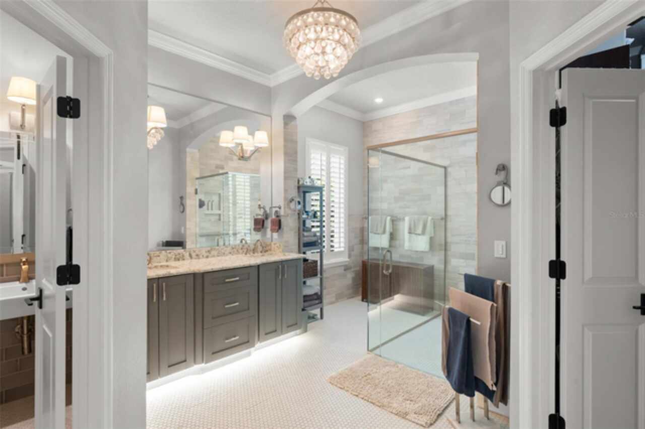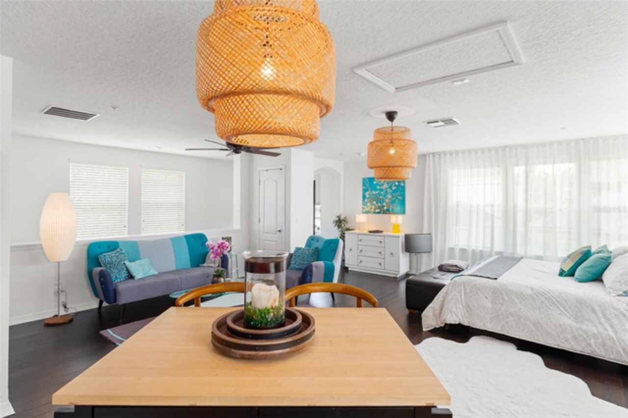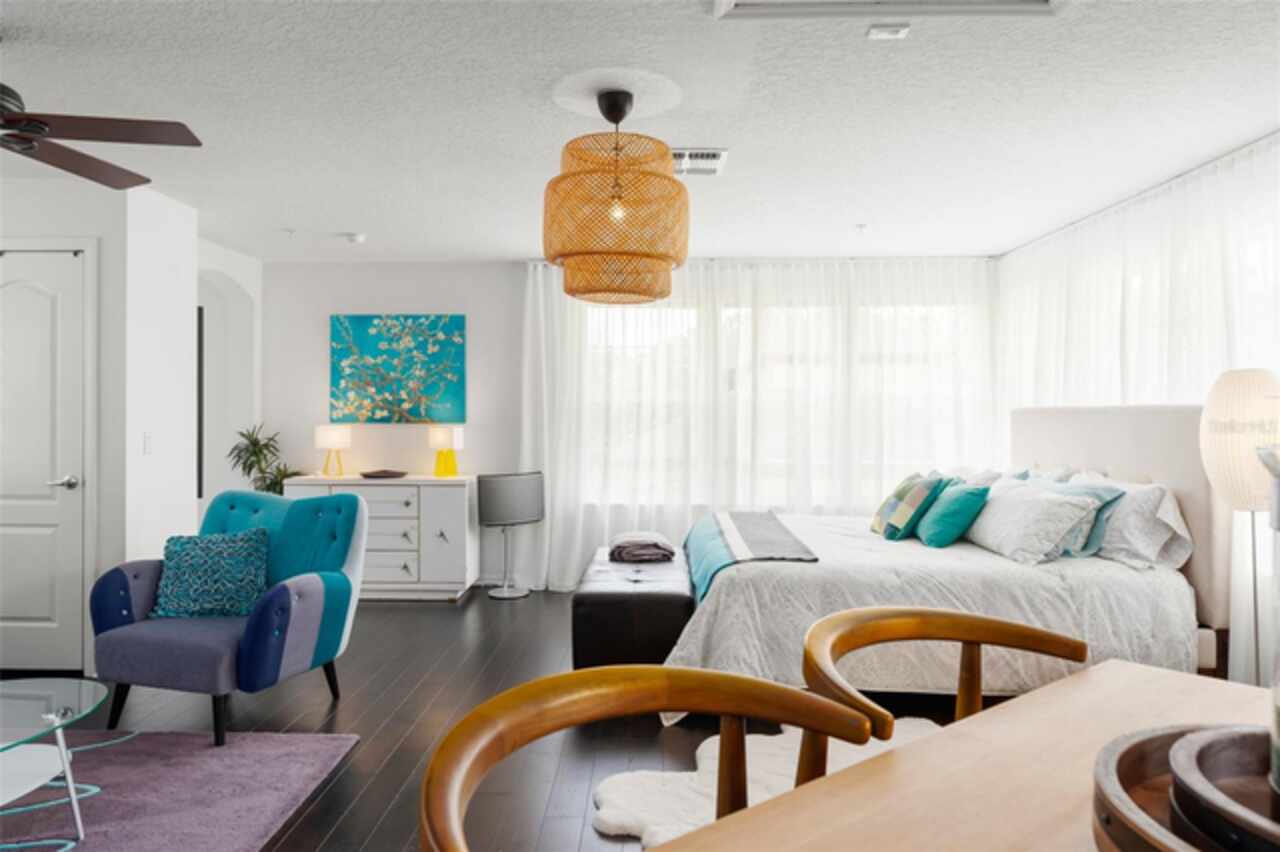 Great value and price per square foot in Baldwin Park! Motivated Seller! This charming and chic updated four bedroom, three and a half bathroom home plus office is located in the highly sought-after first section of Baldwin Park. Significant improvements by custom builder Goehring and Morgan include a gorgeous year-round sunroom flooded with natural light and peaceful views, complete with wet bar. This dramatic expansion has increased the living area to over 3800 sq ft. The kitchen and heart of the home has been upgraded to feature gas range and is adorned with quartz countertops, hand-made tile backsplash and a contrasting island topped with Carrara marble. The open concept floor plan connects the main family room seamlessly to offer inviting gathering spaces and features a gas fireplace framed by a shiplap wall and new hearth, giving it a fresh modern, yet cozy feel. Finishes include crown molding, wood floors, plantation shutters, and new solid wood interior doors and hardware as well as lighted custom cabinetry and built-in bookshelves in the study and master bedroom. The spa-like master bathroom features an enlarged shower, new tile, new lighting, and added cabinetry. The main house is all one-story, and the guest wing of the house offers a private sitting area/den connecting the 2 secondary bedrooms. All closets have been finished with custom organzing systems. The attached garage apartment is a spacious guest retreat with remodeled bathroom, new wood floors, quartz countertops, and custom window treatments. The backyard has been transformed into a tranquil Japanese style rock garden with mature landscaping, lighting, and direct propane connection. Major system upgrades consist of HVAC, tankless water heater, secondary electrical panel, air-conditioned garage with an abundance of storage and car lift, new roof (2025), renovated bathrooms, kitchen, landscaping refresh, double pane windows, and custom window treatments. The premier location in the community offers an easy walk to village center restaurants, shops, parks, and pools, and also ideally situated with easy access to Winter Park, Downtown Orlando and Audubon Park.This is a one of a kind Baldwin Park home in immaculate, move-in ready condition. See photos for floor plan. Make your appointment to view today!