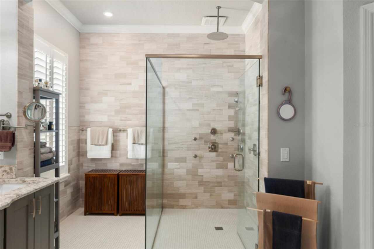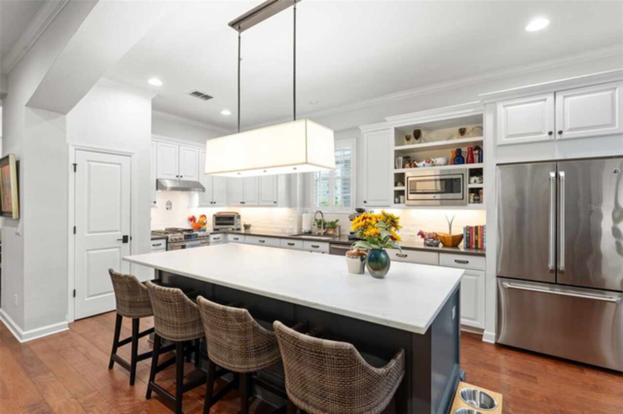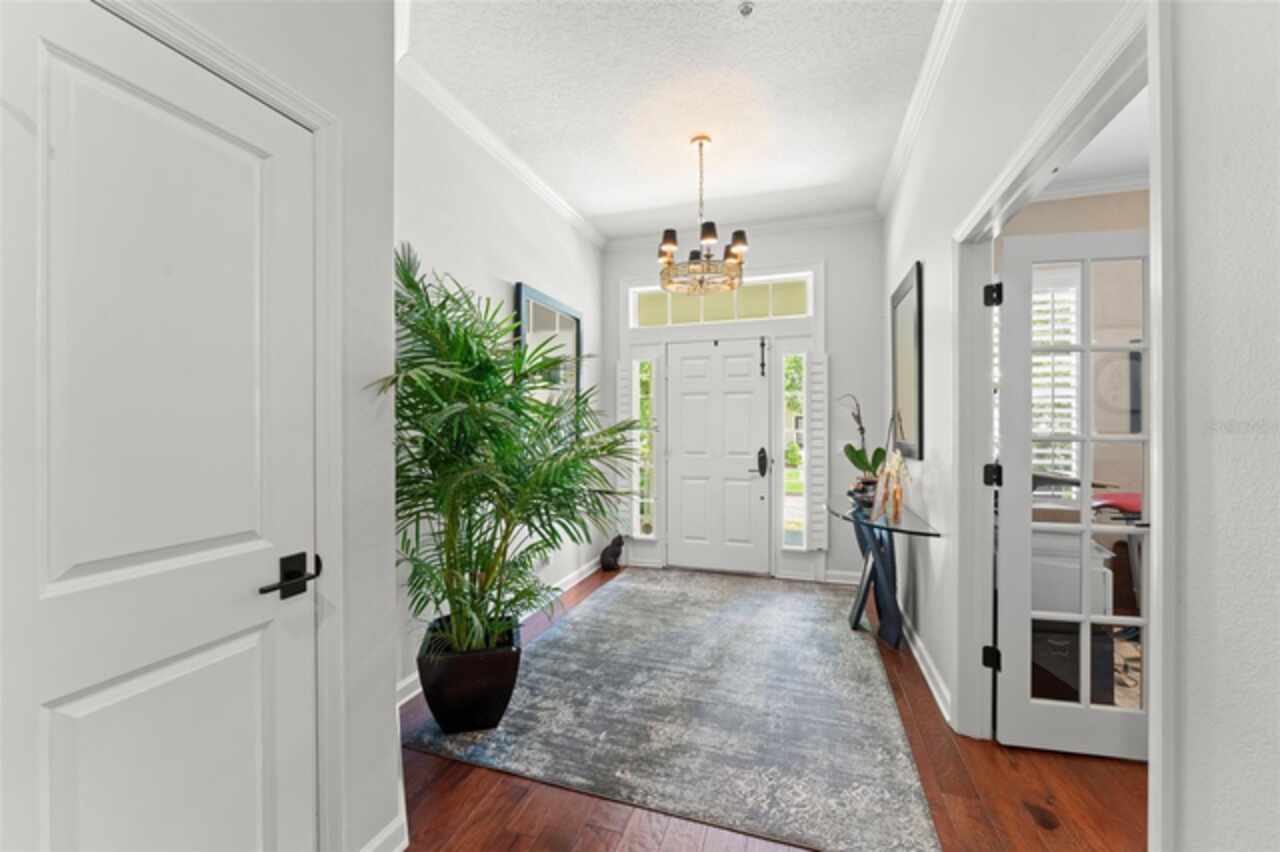 Great value and price per square foot in Baldwin Park! Motivated Seller! This charming and chic updated four bedroom, three and a half bathroom home plus office is located in the highly sought-after first section of Baldwin Park. Significant improvements by custom builder Goehring and Morgan include a gorgeous year-round sunroom flooded with natural light and peaceful views, complete with wet bar. This dramatic expansion has increased the living area to over 3800 sq ft. The kitchen and heart of the home has been upgraded to feature gas range and is adorned with quartz countertops, hand-made tile backsplash and a contrasting island topped with Carrara marble. The open concept floor plan connects the main family room seamlessly to offer inviting gathering spaces and features a gas fireplace framed by a shiplap wall and new hearth, giving it a fresh modern, yet cozy feel. Finishes include crown molding, wood floors, plantation shutters, and new solid wood interior doors and hardware as well as lighted custom cabinetry and built-in bookshelves in the study and master bedroom. The spa-like master bathroom features an enlarged shower, new tile, new lighting, and added cabinetry. The main house is all one-story, and the guest wing of the house offers a private sitting area/den connecting the 2 secondary bedrooms. All closets have been finished with custom organzing systems. The attached garage apartment is a spacious guest retreat with remodeled bathroom, new wood floors, quartz countertops, and custom window treatments. The backyard has been transformed into a tranquil Japanese style rock garden with mature landscaping, lighting, and direct propane connection. Major system upgrades consist of HVAC, tankless water heater, secondary electrical panel, air-conditioned garage with an abundance of storage and car lift, new roof (2025), renovated bathrooms, kitchen, landscaping refresh, double pane windows, and custom window treatments. The premier location in the community offers an easy walk to village center restaurants, shops, parks, and pools, and also ideally situated with easy access to Winter Park, Downtown Orlando and Audubon Park.This is a one of a kind Baldwin Park home in immaculate, move-in ready condition. See photos for floor plan. Make your appointment to view today!