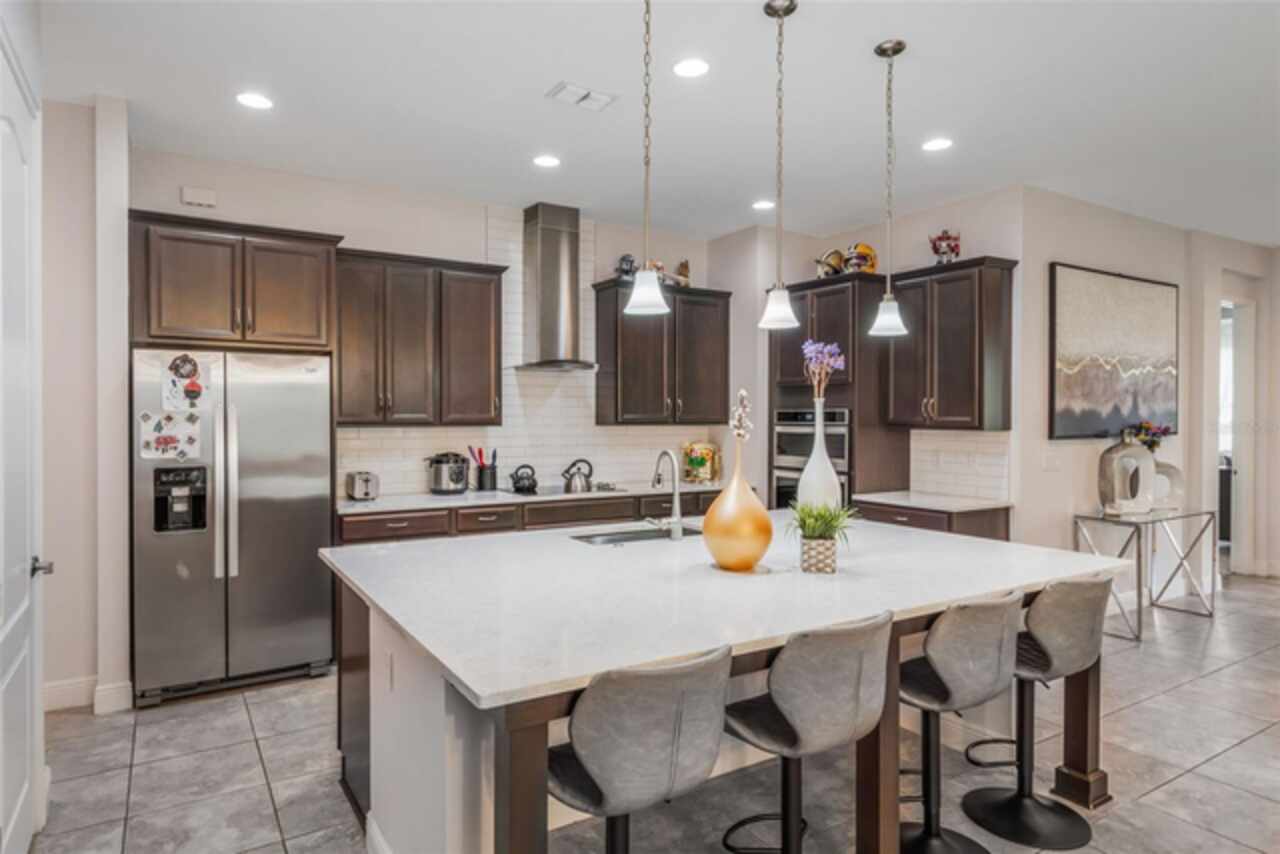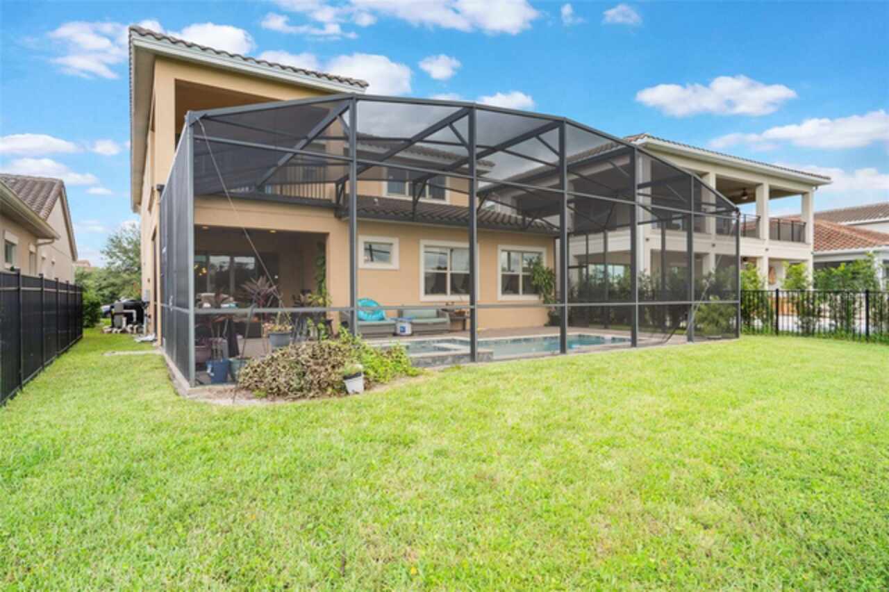 Stunning 5-Bedroom Estate on Eagle Creek Golf Course-Lake Nona Living at it's Finest Welcome to this exceptional 5-bedroom, 5 bath residence with over 4000 square feet of luxury living, perfectly situated on the 15th hole of the highly desired Eagle Creek Golf Course. Located in one of Lake Nona's premier gated communities, this home offers the ultimate combination of elegance, comfort, and resort style living. Step inside to soaring ceilings, expansive living and dining spaces , and an abundance of natural light. The open-concept layout is designed for both everyday living and entertaining, with a chef's kitchen featuring high-end appliances, custom cabinetry and a large center island. The appliances are STAINLESS STEEL with a TOWER MICROWAVE & OVEN COMBO, cooktop, hood, QUARTZ COUNTERTOPS, SUBWAY TILE BACKSPLASH, 42" CABINETS and a huge ISLAND with seating . The primary suite is a true retreat, compete with dual vanities, spacious glass enclosed shower, and an oversized walk in closet. The upstairs has a huge loft for entertaining or providing a separate retreat for family or guests. The View of the golf course from the upstairs covered patio is breathtaking. You will find an additional Master bedroom with a walk in closet and upgraded walk in shower with plenty of room. Additional 3 bedrooms, one with and en-suite bathroom are located on the second floor. There is a large storage/office space as well. Exit the sliding glass doors from the downstairs great room to your covered patio area that is truly relaxing. You will be enclosed with an expansive screen while enjoying the view of the golf course, or just enjoying the relaxing pool and spa that are a great addition for any home. The community has a spacious clubhouse and restaurant, pro shop for the golfers. a golf academy, and a pool and recreation center including a gym Eagle Creek is conveniently located in Lake Nona and just minutes from top rated schools, Medical City, HWY 417 & 528. , Lake Nona Town Center, USTA National Campus, Valencia College, Boxi Park, Orlando International Airport, Moss Park, shopping, dining, and entertainment. Please schedule all showings online thru ShowingTime.