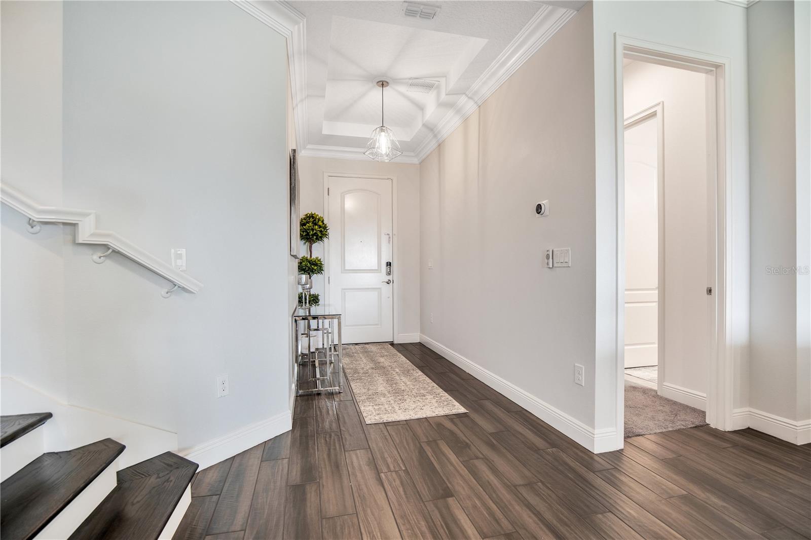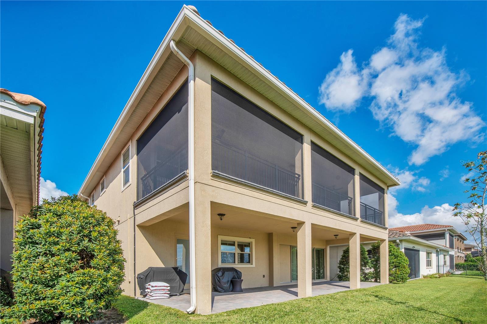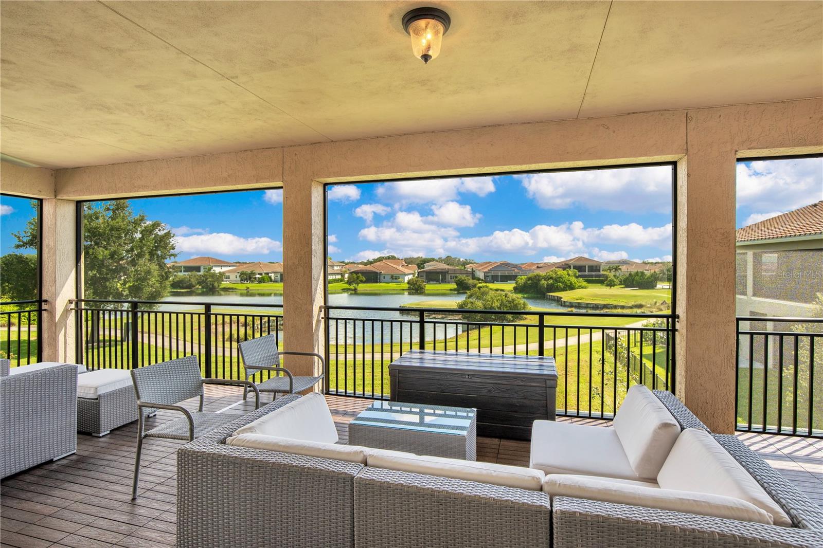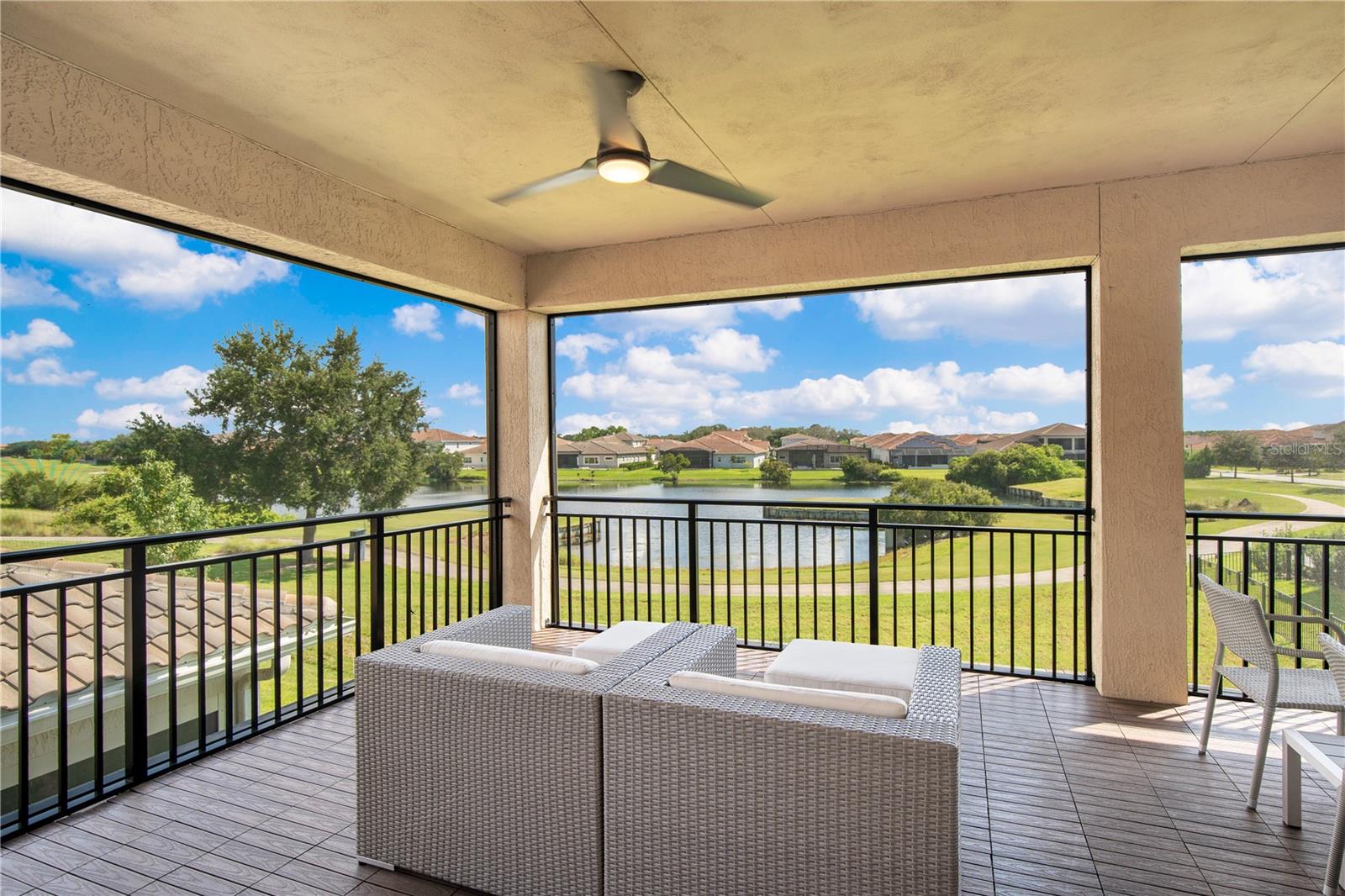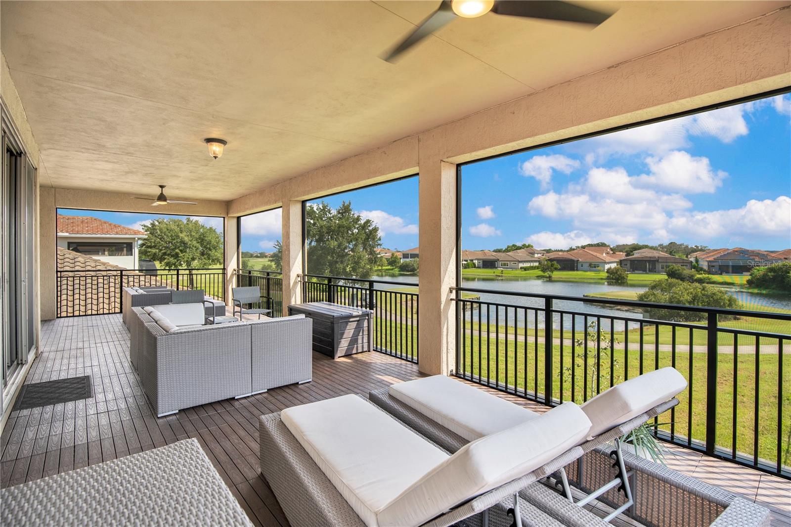 Welcome to 13249 Woodford Street, where luxury living meets thoughtful design. This stunning 4-bedroom, 4-bathroom residence offers elegant finishes, expansive living spaces, and serene pond views in one of Orlando’s most sought-after communities. From the moment you step into the foyer, this home makes an impression. The wood-look tile flooring is both beautiful and practical—durable, water-resistant, and virtually maintenance-free. At the heart of the home, an open family room, kitchen, and dining area set the stage for effortless living and entertaining. The chef’s dream kitchen is as functional as it is stylish, featuring top-of-the-line KitchenAid appliances, quartz countertops, an oversized island with seating, 48-inch cabinetry, tile backsplash, and abundant storage with a large walk-in pantry! The island provides space for baking or entertaining, while still offering casual seating for quick meals. Just off the kitchen, a full bath has been thoughtfully designed with future pool living in mind. The separate dining area, flowing between the kitchen and family room, accommodates a large table with ease, making holidays and dinner parties a joy. From here, sliding glass doors lead to a covered lanai that spans the entire width of the home. Facing east, this incredible outdoor living space captures peaceful sunrises and stays shaded through the afternoon and evening, allowing you to relax or entertain comfortably year-round. The family room shines with a custom tiled entertainment wall, complete with an electric fireplace and a designated space for your wall-mounted TV. A separate dry bar area adds both storage and function with counter space, cabinetry, and a beverage refrigerator—perfect for gatherings. A downstairs bedroom with ensuite full bath is ideal for guests or a private home office. Head upstairs to a spacious loft with two sets of sliding glass doors for exceptional views. These doors open up onto the full-length screened balcony with Polywood flooring. Overlooking the tranquil pond, this space provides an incredible extension of your living area—perfect for morning coffee at sunrise or shaded afternoons and evenings spent outdoors, maybe even catching a rocket launch from Cape Canaveral. The primary suite is an oversized retreat with slider doors opening to the balcony water view. Its spa-inspired bath offers dual sinks, a custom walk-in shower with rain head, and a separate water closet. An bonus feature in the bathroom is a vanity island, blending luxury and practicality, with added storage and counter space! Dual walk-in closets between the bedroom and bathroom are convenient and provide more privacy and ease of dressing. Two additional upstairs bedrooms and a full bath complete the perfect family layout. The secondary bathroom upstairs has dual sinks and a shower/tub combination. All showers in the home feature tiled walls all the way from the floor to the ceiling. The laundry room is upstairs with a sink and cabinet/countertop space making folding clothing easy. Additional highlights include high ceilings with 8-foot doors throughout, a 3-car garage (one tandem, ideal for storage, golf cart storage, or a home gym), a convenient drop zone at the garage entry with low cabinets and regular height cabinets, and a water filtration system serving the entire home! Check out the Matterport 3-D link to see this home NOW! It offers it all—style, function, and a setting you’ll fall in love with.