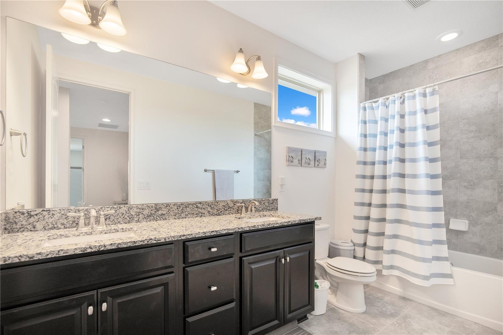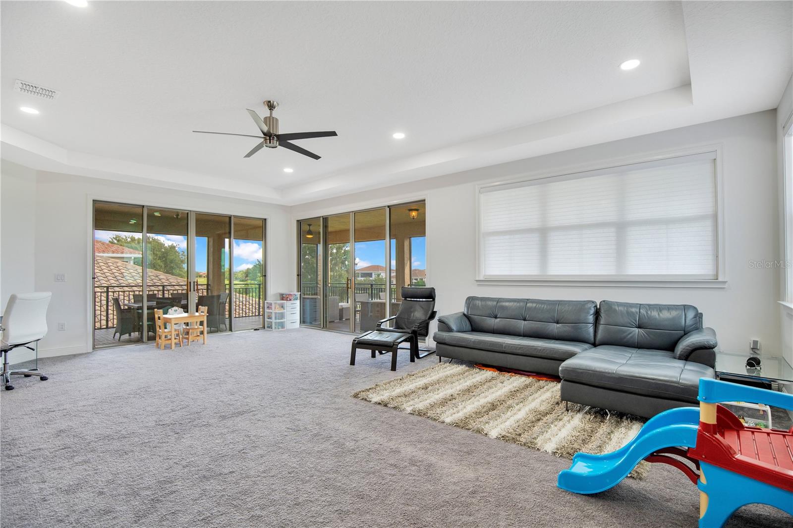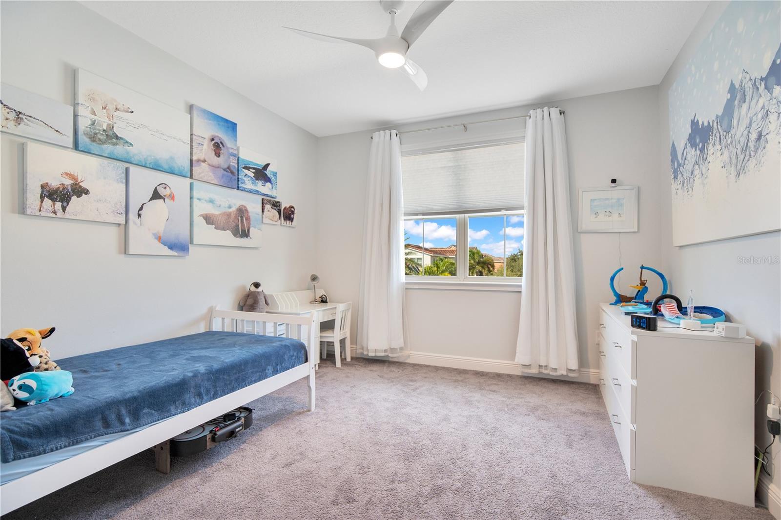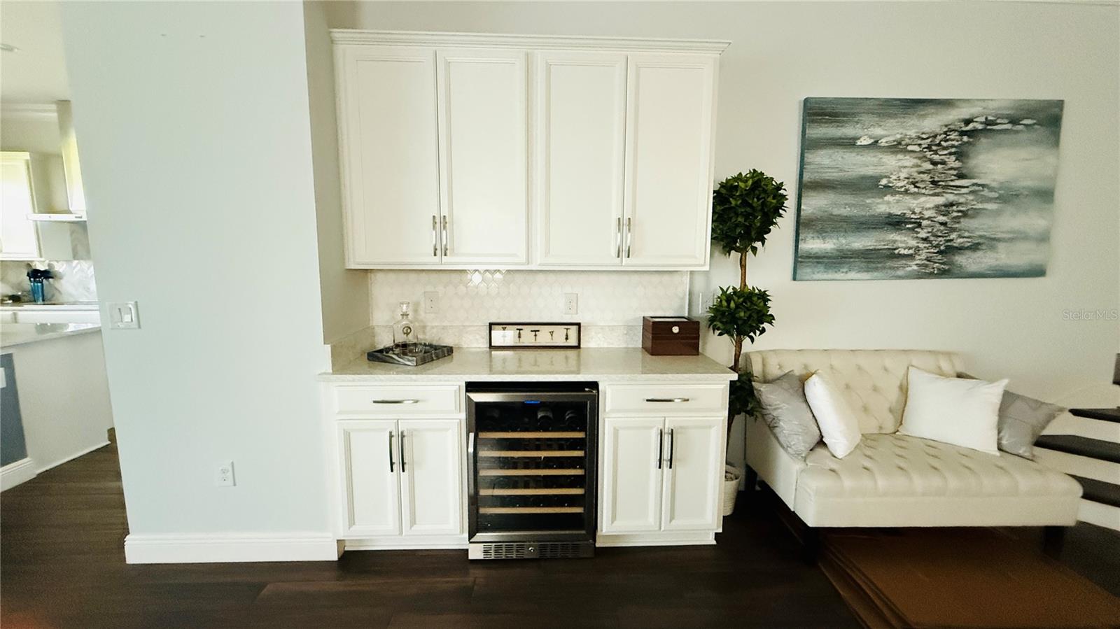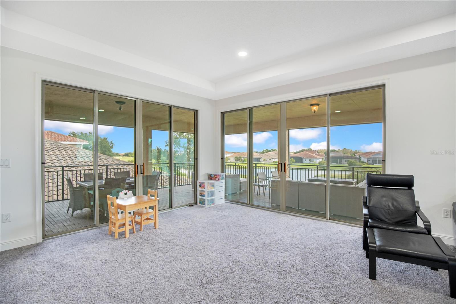 Welcome to 13249 Woodford Street, where luxury living meets thoughtful design. This stunning 4-bedroom, 4-bathroom residence offers elegant finishes, expansive living spaces, and serene pond views in one of Orlando’s most sought-after communities. From the moment you step into the foyer, this home makes an impression. The wood-look tile flooring is both beautiful and practical—durable, water-resistant, and virtually maintenance-free. At the heart of the home, an open family room, kitchen, and dining area set the stage for effortless living and entertaining. The chef’s dream kitchen is as functional as it is stylish, featuring top-of-the-line KitchenAid appliances, quartz countertops, an oversized island with seating, 48-inch cabinetry, tile backsplash, and abundant storage with a large walk-in pantry! The island provides space for baking or entertaining, while still offering casual seating for quick meals. Just off the kitchen, a full bath has been thoughtfully designed with future pool living in mind. The separate dining area, flowing between the kitchen and family room, accommodates a large table with ease, making holidays and dinner parties a joy. From here, sliding glass doors lead to a covered lanai that spans the entire width of the home. Facing east, this incredible outdoor living space captures peaceful sunrises and stays shaded through the afternoon and evening, allowing you to relax or entertain comfortably year-round. The family room shines with a custom tiled entertainment wall, complete with an electric fireplace and a designated space for your wall-mounted TV. A separate dry bar area adds both storage and function with counter space, cabinetry, and a beverage refrigerator—perfect for gatherings. A downstairs bedroom with ensuite full bath is ideal for guests or a private home office. Head upstairs to a spacious loft with two sets of sliding glass doors for exceptional views. These doors open up onto the full-length screened balcony with Polywood flooring. Overlooking the tranquil pond, this space provides an incredible extension of your living area—perfect for morning coffee at sunrise or shaded afternoons and evenings spent outdoors, maybe even catching a rocket launch from Cape Canaveral. The primary suite is an oversized retreat with slider doors opening to the balcony water view. Its spa-inspired bath offers dual sinks, a custom walk-in shower with rain head, and a separate water closet. An bonus feature in the bathroom is a vanity island, blending luxury and practicality, with added storage and counter space! Dual walk-in closets between the bedroom and bathroom are convenient and provide more privacy and ease of dressing. Two additional upstairs bedrooms and a full bath complete the perfect family layout. The secondary bathroom upstairs has dual sinks and a shower/tub combination. All showers in the home feature tiled walls all the way from the floor to the ceiling. The laundry room is upstairs with a sink and cabinet/countertop space making folding clothing easy. Additional highlights include high ceilings with 8-foot doors throughout, a 3-car garage (one tandem, ideal for storage, golf cart storage, or a home gym), a convenient drop zone at the garage entry with low cabinets and regular height cabinets, and a water filtration system serving the entire home! Check out the Matterport 3-D link to see this home NOW! It offers it all—style, function, and a setting you’ll fall in love with.