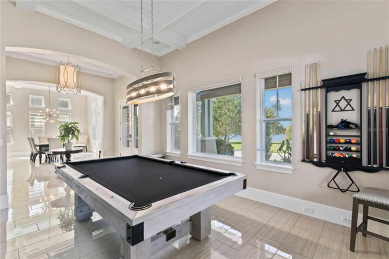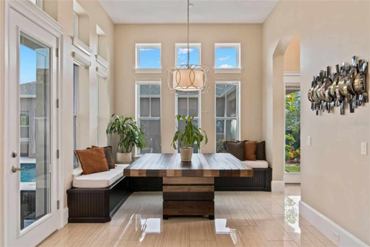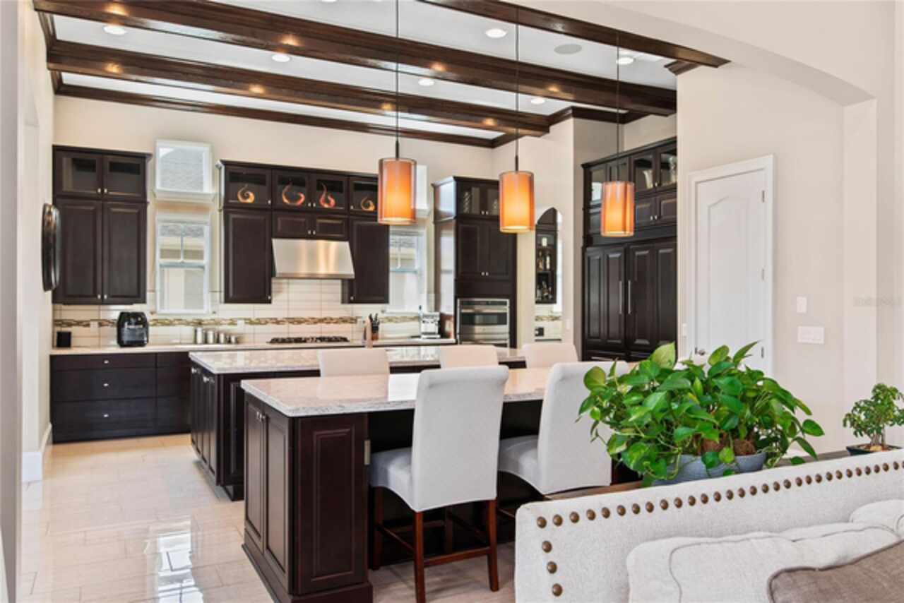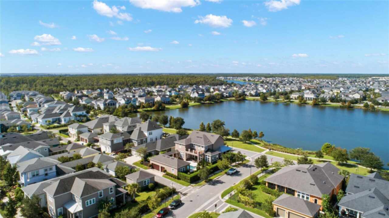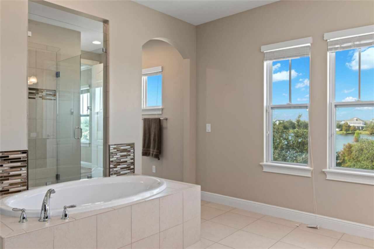 This luxurious estate home in Laureate Park/Lake Nona sits on an oversized corner lot (77 Ft Front) on Square Lake. Enjoy the fantastic views and gorgeous sunsets every day from your own extended covered front porch. Totaling 4, 650 square feet with 5 bedrooms and 4.5 baths, this impressive home features so many high-end upgrades that you feel as though you are living in a model home. From the beautiful porcelain tile on the first floor to the extraordinary wood beams in Formal Living, Great Room, Dining Room and Sunroom, you will see the dedication and love put into this home. The gourmet kitchen features two custom islands, double stack kitchen cabinets, gas appliances, double build-in fridge, butler’s pantry with wine cooler, and a large walk-in pantry. Next to the kitchen is a built-in breakfast nook and built-in mudroom. Many areas of the home have been pre-wired for speakers and a Vivint home security system. The second floor has hardwood floors throughout with the laundry room, 4 bedrooms, and 3 bathrooms upstairs. The spacious primary bedroom features a gorgeous master bathroom and two built out master closets. This home provides multiple options to entertain family and friends - enjoy the views from your large upper terrace or relax in your backyard oasis with covered summer kitchen and a beautiful salt water pool and hot tub along with a pool house/Mother-in-law Suite with full bath. You also have a covered breezeway to a spacious detached 3-car garage. Enjoy the 44 miles of biking, jogging, and walking trails inside the community and all the amenities Laureate Park - aquatic center, fitness center, community garden, tons of parks and green spaces, Fiber Optics 1 GBPS internet and more.