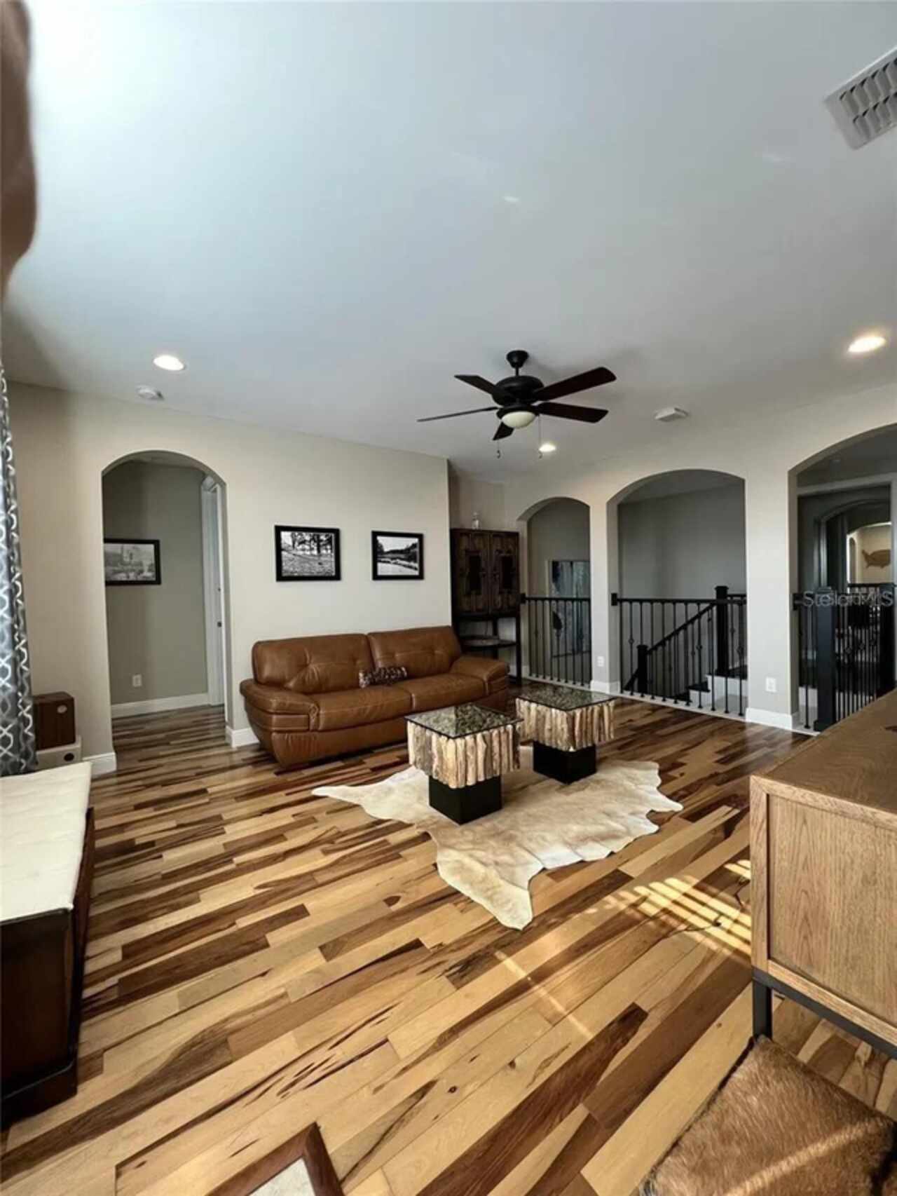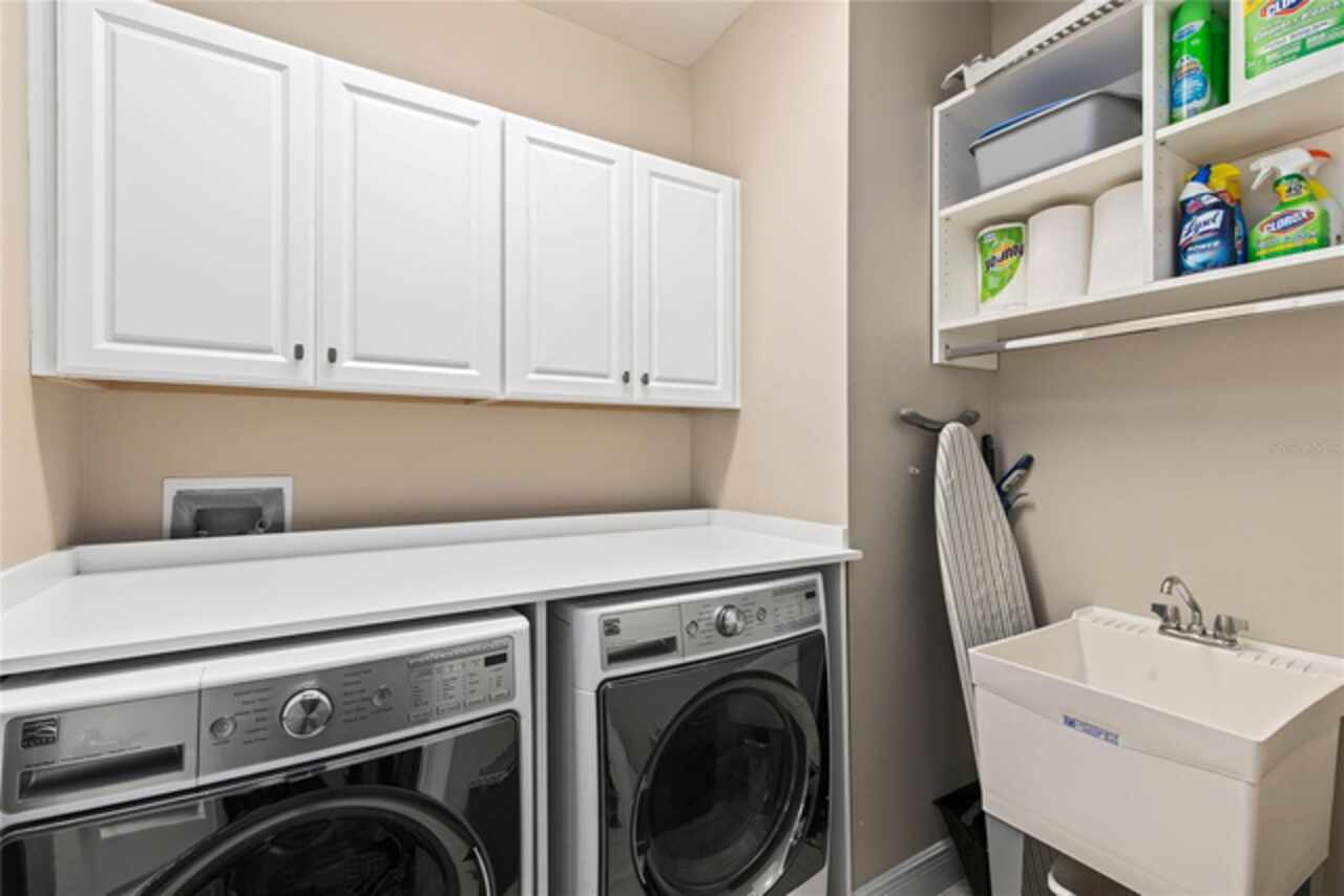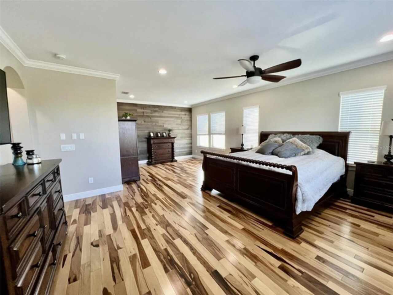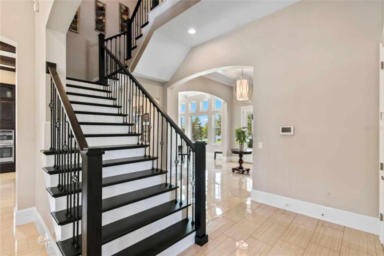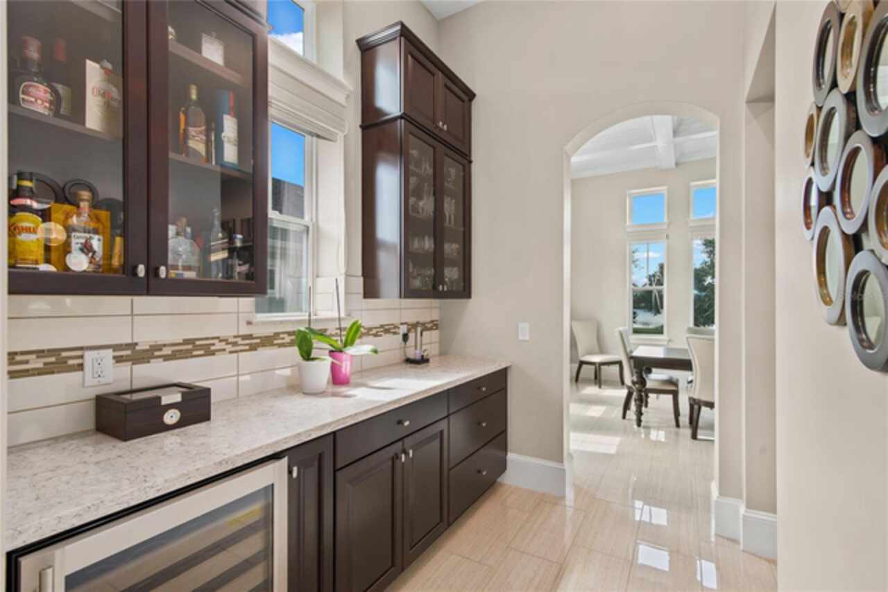 This luxurious estate home in Laureate Park/Lake Nona sits on an oversized corner lot (77 Ft Front) on Square Lake. Enjoy the fantastic views and gorgeous sunsets every day from your own extended covered front porch. Totaling 4, 650 square feet with 5 bedrooms and 4.5 baths, this impressive home features so many high-end upgrades that you feel as though you are living in a model home. From the beautiful porcelain tile on the first floor to the extraordinary wood beams in Formal Living, Great Room, Dining Room and Sunroom, you will see the dedication and love put into this home. The gourmet kitchen features two custom islands, double stack kitchen cabinets, gas appliances, double build-in fridge, butler’s pantry with wine cooler, and a large walk-in pantry. Next to the kitchen is a built-in breakfast nook and built-in mudroom. Many areas of the home have been pre-wired for speakers and a Vivint home security system. The second floor has hardwood floors throughout with the laundry room, 4 bedrooms, and 3 bathrooms upstairs. The spacious primary bedroom features a gorgeous master bathroom and two built out master closets. This home provides multiple options to entertain family and friends - enjoy the views from your large upper terrace or relax in your backyard oasis with covered summer kitchen and a beautiful salt water pool and hot tub along with a pool house/Mother-in-law Suite with full bath. You also have a covered breezeway to a spacious detached 3-car garage. Enjoy the 44 miles of biking, jogging, and walking trails inside the community and all the amenities Laureate Park - aquatic center, fitness center, community garden, tons of parks and green spaces, Fiber Optics 1 GBPS internet and more.