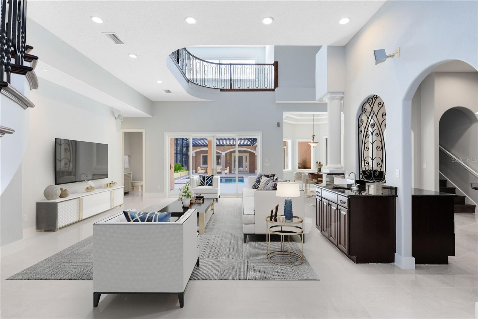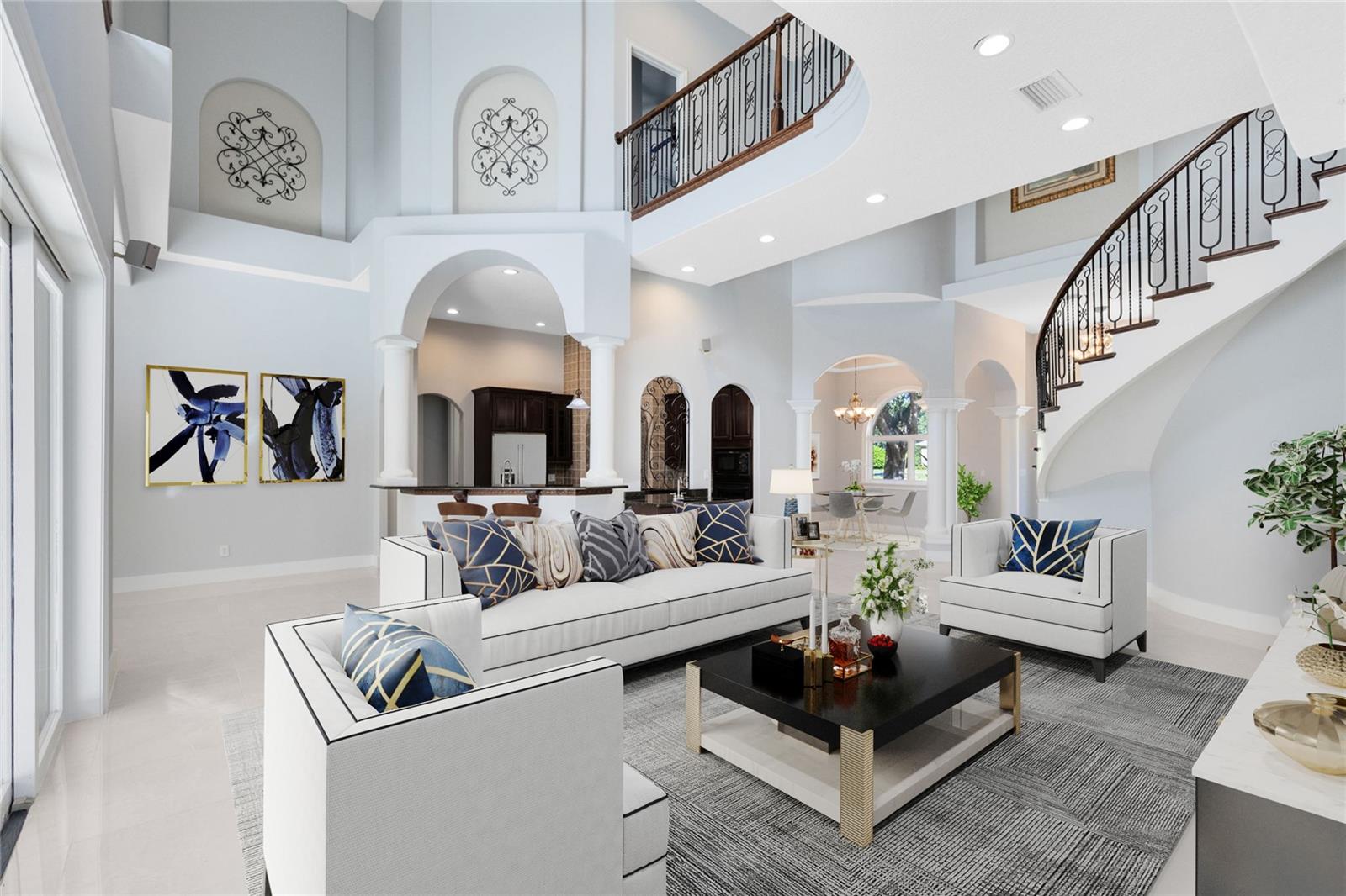 One or more photo(s) has been virtually staged. Welcome to 13950 Smokerise Court, a CUSTOM-BUILT MULTIGENERATIONAL estate in the highly sought-after Live Oak Estates community—nestled within the greater Lake Nona area and Lake Mary Jane pocket of southeast Orlando. Crafted by its ORIGINAL OWNER, a custom home builder, this residence showcases superior craftsmanship, luxury finishes, timeless design, and ultimate functionality across more than 6, 000 living sq ft on 1.3 ACRES! With 7 bedrooms and 6.5 baths, this home lives like two houses in one, offering ideal flexibility for extended family or guests. Soaring ceilings and open living areas invite natural light and effortless flow throughout. The main residence features a FIRST-FLOOR PRIMARY SUITE with dual walk-in closets and a custom ensuite bathroom that has a superior custom and private walk-in shower. If you go up the stairs as you enter the home, you’ll find three bedrooms upstairs with one full bath and one half bath for the ultimate privacy and convenience. The loft upstairs can be turned into a bar or game room or anything your interior designer heart desires. If you go up the smaller set of stairs on the right side of the home, you’ll enjoy the intimate theater room perfect for cozy nights in. As you walk through the enclosed walkway and laundry room at the rear of the main house, you walk into the private living area at the back of the property that is a massive 1700 sqft IN-LAW SUITE complete with a FULL KITCHEN, living room, 2 BEDROOMS, and 2 bathrooms. Complete privacy and togetherness perfect for multigenerational living! Step outside to a large screened-in pool in between the two living spaces along with a beautifully paved courtyard with fire pit, creating a private retreat for entertaining or quiet relaxation. Enjoy the tranquility of Live Oak Estates with all the amenities of Lake Nona living just a short drive away. Located just minutes from Lake Nona Medical City, Moss Park, and top-rated schools, this estate offers the best of custom craftsmanship and luxury living.