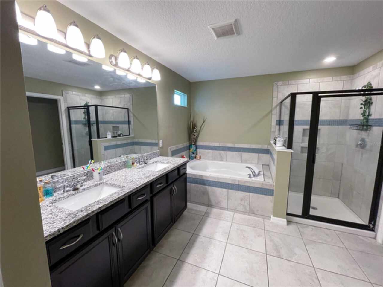 Live the Lake Preserve lifestyle in this energy-smart show-stopper. This beautiful home is an expansive five-bedroom, four-bath retreat offering more than 3, 000 sqft of thoughtfully designed living space. A flexible front room provides a stunning entrance. Beyond that is a chef-inspired kitchen, where 42-inch cabinetry, granite counters, a sprawling center island, and KitchenAid stainless-steel appliances with a built-in wall oven and microwave set the stage for effortless entertaining. A sliding glass door connects the light-filled family room to a peaceful covered patio and pergola within a fully fenced backyard, where a pair of palms and a large bird-of-paradise frame a working garden ready for wholesome vegetables or vibrant flowers; it is the ideal setting for alfresco dinners and weekend barbecues. A private first-floor guest suite ensures visitors feel at home, while upstairs a generous loft anchors three secondary bedrooms, two full bathrooms, and a luxurious primary suite boasting a double-wide vanity, soaking tub, and separate shower. Spray-foam insulation, low-E windows, a high-efficiency HVAC system, and a small array of solar panels keep utility bills in check so you can enjoy the community’s resort-style perks: a lake-front zero-entry pool with splash pad, a private boat ramp for non-motorized water sports on serene Lake Preserve, clubhouse, playgrounds, parks, wide sidewalks, and a walking path that circles the entire lake. Location convenient to Lake Nona’s Medical City, MCO Airport for easy commutes to downtown or the theme parks. This tucked-away location lets you savor tranquil sunset strolls along the water without sacrificing convenience. Ready to elevate your everyday? Schedule a private tour of 14253 Lake Preserve Dr and experience the magic of this Florida property.