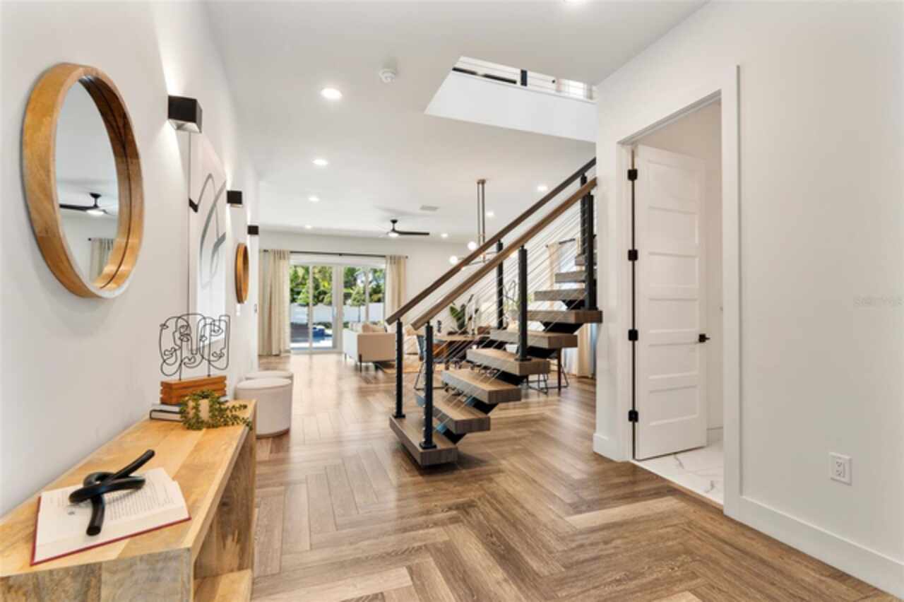 Under contract-accepting backup offers. Stunning four-bedroom home, built in 2022, on a peaceful cul-de-sac in the sought-after College Park neighborhood. This exquisite residence boasts sophisticated finishes and thoughtfully designed spaces, including a spacious gathering room, sleek modern interiors and a chef-inspired kitchen. The open-concept layout seamlessly integrates the great room and dining area, ideal for relaxation and entertaining. With four bedrooms and four full baths, this home offers generous closet space and a versatile floor plan to suit your needs. The luxurious primary suite features dual walk-in closets and a spa-like bath for ultimate comfort. Step outside to enjoy a beautifully landscaped backyard with a gorgeous newly installed pool/spa/firepit and a covered lanai, all ideal for outdoor living. The property is fully equipped with irrigation and perimeter privacy fencing. Smart home features include a pre-installed electric car charging system, a comprehensive security setup with hard-wired cameras for peace of mind, and is "pad ready" for a whole home generator to be installed. In a serene location on a quiet cul-de-sac, this home is just minutes from Guernsey Park, Dartmouth Park, the Country Club of Orlando, and a few short blocks from downtown College Park shops and restaurants.