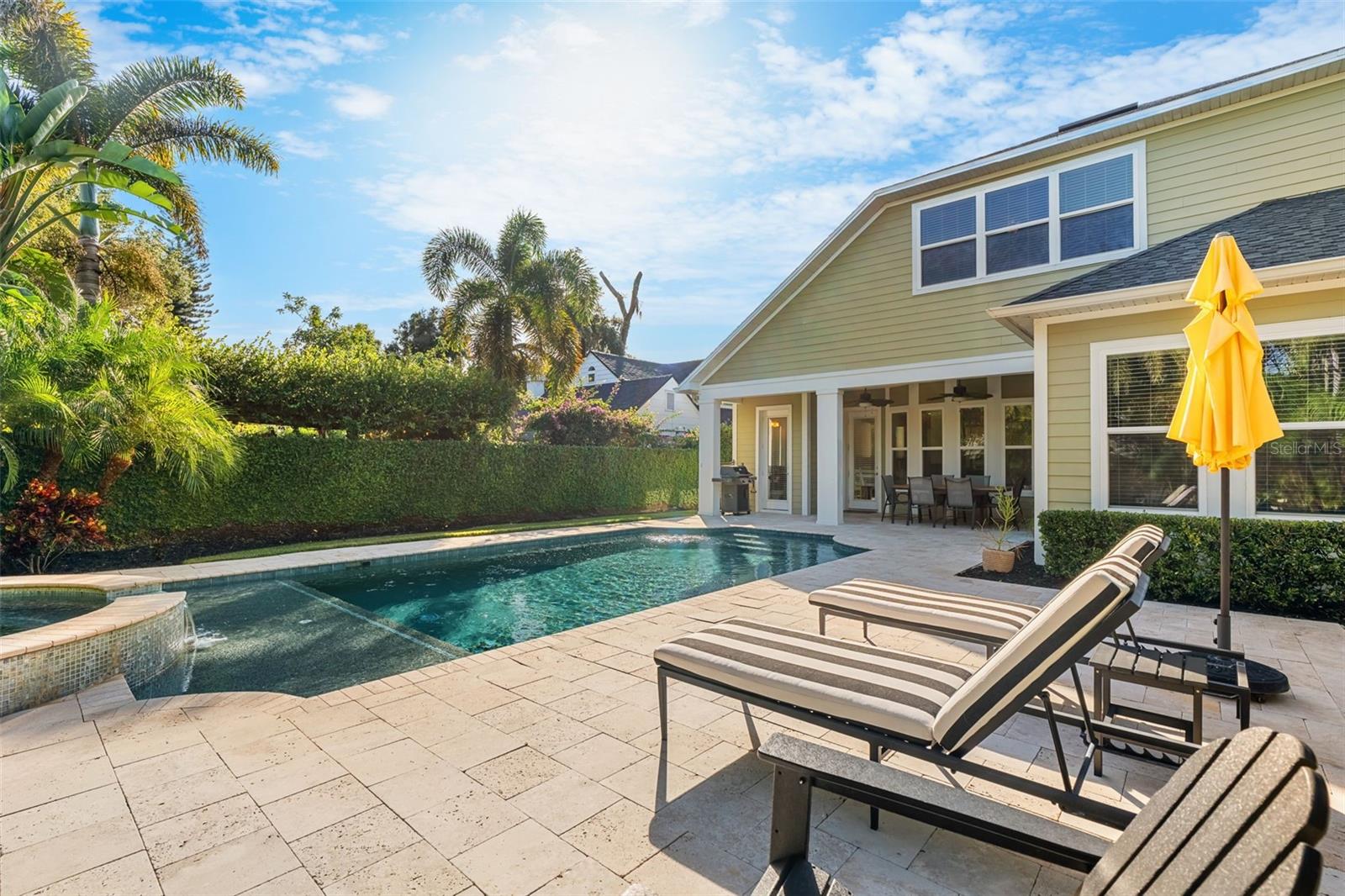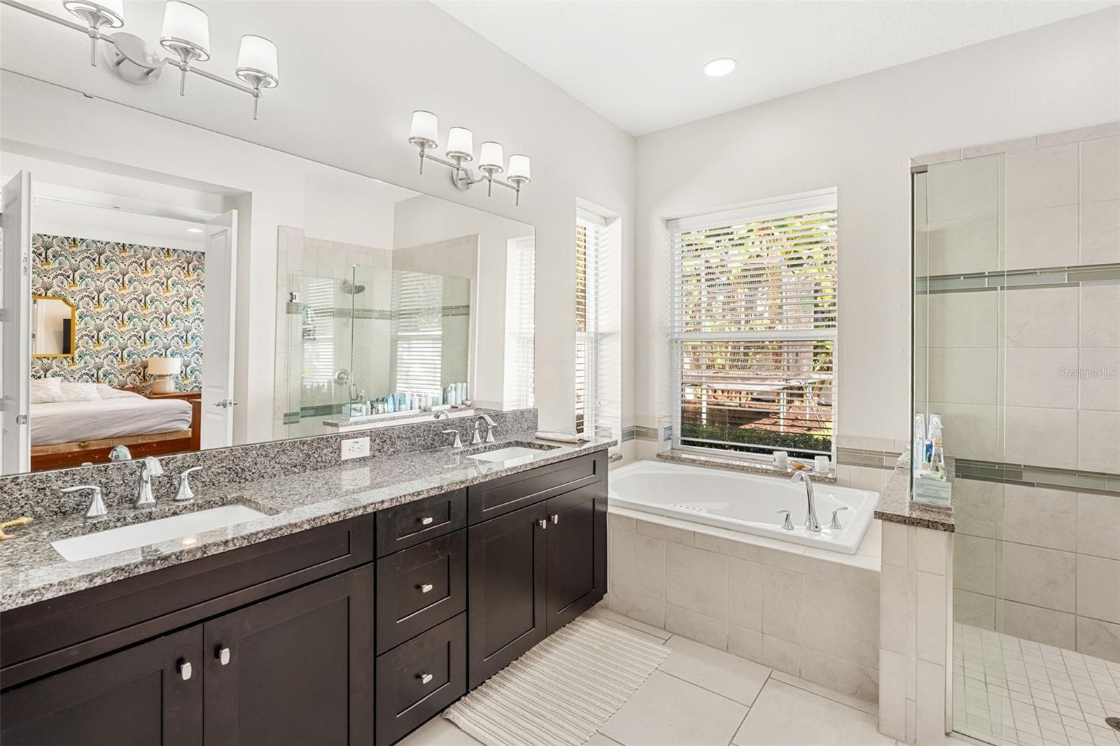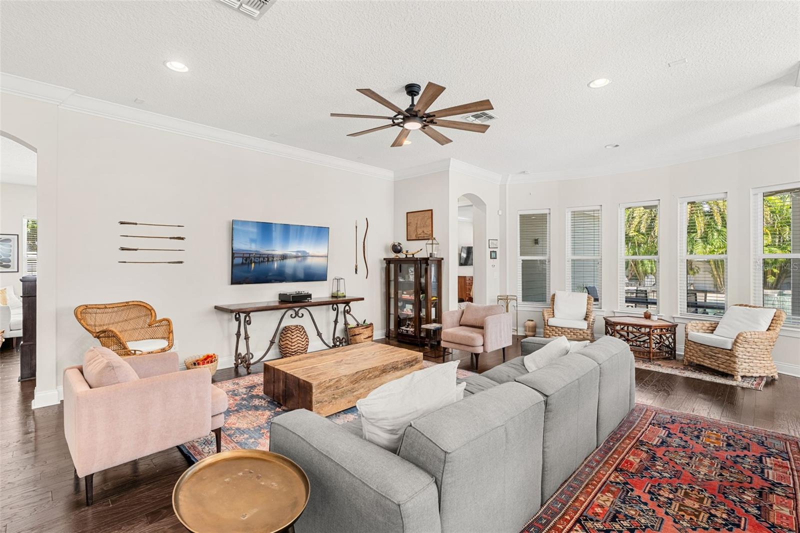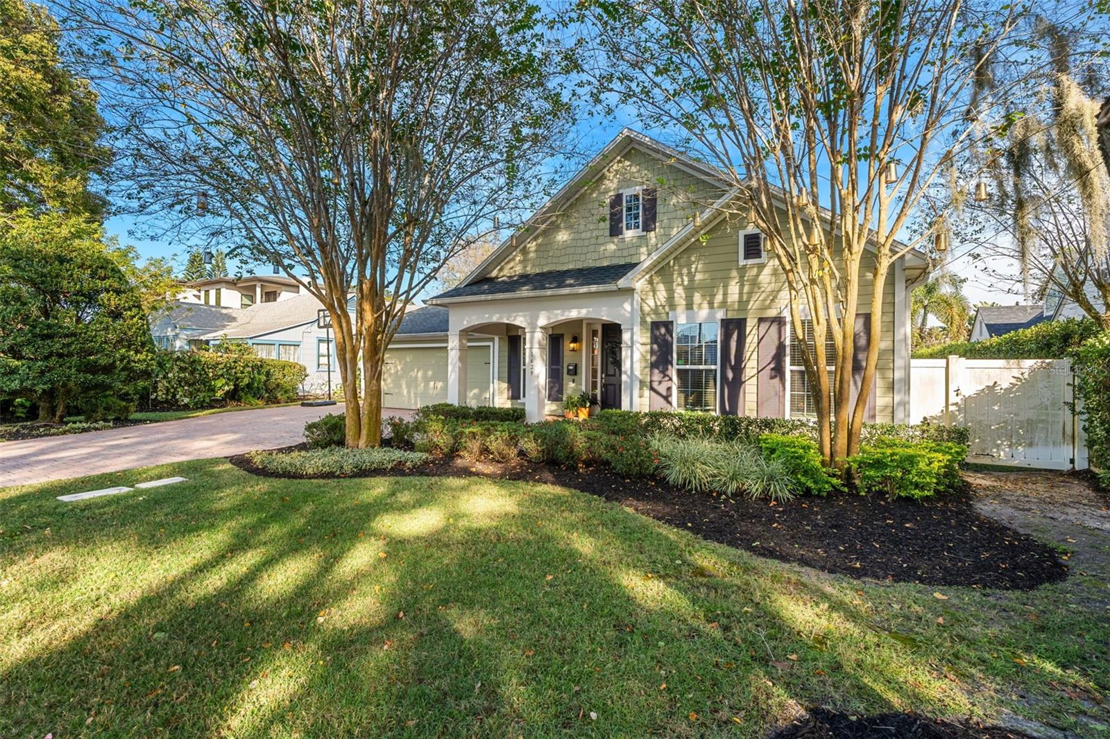 Under contract-accepting backup offers. Welcome to an exceptional residence in the heart of Delaney Park, one of Orlando’s most beloved and timeless neighborhoods, celebrated for its tree-lined streets, historic character, walkable lifestyle, and close proximity to lakes, parks, playgrounds, downtown venues, and the city’s best-rated schools. Set on a beautifully manicured lot with craftsman-inspired architecture, shaker shingles, paneled front columns, and a pavered driveway with extra parking, this David Weekley home blends classic curb appeal with thoughtful modern and energy efficient updates. Inside, a wide foyer sets the tone for the home’s generous scale, offering space for drop zones or accent furniture. Handscraped engineered hardwood floors flow throughout the main living areas, complemented by crown molding, decorative columns, and expansive windows that frame panoramic views of the private backyard and saltwater pool. The nearly 30-foot-wide living room is a true centerpiece that's bright, flexible, and designed for gatherings of any size, all anchored by a designer ceiling fan and surrounded by natural light. The kitchen is equally impressive, featuring a large cooking island with gas cooktop, granite countertops, a French door refrigerator (2025), built-in convection oven and microwave, subway tile backsplash, brushed nickel hardware, breakfast bar seating, and a spacious closet pantry. A charming dining space with a buffet overlooks the backyard, while a dedicated pool and visitor powder room adds convenience. A separate first-floor flex room offers endless versatility as a playroom, library, homeschool space, salon, or home office, while flanked by two guest bedrooms, each with its own full bath and built-in closets. At the opposite wing, the spacious primary suite delivers comfort and style with high ceilings, designer wallpaper, recessed lighting, three large windows overlooking the pool, and an ensuite bath featuring dual vanities, a walk-in shower, garden tub, wall-mounted mirror, modern chrome fixtures, and a generous walk-in closet. Upstairs, a huge bonus room functions as a fifth bedroom, home theatre, gym, game room, or guest suite, complete with its own full bath. The indoor laundry room includes built-in shelving for additional storage. Step outside to your personal retreat. A stunning pavered saltwater pool and spa (2015), with new pump (2025), sits among lush tropical landscaping and a fully fenced yard that ensures privacy. Travertine decking, multiple seating areas, a covered porch with outdoor ceiling fans, and a wide expanse of green lawn make this space ideal for year-round entertaining. Residents of Delaney Park enjoy walkability to its iconic playground, tennis courts, baseball fields, Lake Davis, Lake Cherokee, and a short bike ride to Thornton Park, SODO, Dr. Phillips Center, and Orlando Health. Zoned for highly regarded Blankner K–8 and Boone High School, this is truly a lifestyle home in one of Orlando’s most treasured communities.