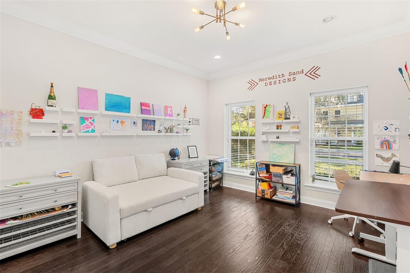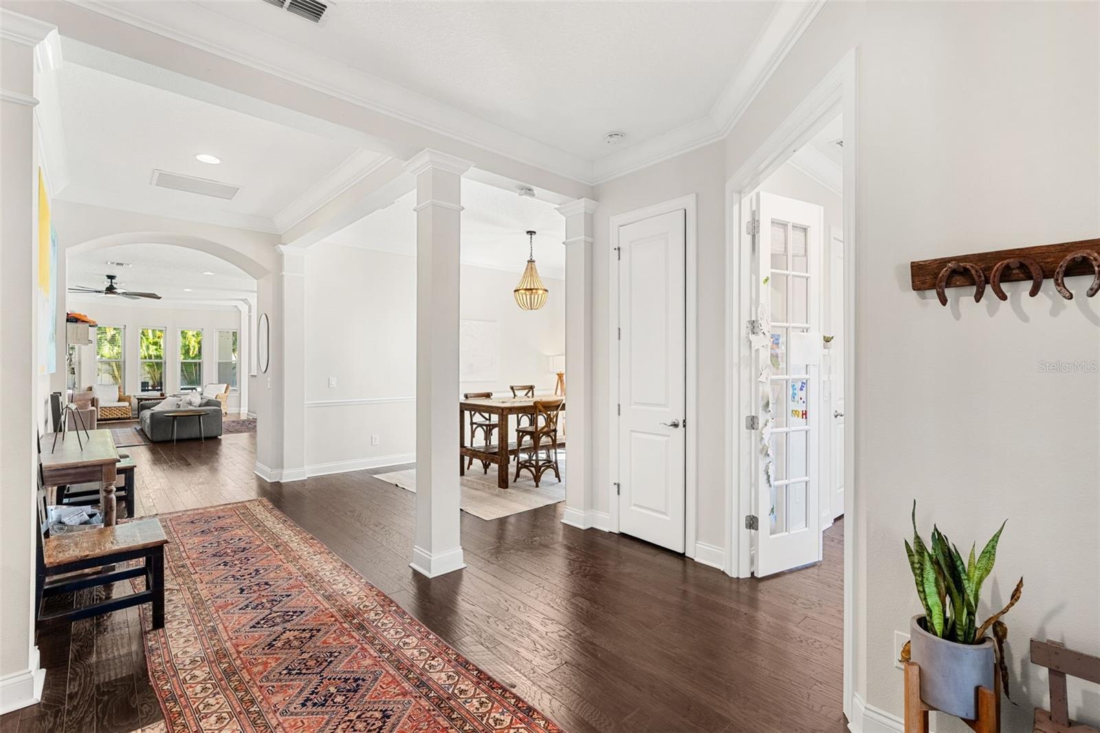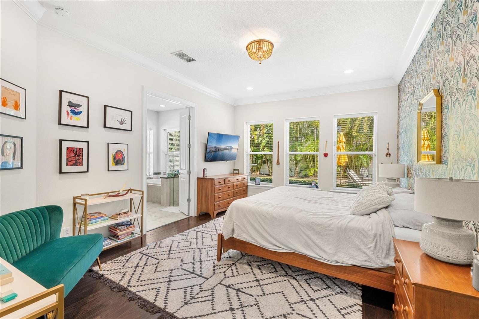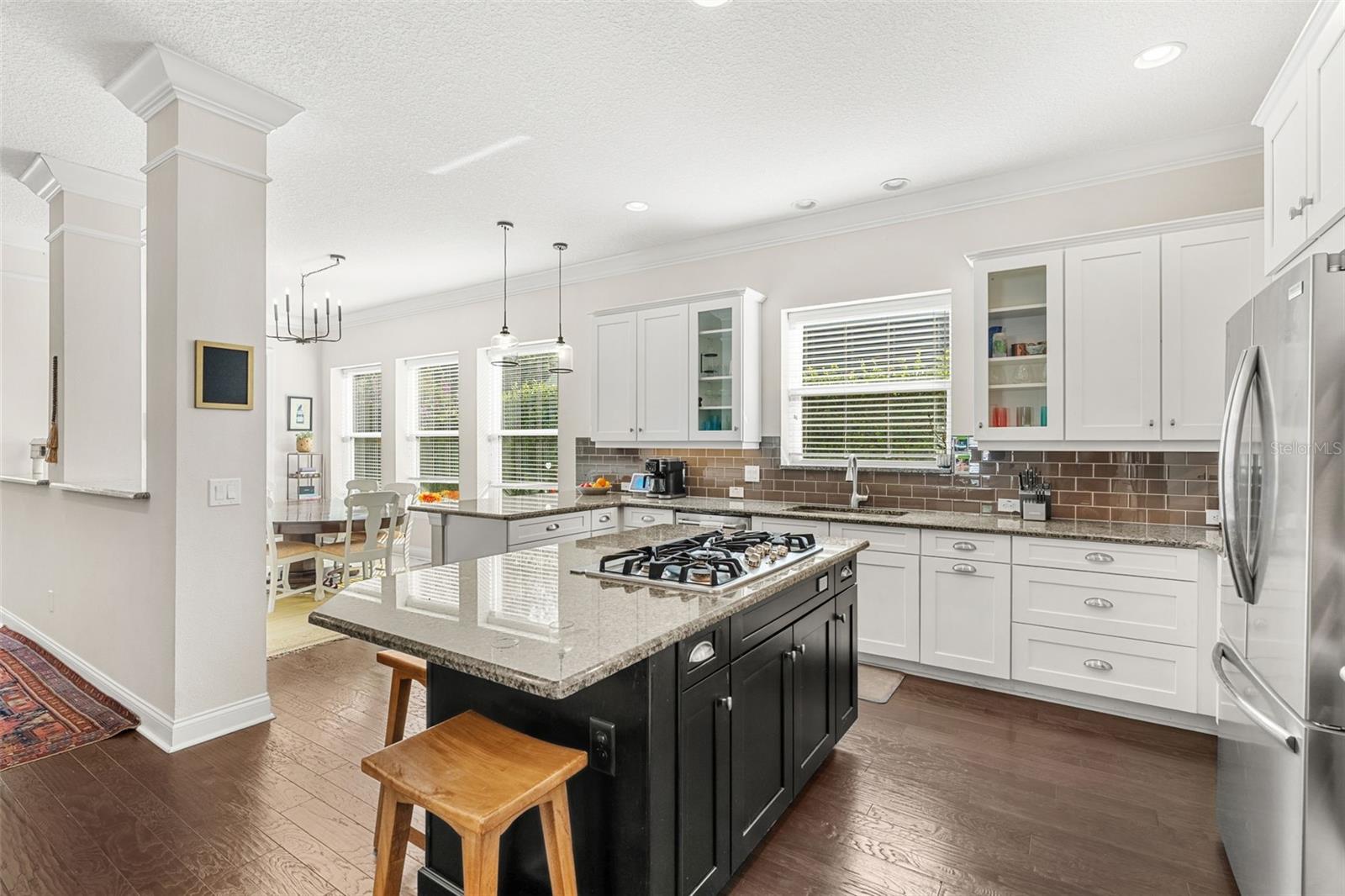 Under contract-accepting backup offers. Welcome to an exceptional residence in the heart of Delaney Park, one of Orlando’s most beloved and timeless neighborhoods, celebrated for its tree-lined streets, historic character, walkable lifestyle, and close proximity to lakes, parks, playgrounds, downtown venues, and the city’s best-rated schools. Set on a beautifully manicured lot with craftsman-inspired architecture, shaker shingles, paneled front columns, and a pavered driveway with extra parking, this David Weekley home blends classic curb appeal with thoughtful modern and energy efficient updates. Inside, a wide foyer sets the tone for the home’s generous scale, offering space for drop zones or accent furniture. Handscraped engineered hardwood floors flow throughout the main living areas, complemented by crown molding, decorative columns, and expansive windows that frame panoramic views of the private backyard and saltwater pool. The nearly 30-foot-wide living room is a true centerpiece that's bright, flexible, and designed for gatherings of any size, all anchored by a designer ceiling fan and surrounded by natural light. The kitchen is equally impressive, featuring a large cooking island with gas cooktop, granite countertops, a French door refrigerator (2025), built-in convection oven and microwave, subway tile backsplash, brushed nickel hardware, breakfast bar seating, and a spacious closet pantry. A charming dining space with a buffet overlooks the backyard, while a dedicated pool and visitor powder room adds convenience. A separate first-floor flex room offers endless versatility as a playroom, library, homeschool space, salon, or home office, while flanked by two guest bedrooms, each with its own full bath and built-in closets. At the opposite wing, the spacious primary suite delivers comfort and style with high ceilings, designer wallpaper, recessed lighting, three large windows overlooking the pool, and an ensuite bath featuring dual vanities, a walk-in shower, garden tub, wall-mounted mirror, modern chrome fixtures, and a generous walk-in closet. Upstairs, a huge bonus room functions as a fifth bedroom, home theatre, gym, game room, or guest suite, complete with its own full bath. The indoor laundry room includes built-in shelving for additional storage. Step outside to your personal retreat. A stunning pavered saltwater pool and spa (2015), with new pump (2025), sits among lush tropical landscaping and a fully fenced yard that ensures privacy. Travertine decking, multiple seating areas, a covered porch with outdoor ceiling fans, and a wide expanse of green lawn make this space ideal for year-round entertaining. Residents of Delaney Park enjoy walkability to its iconic playground, tennis courts, baseball fields, Lake Davis, Lake Cherokee, and a short bike ride to Thornton Park, SODO, Dr. Phillips Center, and Orlando Health. Zoned for highly regarded Blankner K–8 and Boone High School, this is truly a lifestyle home in one of Orlando’s most treasured communities.