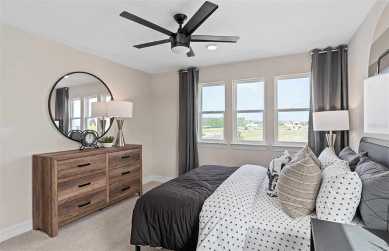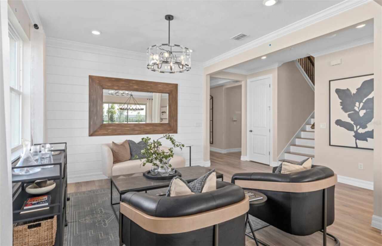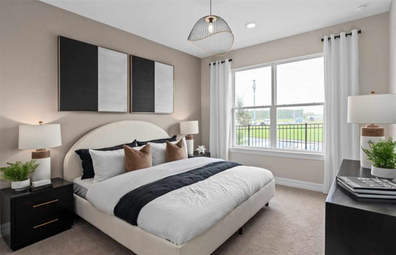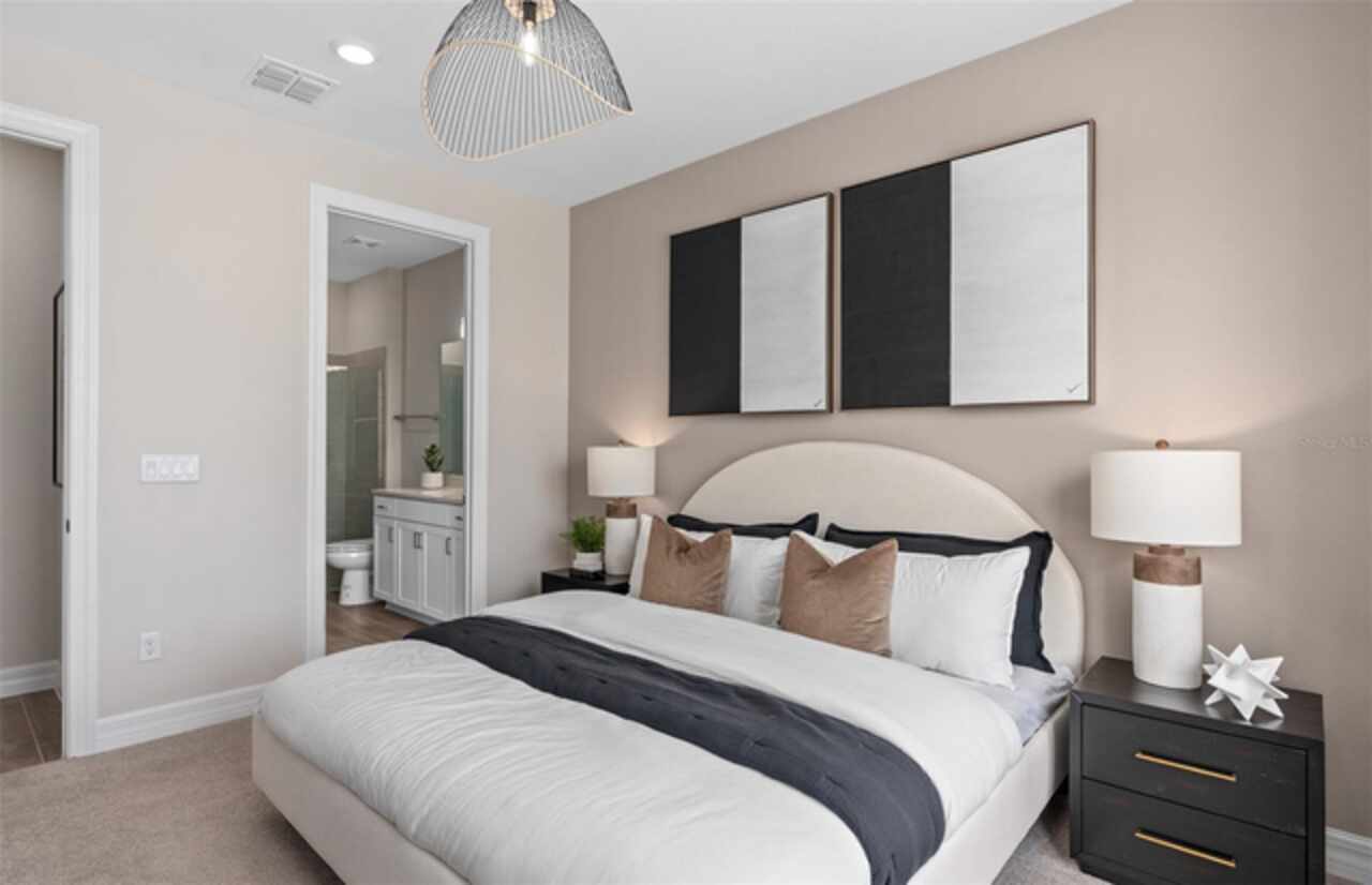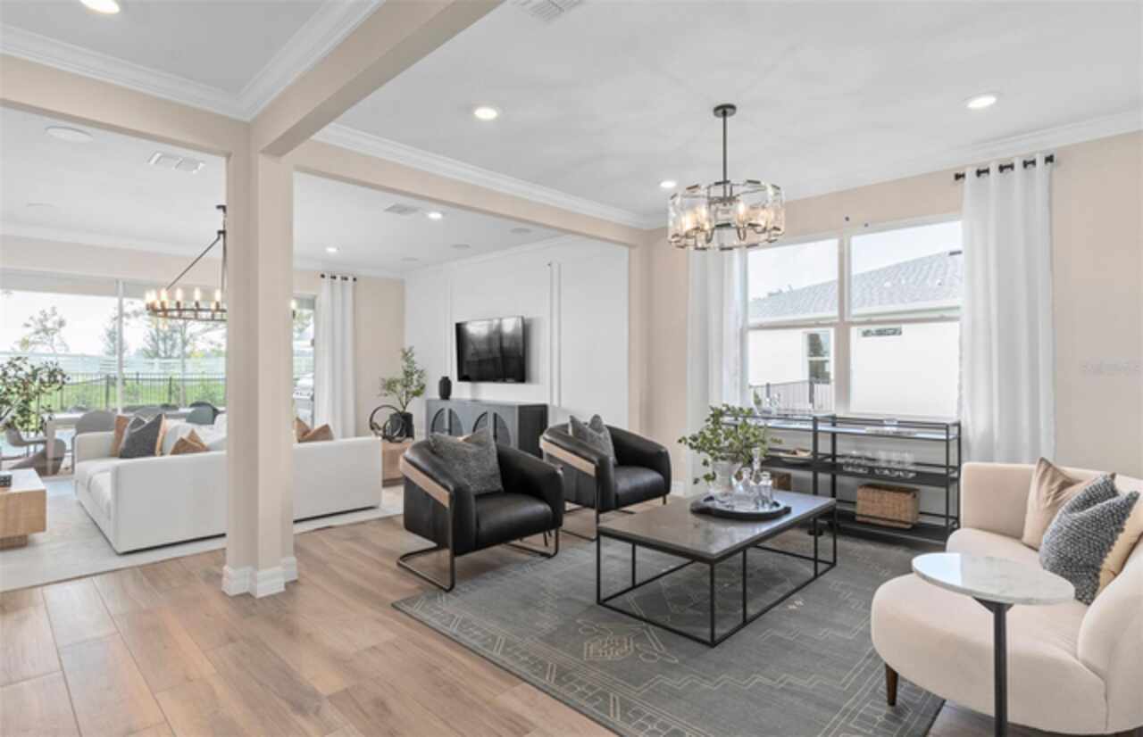 Under Construction. Introducing The Estates at Nona Sound, a collection of luxury single-family and estate-style homes in an ideal location just minutes from the acclaimed Lake Nona Town Center. Enjoy a private, gated new neighborhood featuring designer finishes, where you can personalize your new home in our professional design studio. 2 Models Open Daily! Step into the Scarlett by Pulte Homes, where elegance and modern convenience come together in perfect harmony. This stunning 5-bedroom, 4.5-bathroom, 2 car garage residence offers a seamless blend of sophistication and comfort, with every detail thoughtfully designed to elevate your living experience. The open-concept layout creates a spacious and airy environment, enhanced by an abundance of natural light and luxurious finishes. On the first floor, discover an en suite bedroom with attached bathroom, featuring a glass enclosed shower, linen closet, exquisite quartz countertops, and a walk-in closet, providing a private and inviting retreat for guests. As you continue into the home, an open flex room, located next to the gathering room, allows natural light to flood the area, making it the perfect spot for relaxation or entertaining. If you need a private office, there is also a second enclosed flex room for all of your needs. The heart of this home is the gourmet kitchen, Winstead White cabinetry beautifully complements the striking Lagoon Quartz countertops and flow picket tile backsplash. Soft-close drawers, easy-access cabinets, upgraded sink and faucet, and Whirlpool built-in stainless-steel appliances, including a refrigerator combine to create a chef-inspired space designed for both form and function. The kitchen seamlessly flows into the café and gathering room, with a pocket sliding glass door that opens to the covered lanai, enhancing the indoor-outdoor living experience. For added convenience and privacy, you’ll find a powder room for guests located on the first floor. Upstairs, the tranquil owner’s suite serves as a private sanctuary, featuring a spacious walk-in closet and a spa-like en suite bathroom with dual vanity sinks. The loft area offers an ideal space for relaxation, whether for a quiet evening or a movie night. The second floor also includes three additional bedrooms, two bathrooms (one of which is an en suite), and a conveniently located laundry room, making daily living effortlessly easy. The laundry room itself offers both style and convenience with built-in Trenton Quill cabinets for additional storage, Whirlpool washer and dryer, and a utility sink trimmed in quartz countertops, adding a touch of elegance to everyday tasks. This home is crafted with high-end touches, such as Shaw brand wood-look luxury vinyl plank flooring throughout the first floor living areas and loft, ceramic Tile flooring in the bathrooms and laundry room, and plush, stain-resistant Shaw carpet in the enclosed flex room and bedrooms. From the oil rubbed bronze hardware finishes and 8' interior doors, to the Wrought Iron Balusters with Oak Handrail at the staircase no detail is overlooked. 2” faux wood blinds, rain gutters, garage floor epoxy finish, and Sherwin Williams City Loft interior paint add both style and ease to daily living. This home also comes equipped with a variety of modern conveniences, including a smart thermostat and doorbell, additional LED downlights, and additional data and media ports.
