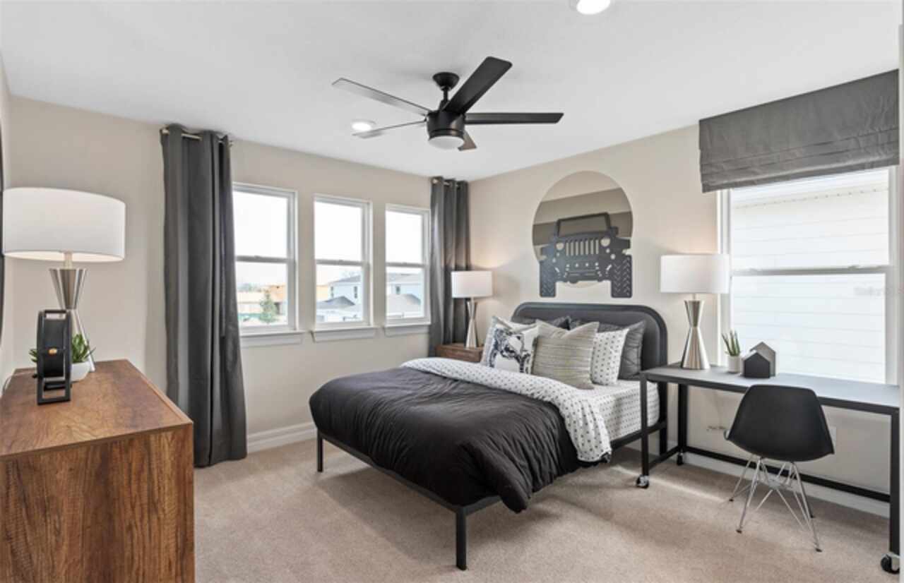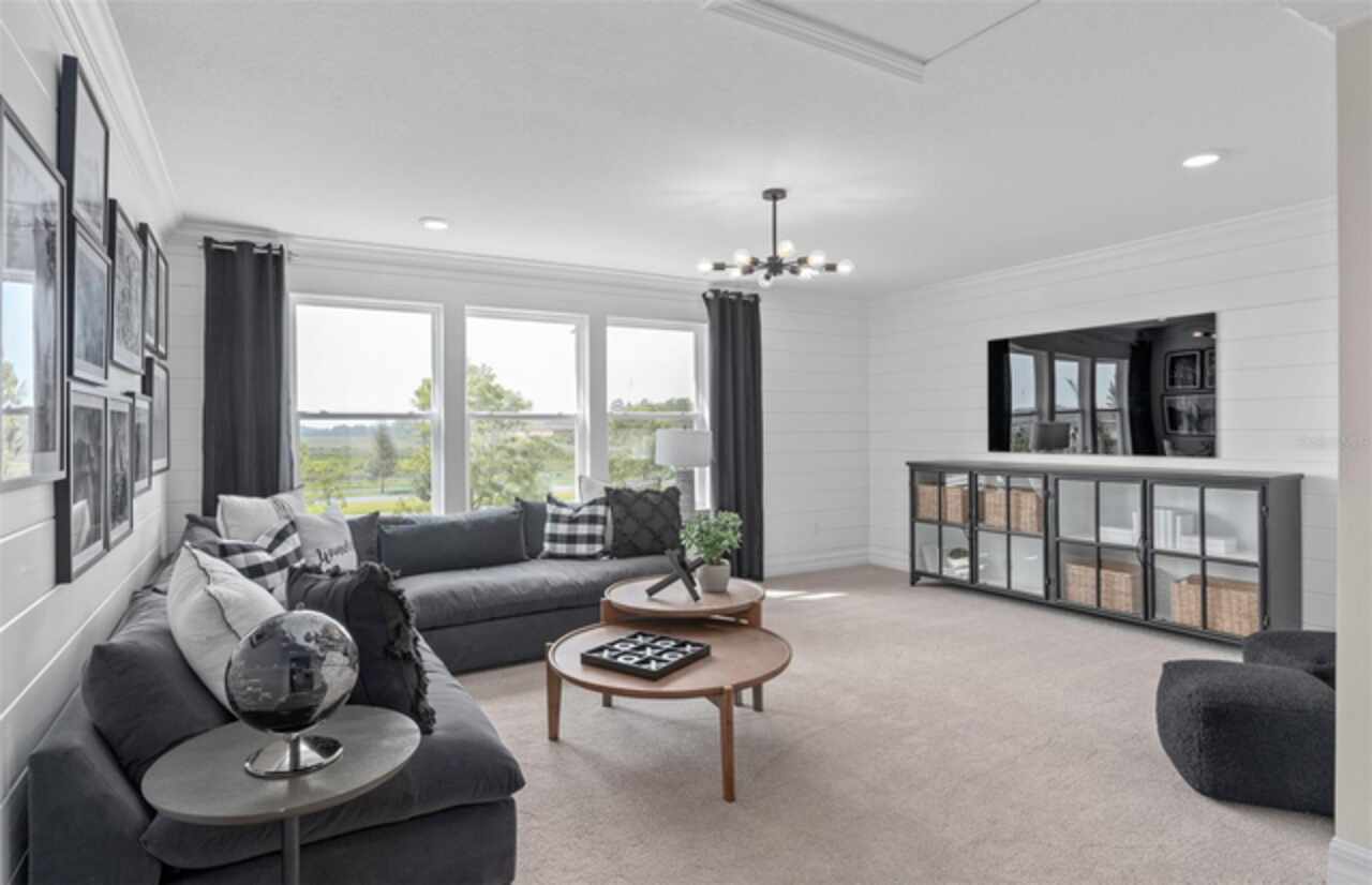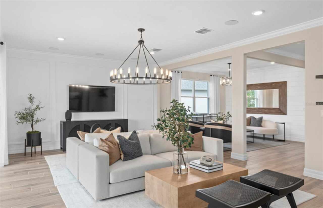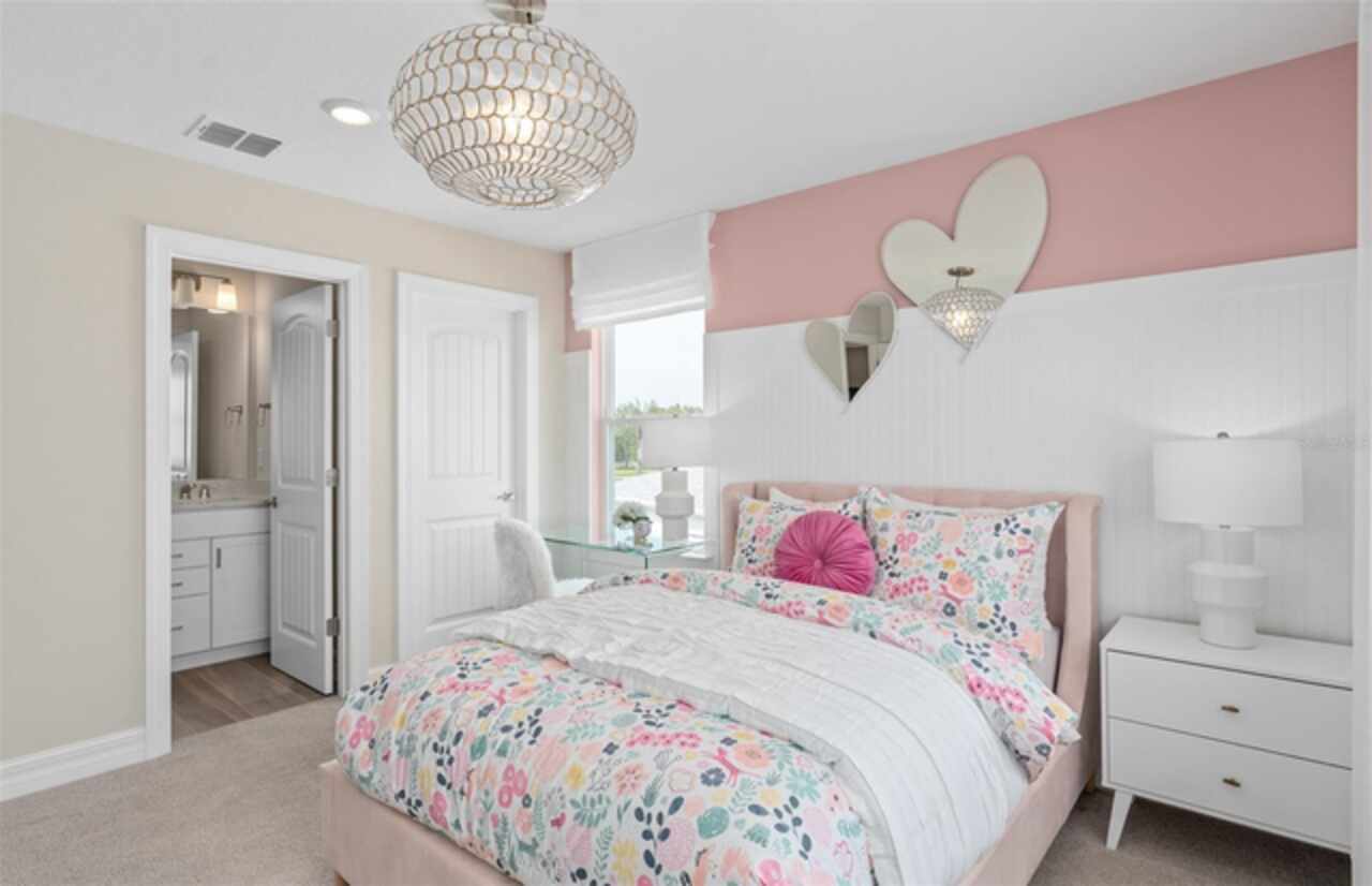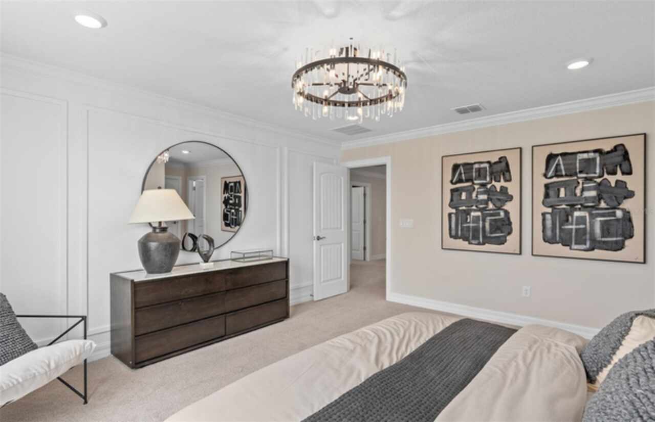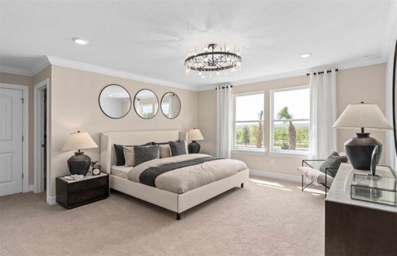 Under Construction. Introducing The Estates at Nona Sound, a collection of luxury single-family and estate-style homes in an ideal location just minutes from the acclaimed Lake Nona Town Center. Enjoy a private, gated new neighborhood featuring designer finishes, where you can personalize your new home in our professional design studio. 2 Models Open Daily! Step into the Scarlett by Pulte Homes, where elegance and modern convenience come together in perfect harmony. This stunning 5-bedroom, 4.5-bathroom, 2 car garage residence offers a seamless blend of sophistication and comfort, with every detail thoughtfully designed to elevate your living experience. The open-concept layout creates a spacious and airy environment, enhanced by an abundance of natural light and luxurious finishes. On the first floor, discover an en suite bedroom with attached bathroom, featuring a glass enclosed shower, linen closet, exquisite quartz countertops, and a walk-in closet, providing a private and inviting retreat for guests. As you continue into the home, an open flex room, located next to the gathering room, allows natural light to flood the area, making it the perfect spot for relaxation or entertaining. If you need a private office, there is also a second enclosed flex room for all of your needs. The heart of this home is the gourmet kitchen, Winstead White cabinetry beautifully complements the striking Lagoon Quartz countertops and flow picket tile backsplash. Soft-close drawers, easy-access cabinets, upgraded sink and faucet, and Whirlpool built-in stainless-steel appliances, including a refrigerator combine to create a chef-inspired space designed for both form and function. The kitchen seamlessly flows into the café and gathering room, with a pocket sliding glass door that opens to the covered lanai, enhancing the indoor-outdoor living experience. For added convenience and privacy, you’ll find a powder room for guests located on the first floor. Upstairs, the tranquil owner’s suite serves as a private sanctuary, featuring a spacious walk-in closet and a spa-like en suite bathroom with dual vanity sinks. The loft area offers an ideal space for relaxation, whether for a quiet evening or a movie night. The second floor also includes three additional bedrooms, two bathrooms (one of which is an en suite), and a conveniently located laundry room, making daily living effortlessly easy. The laundry room itself offers both style and convenience with built-in Trenton Quill cabinets for additional storage, Whirlpool washer and dryer, and a utility sink trimmed in quartz countertops, adding a touch of elegance to everyday tasks. This home is crafted with high-end touches, such as Shaw brand wood-look luxury vinyl plank flooring throughout the first floor living areas and loft, ceramic Tile flooring in the bathrooms and laundry room, and plush, stain-resistant Shaw carpet in the enclosed flex room and bedrooms. From the oil rubbed bronze hardware finishes and 8' interior doors, to the Wrought Iron Balusters with Oak Handrail at the staircase no detail is overlooked. 2” faux wood blinds, rain gutters, garage floor epoxy finish, and Sherwin Williams City Loft interior paint add both style and ease to daily living. This home also comes equipped with a variety of modern conveniences, including a smart thermostat and doorbell, additional LED downlights, and additional data and media ports.