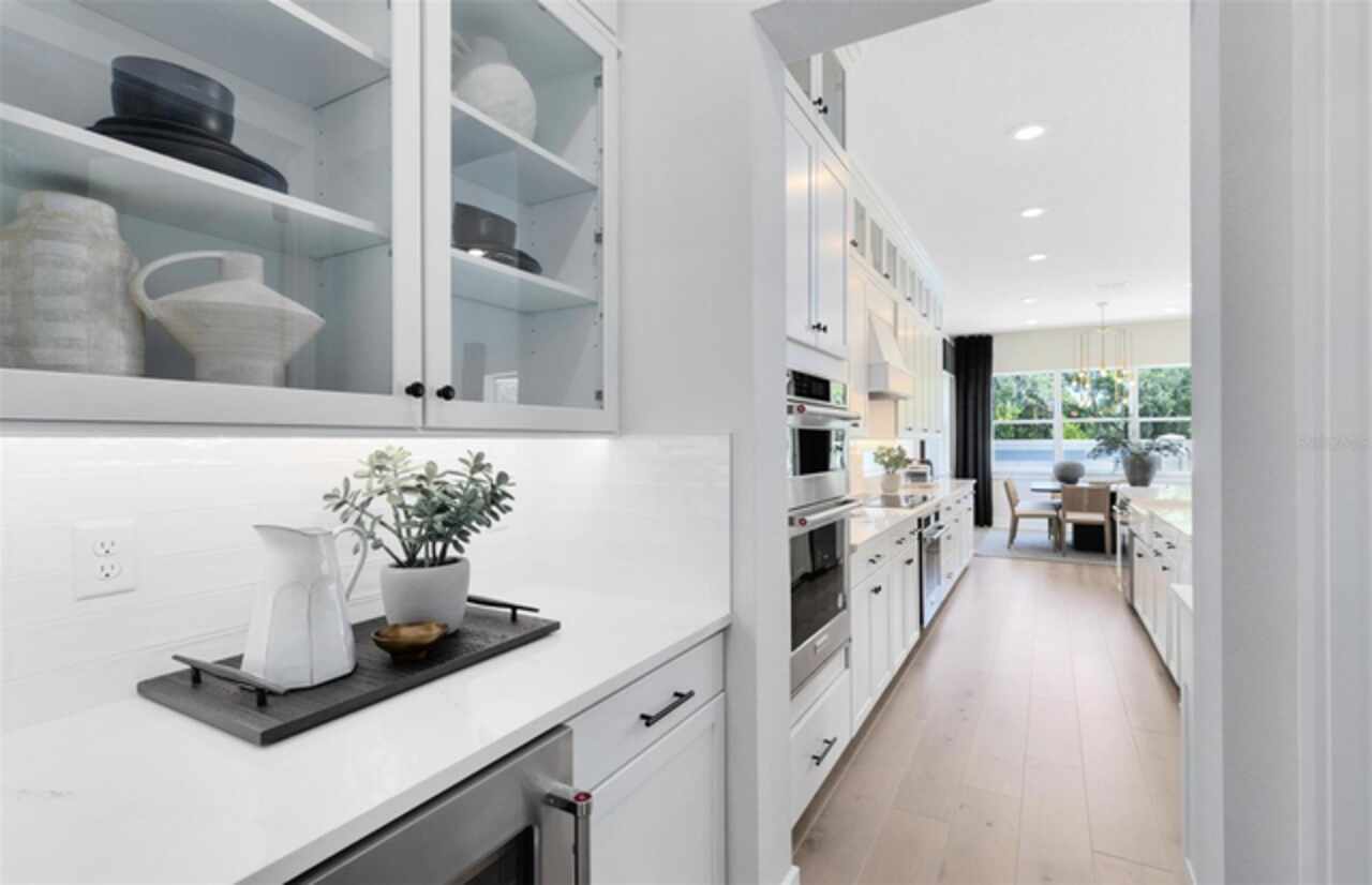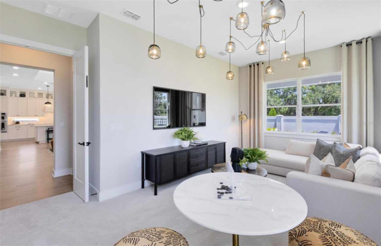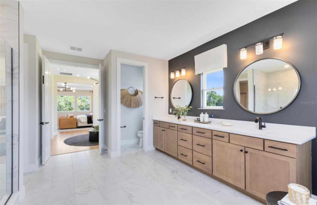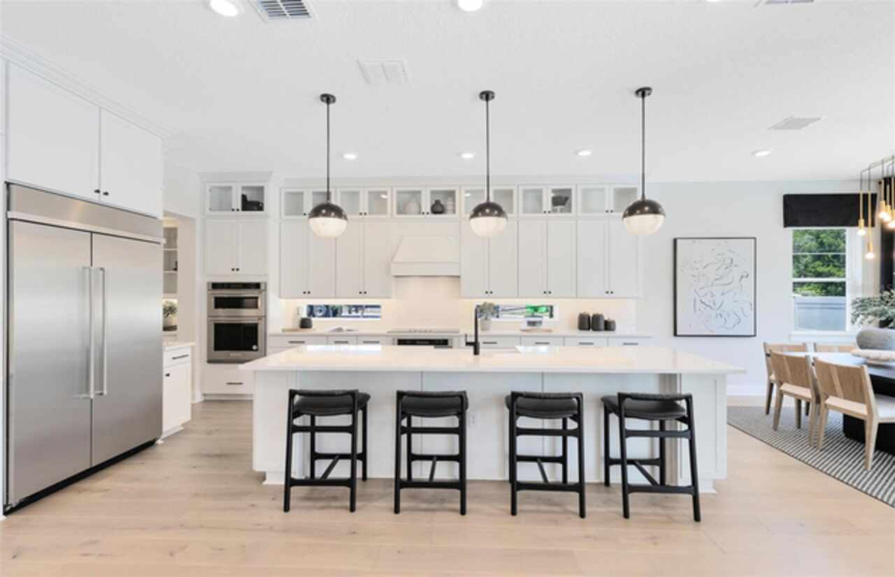 Under Construction. Introducing The Estates at Nona Sound, a collection of luxury single-family and estate-style homes in an ideal location just minutes from the acclaimed Lake Nona Town Center. Enjoy a private, gated new neighborhood featuring designer finishes, where you can personalize your new home in our professional design studio. 2 Models Open Daily! Introducing the exquisite Roseland home by Pulte, a 5-bedroom, 5-bathroom masterpiece on a water-view homesite, blending privacy with natural beauty. As you step through the double entry doors, you are immediately greeted by a striking foyer that rises to the second floor, setting the tone for the entire home. On either side enclosed flex rooms offer versatility, while the formal dining room invites effortless entertaining. As you travel further into the Roseland you are greeted by a grand staircase, featuring luxury vinyl plank treads and risers and Wrought Iron Balusters with an Oak Handrail. Tucked just under the staircase is a wine lover’s dream, a wine cave. From there, you enter the heart of the home—the open concept kitchen and living area. In the gathering room, the ceiling soars to the second floor allowing natural light to flood the space. A chef-inspired gourmet kitchen, equipped with KitchenAid stainless steel appliances, including a 48” Built-in Side-by-Side refrigerator and built-in oven and cooktop, is a dream for culinary enthusiasts. Two-tone Winstead Burlap and White Soft-close stacked cabinetry is paired with exquisite quartz countertops and tile backsplash, creating a timeless and sophisticated look, while a spacious walk-in pantry ensures ample storage. The open-concept design effortlessly connects the kitchen to the gathering room and cafe, perfect for both intimate gatherings and larger celebrations. The covered lanai connected by the pocket sliding glass door offers a seamless transition to the outdoors, ideal for year-round entertaining. Thoughtfully pre-plumbed for an outdoor kitchen, with pre-wiring for a pool or spa and a pool bath already in place, this backyard is truly an entertainer's paradise. Also located on the first floor is a Multi-Generational Suite, offering an en suite bathroom with glass enclosed shower, linen closet, and walk-in closet. Upstairs, the expansive owner’s suite includes a private retreat and a spa-inspired bath with a free-standing tub, frameless glass shower, double walk-in closets, and enclosed toilet. The second floor also offers two additional spacious bedrooms connected by a Jack and Jill bathroom, ensuring both privacy and convenience, while the third bedroom enjoys its own en suite bath, providing an added level of comfort and luxury. The laundry room itself offers both style and convenience with built-in Trenton Quill cabinets for additional storage, Whirlpool front load washer and dryer, and a utility sink trimmed in quartz countertops, adding a touch of elegance to everyday tasks. With an intelligently designed layout and meticulously curated finishes, this home offers the perfect balance of form, function, and style. It's the epitome of luxury living in a highly sought-after location, blending convenience, sophistication, and thoughtful design into a living experience like no other. Schedule a tour today!