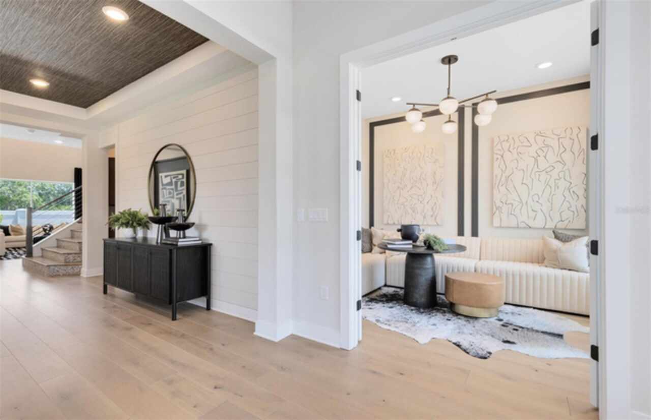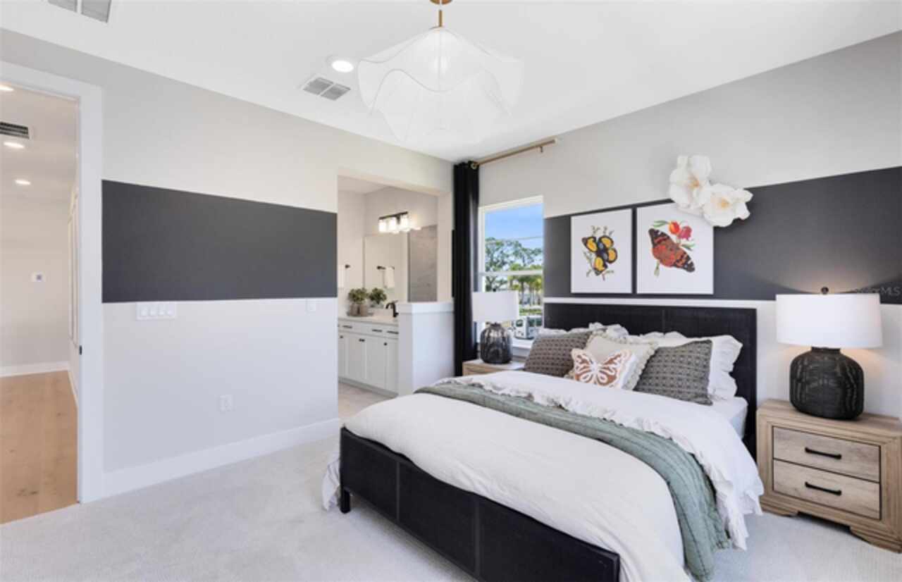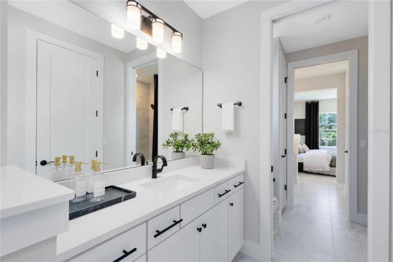 Under Construction. Introducing The Estates at Nona Sound, a collection of luxury single-family and estate-style homes in an ideal location just minutes from the acclaimed Lake Nona Town Center. Enjoy a private, gated new neighborhood featuring designer finishes, where you can personalize your new home in our professional design studio. 2 Models Open Daily! Introducing the exquisite Roseland home by Pulte, a 5-bedroom, 5-bathroom masterpiece on a water-view homesite, blending privacy with natural beauty. As you step through the double entry doors, you are immediately greeted by a striking foyer that rises to the second floor, setting the tone for the entire home. On either side enclosed flex rooms offer versatility, while the formal dining room invites effortless entertaining. As you travel further into the Roseland you are greeted by a grand staircase, featuring luxury vinyl plank treads and risers and Wrought Iron Balusters with an Oak Handrail. Tucked just under the staircase is a wine lover’s dream, a wine cave. From there, you enter the heart of the home—the open concept kitchen and living area. In the gathering room, the ceiling soars to the second floor allowing natural light to flood the space. A chef-inspired gourmet kitchen, equipped with KitchenAid stainless steel appliances, including a 48” Built-in Side-by-Side refrigerator and built-in oven and cooktop, is a dream for culinary enthusiasts. Two-tone Winstead Burlap and White Soft-close stacked cabinetry is paired with exquisite quartz countertops and tile backsplash, creating a timeless and sophisticated look, while a spacious walk-in pantry ensures ample storage. The open-concept design effortlessly connects the kitchen to the gathering room and cafe, perfect for both intimate gatherings and larger celebrations. The covered lanai connected by the pocket sliding glass door offers a seamless transition to the outdoors, ideal for year-round entertaining. Thoughtfully pre-plumbed for an outdoor kitchen, with pre-wiring for a pool or spa and a pool bath already in place, this backyard is truly an entertainer's paradise. Also located on the first floor is a Multi-Generational Suite, offering an en suite bathroom with glass enclosed shower, linen closet, and walk-in closet. Upstairs, the expansive owner’s suite includes a private retreat and a spa-inspired bath with a free-standing tub, frameless glass shower, double walk-in closets, and enclosed toilet. The second floor also offers two additional spacious bedrooms connected by a Jack and Jill bathroom, ensuring both privacy and convenience, while the third bedroom enjoys its own en suite bath, providing an added level of comfort and luxury. The laundry room itself offers both style and convenience with built-in Trenton Quill cabinets for additional storage, Whirlpool front load washer and dryer, and a utility sink trimmed in quartz countertops, adding a touch of elegance to everyday tasks. With an intelligently designed layout and meticulously curated finishes, this home offers the perfect balance of form, function, and style. It's the epitome of luxury living in a highly sought-after location, blending convenience, sophistication, and thoughtful design into a living experience like no other. Schedule a tour today!