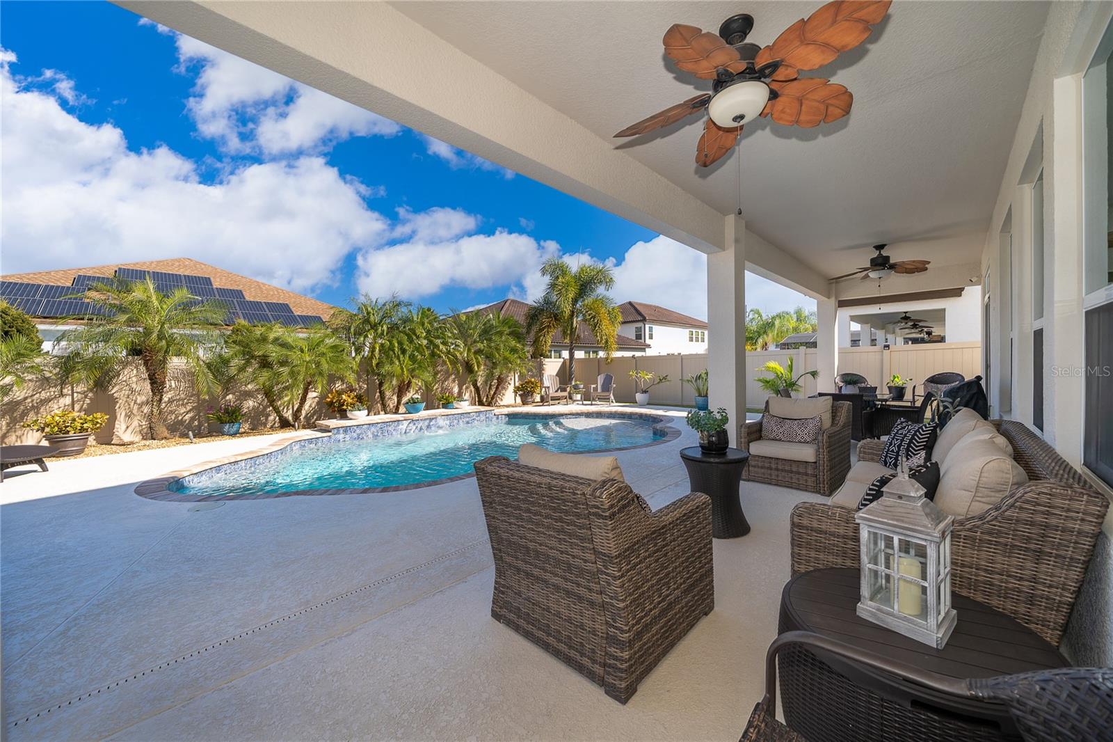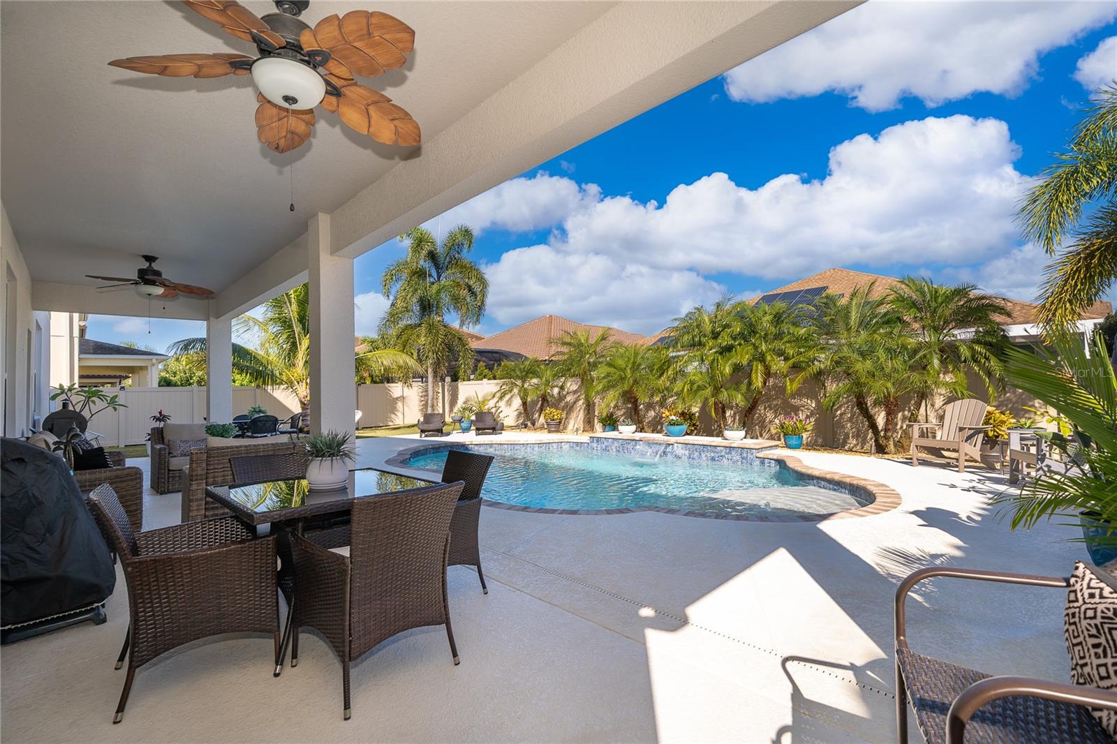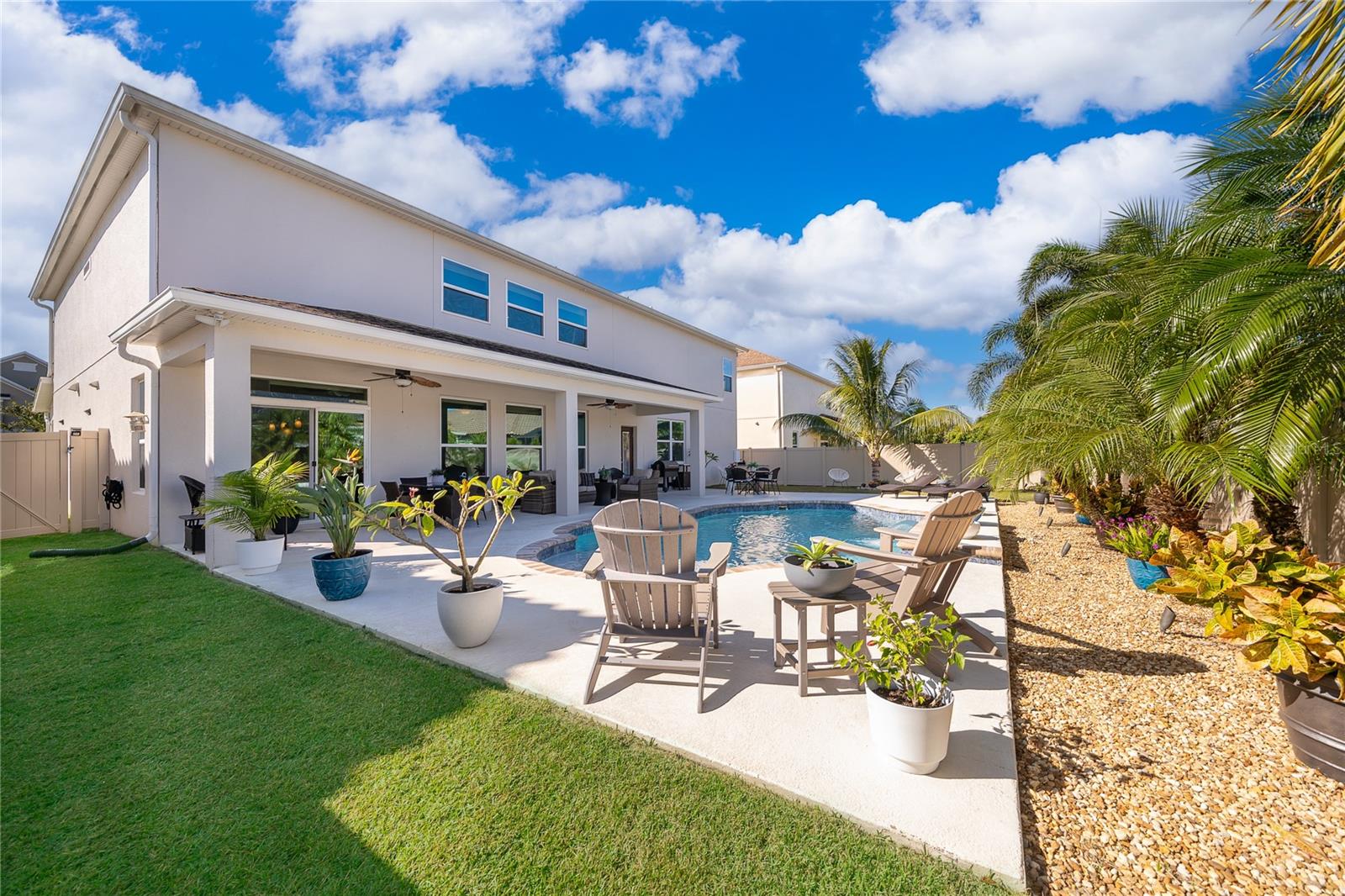 Experience luxury living in the sought after Fells Landing community of Lake Nona with this stunning 5-bedroom, 4-bath home featuring a private office and home theater. Meticulously maintained and thoughtfully upgraded, this residence offers the perfect blend of elegance, comfort, and modern efficiency. Recent enhancements include a 2021 PVC privacy fence, 2022 solar panels, brand-new 2022 pool, and new appliances including washer and dryer. The home was freshly painted in 2023, with one of two A/C units replaced the same year for optimal comfort. In 2024, two 40-gallon water heaters were added, ensuring convenience for every household need. Inside, you’ll find an inviting open layout with high ceilings, abundant natural light, and refined finishes throughout. The gourmet kitchen is a chef’s delight, boasting stainless steel appliances, granite countertops, custom cabinetry, a center island with breakfast bar, and a walk-in pantry. The spacious primary suite offers a tranquil retreat with a spa-like bath featuring dual vanities, a soaking tub, and a large walk-in closet. Located in the heart of Lake Nona, Orlando, this exceptional property offers the ideal balance of modern sophistication and family-friendly living—just minutes from top schools, shopping, dining, and medical facilities.