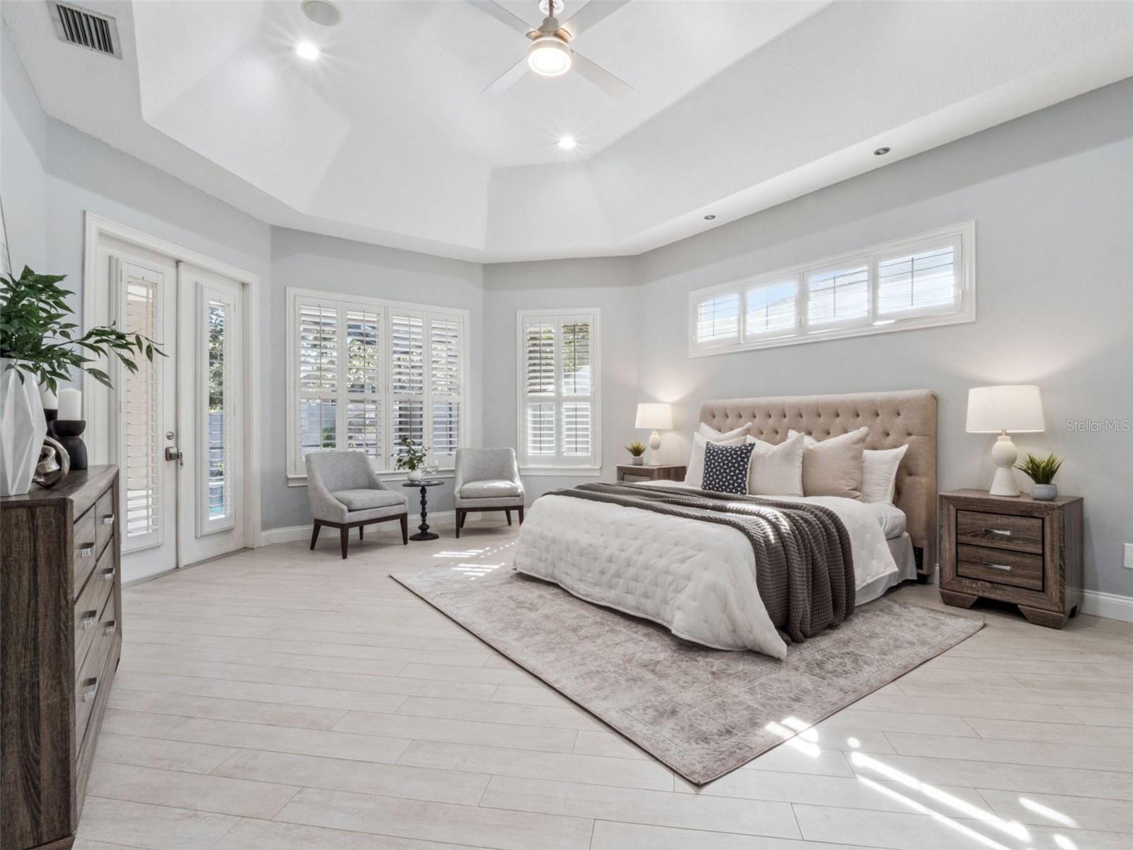 Welcome to Westover Reserve, a gated Windermere enclave celebrated for its tree-lined streets, strong community identity, and central convenience. Inside, vaulted ceilings, expansive windows, and an open layout give this 5-bedroom, 4-bath WITH BONUS home an immediate sense of volume and light. The newly renovated kitchen anchors the main level with 42" cabinetry, quartz counters, an oversized island, double oven, and thoughtful storage. It opens to a spacious family room with a fireplace, breakfast nook and the most incredible windows. The first floor also includes durable wood-look porcelain tile, a coffered formal dining room, a private office (5th bedroom), the primary suite with custom shutters and pool access, plus two additional bedrooms connected by a dual-entry bath. Upstairs offers a fourth bedroom, full bath, and a generous bonus room with wet bar, framed in warm wood flooring. Outside, a screened retreat features a sparkling pool, covered patio, and refreshed landscaping that enhances the home’s clean architectural lines. The seamless transitions between the indoor and outdoor living spaces are perfect for entertaining and gathering. Community amenities include a gated entrance, tennis courts, playground, sidewalks, and deeply rooted neighborhood pride. Minutes to dining, shopping, major highways, and top-rated schools. Schedule your showing today for this custom, bright, move-in-ready opportunity in one of Windermere’s most established and sought-after communities.Virtual tour, video and floor plan available.