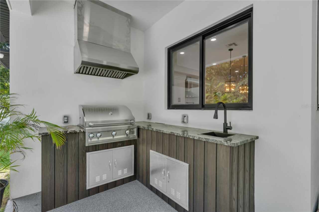 Balcony, Lighting, Outdoor Grill, Outdoor Kitchen, Rain Gutters, Sidewalk, Sliding Doors