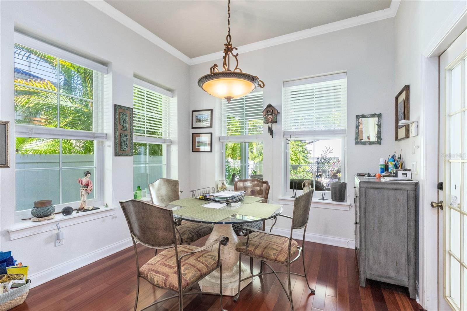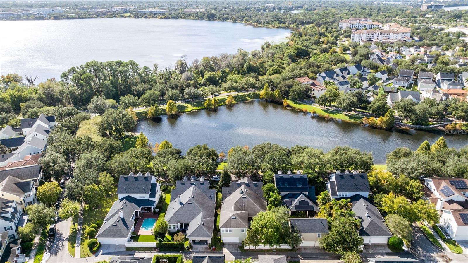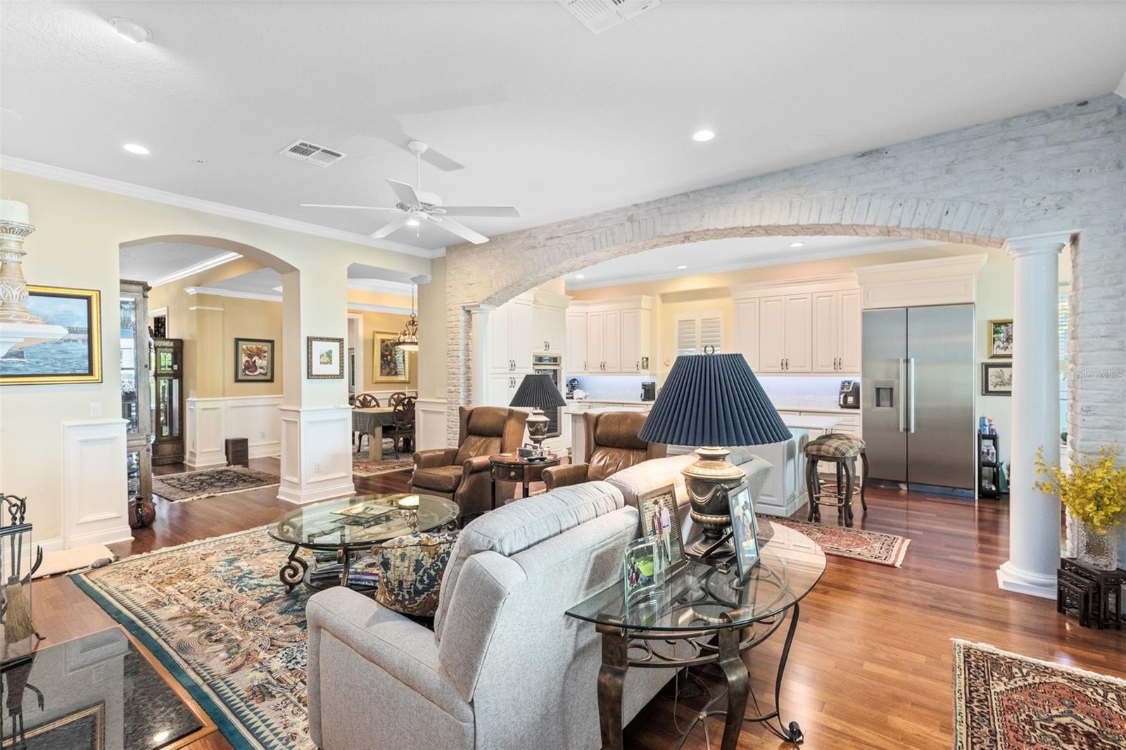 Under contract-accepting backup offers. Discover this beautifully updated one story home by David Weekley, nestled on a picturesque street in Baldwin Park. Enjoy the peaceful pond views and breathtaking western sunsets from the welcoming front porch. This inviting space sets the tone for relaxed Baldwin Park living, making it an ideal spot for morning coffee or evening sunsets. Inside, the home offers three spacious bedrooms plus a private studio apartment above the garage - a versatile fourth bedroom complete with a full kitchen and bath. With access from the main home, the studio is perfect for guests, in-laws, or a quiet home office. At the heart of the home, the stunning kitchen features custom white cabinetry with detailed molding and dark hardware provides a timeless, elegant look, complemented by gleaming quartz countertops and a matching full height quartz backsplash for a seamless, high end finish. The oversized island offers a built in cooktop, abundant workspace, a built in wine rack, and comfortable seating for casual dining. Premium stainless steel appliances, including a double wall oven, dishwasher, and oversized refrigerator, make the space both beautiful and highly functional. A softly white washed brick archway frames the kitchen, adding texture and architectural charm, while warm hardwood floors introduce comfort and contrast. The family room features both a wet bar and a dry bar, complete with a wine or beverage cooler, offering the perfect setup for entertaining or relaxed evenings at home. The formal dining room is ideal for hosting gatherings, with room for a long table and elegant setting. Step through to the covered back porch, an inviting retreat featuring electric screen shutters and a tongue and groove wood ceiling for added architectural charm. Overlooking a beautifully landscaped patio and fire pit, this space is perfect for outdoor dining, entertaining, or simply unwinding in the peaceful backyard garden. The private primary suite is located at the rear of the home and offers a custom walk in closet and a spa inspired bath with separate tub and shower. Two secondary bedrooms share a flex space, ideal for a study, playroom, or reading nook. One bedroom has an ensuite bath, and an additional full bathroom serves the other bedroom and the flex space. A half bath conveniently serves guests and the outdoor area. Major updates include new double pane windows, dual 2024 AC systems. The home features wood and tile flooring throughout, creating a cohesive and low maintenance design. Enjoy the best of Baldwin Park living with tree lined streets, scenic lakes and walking trails, community pools, gyms, parks, and local shopping and dining just moments away. Schedule your private showing today to experience one of Baldwin Park’s most distinctive homes.