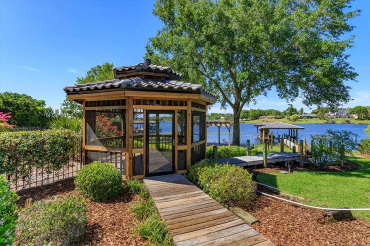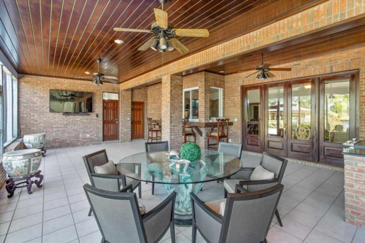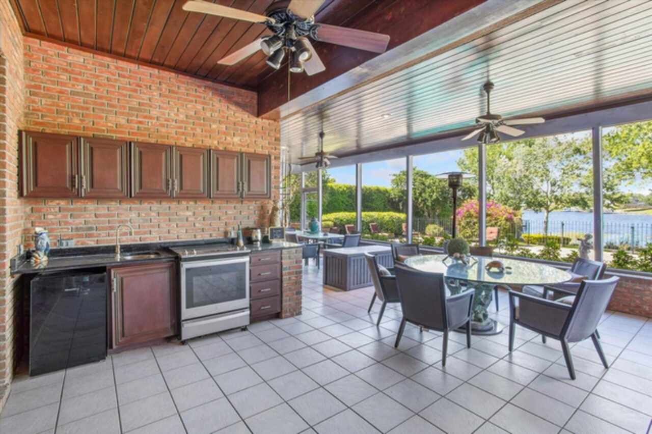 Under contract-accepting backup offers. Gorgeous Private Lakefront Custom Brick Estate over 10, 000 sq ft under roof, just under 7, 000 sq ft under HVAC. First Time Ever on Market! Step thru the Gorgeous Leaded Glass Doors into this Magnificent Estate the Entry made for Royalty Custom Magnolia Curved Staircase with custom Italian Marble Flooring installed 2024. Updated Massive Chandler with Sconces lighting grace the Staircase. To the left the formal living room to the right Formal Dining Room with a New Modern Chandlier both rooms have Custom Built Out Windows that engulf the Rooms with Beautiful Light. Step into the Extraordinary Library/Office see the Custom Workmanship Lighted Display/ Bookcases, The Mantel and the Stunning Fireplace a True Masterpiece of Art. From Enry or Library step into Massive Family Room A Entertainers Dream Home lined with French Doors with Incredible Views of 136 Feet of Lakefront Views from every Angle or step thru the doors to 1, 600 sq ft screen in Patio with Outdoor Kitchen and Service Bar again Lake Views from every angle. A Hidden Suite with another enclosed Balcony. Step in from the outdoor kitchen into the Large Dinette and Large Custom Kitchen has window to service bar on patio!! Yes with all new GE Cafe Stainless Appliances . A Custom Butler Pantry leads to Formal Dining Room. With a Large Food Pantry in Kitchen as well. Go up the back Stairs go to the right A Massive Gameroom with Custom Wet Bar and Upper Deck for Lounging of course that leads to Upstairs Enclosed Balcony! Yes a Entertainers Dream!! The Gameroom Bath is shared with bedroom #6. Pass 3 more bedrooms to the over 1, 000 sq ft Master Suite with a Bathroom fit for King or Queen Yeas with its on Enclosed Balcony. Also there is a 400 sq ft open balcony for private sunbathing. This Estate boast of a Resort Style Pool and Spa pathways to Gazebo and Trellis on to deck leading to Large both house with lift for large boat and 2 Ski Dos. Oh of course the oversized 4 car side entrance garage freshly tiled 2025with lots of Closet Storage. Now there is two tall Privacy Hedges on both sides of the Home. New $125, 000 roofs House, Gazebo and Boat House installed 2024, 3 New Permitted A/C s just install 2025. Home was replumbed. All new modern electrical switches and receptacles installed 2025. The dock was built to house a large ski boat the with 8 x 8 piers.