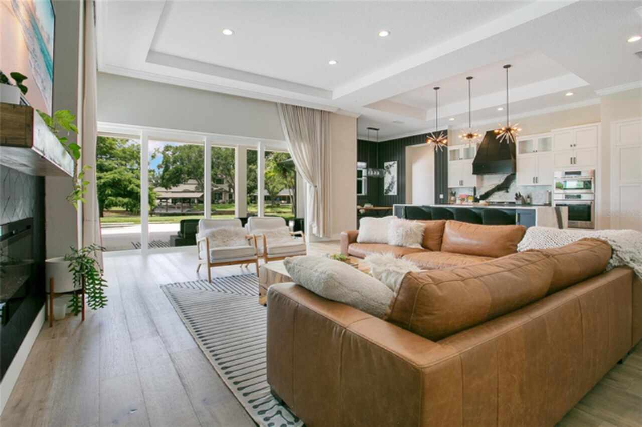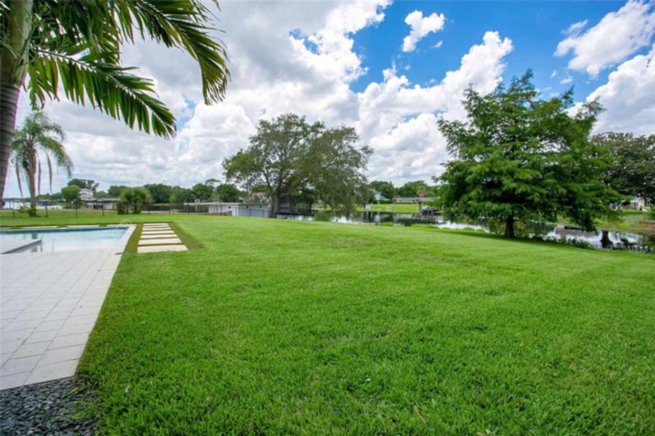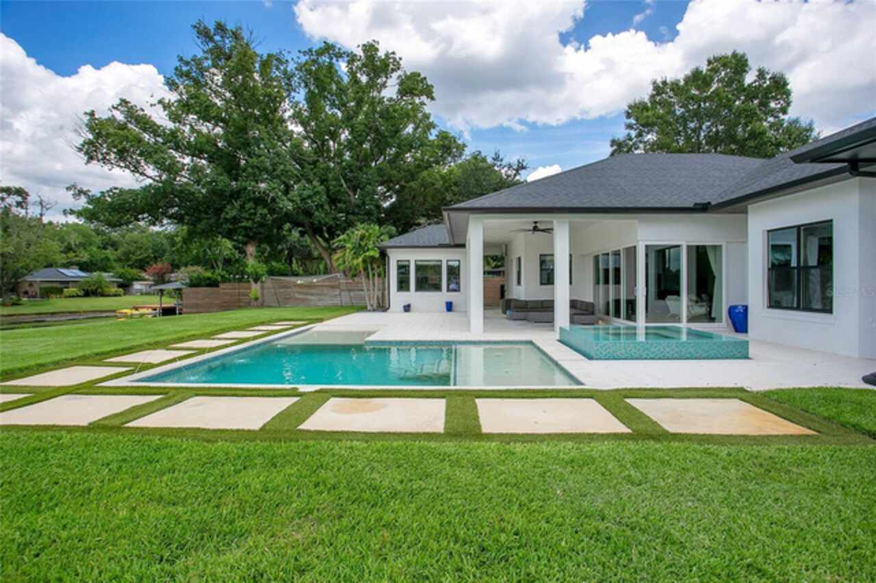 Some homes are built to stand out. Others are designed to settle you in. Here, you get both. Set on a quiet, dead-end street along the Conway Chain of Lakes, this custom-built saltwater pool home brings together architectural clarity, everyday ease, and a waterfront backdrop that never gets old. With 4 bedrooms, 4 full bathrooms, a 3-car garage, and a detached office, the layout feels expansive without overreaching — grounded by clean lines, volume where it counts, and private spaces that support real-life flow. The exterior sets the tone: modern but warm, framed by mature palms and a front entry that draws you in with intention. Inside, the foyer opens to a central living room — a quiet anchor at the heart of the home. From there, the layout unfolds toward the kitchen and family room, where pocket sliding doors disappear into the wall and the indoors spill effortlessly into the outdoor living space. The oversized island takes center stage, overlooking the family room and pool beyond — it’s where homework gets done, meals get made, and guests tend to linger. Just behind it, a hidden butler’s pantry keeps everything in its place — generous in size, functional by design, and tucked completely out of view. The bedrooms are each set in their own corner, offering privacy and flexibility. Two guest suites feature full private baths, while the third shares a nearby full bath. The primary suite spans the entire left wing — quietly set apart with a wall of windows, dual walk-in closets, direct pool access, and an ensuite that makes a statement without saying too much. A freestanding tub sits behind frameless glass, sharing space with a double shower and dual rainfall showerheads. Separate vanities and clean finishes keep the mood soft, balanced, and quietly luxurious. Even the laundry room gets it right — with custom cabinetry and a built-in dog wash that simply makes sense. But where this home truly settles into its identity is out back. Clean lines give way to open sky, water views, and a stretch of green that rolls gently to the lake’s edge. A saltwater pool and spa sit at the center, framed by a covered patio and geometric stepping pads — a space where conversations run long, the sunsets land softly, and the outside feels like part of the home. It’s quiet here. Intentional. The kind of yard that feels like a privilege to care for. Zoned for A-rated Pershing K-8 and Boone High School (Go Braves!). Tucked away, yet fully connected. Minutes to the airport, local shops and dining, and just a short ride to downtown — without ever feeling close to the noise. Everything about this home is exactly where it should be — in proportion, in placement, and in how it makes you feel when you walk through the door.