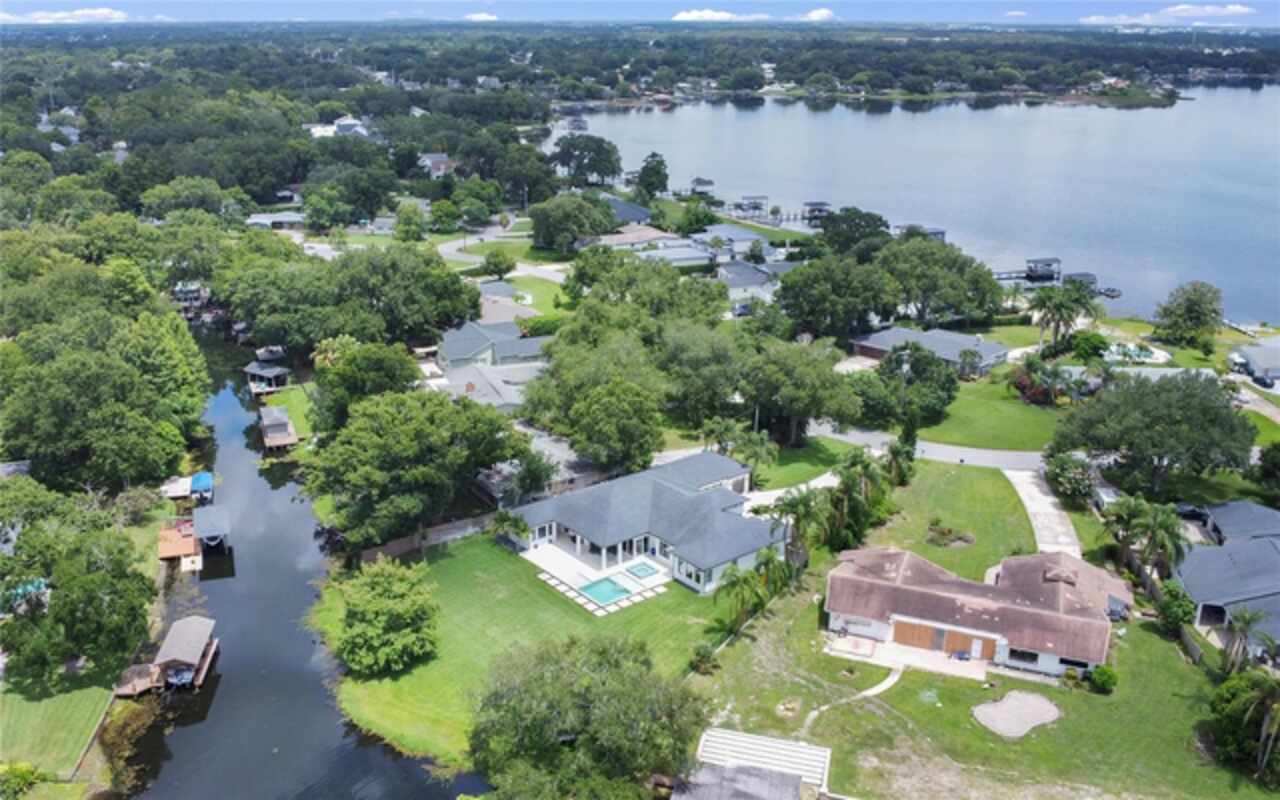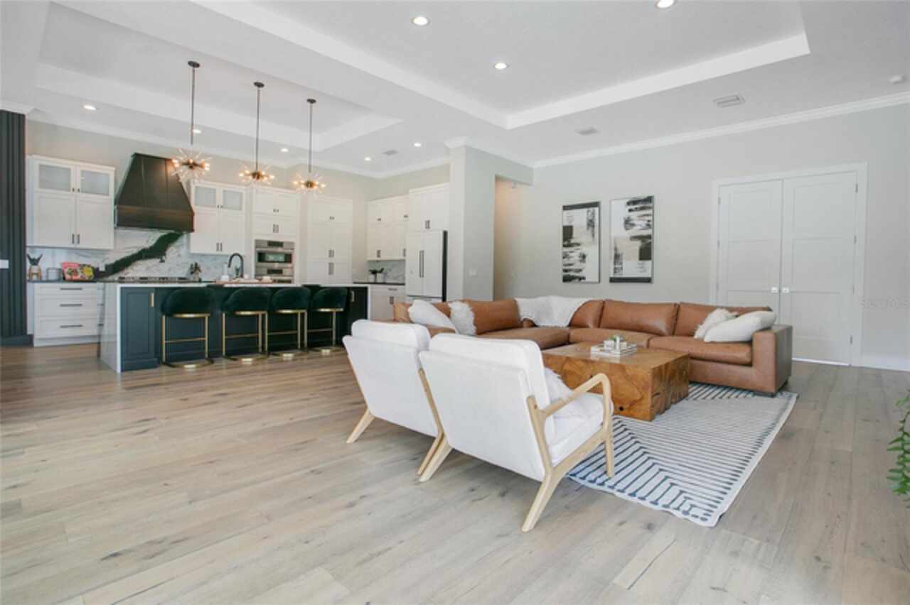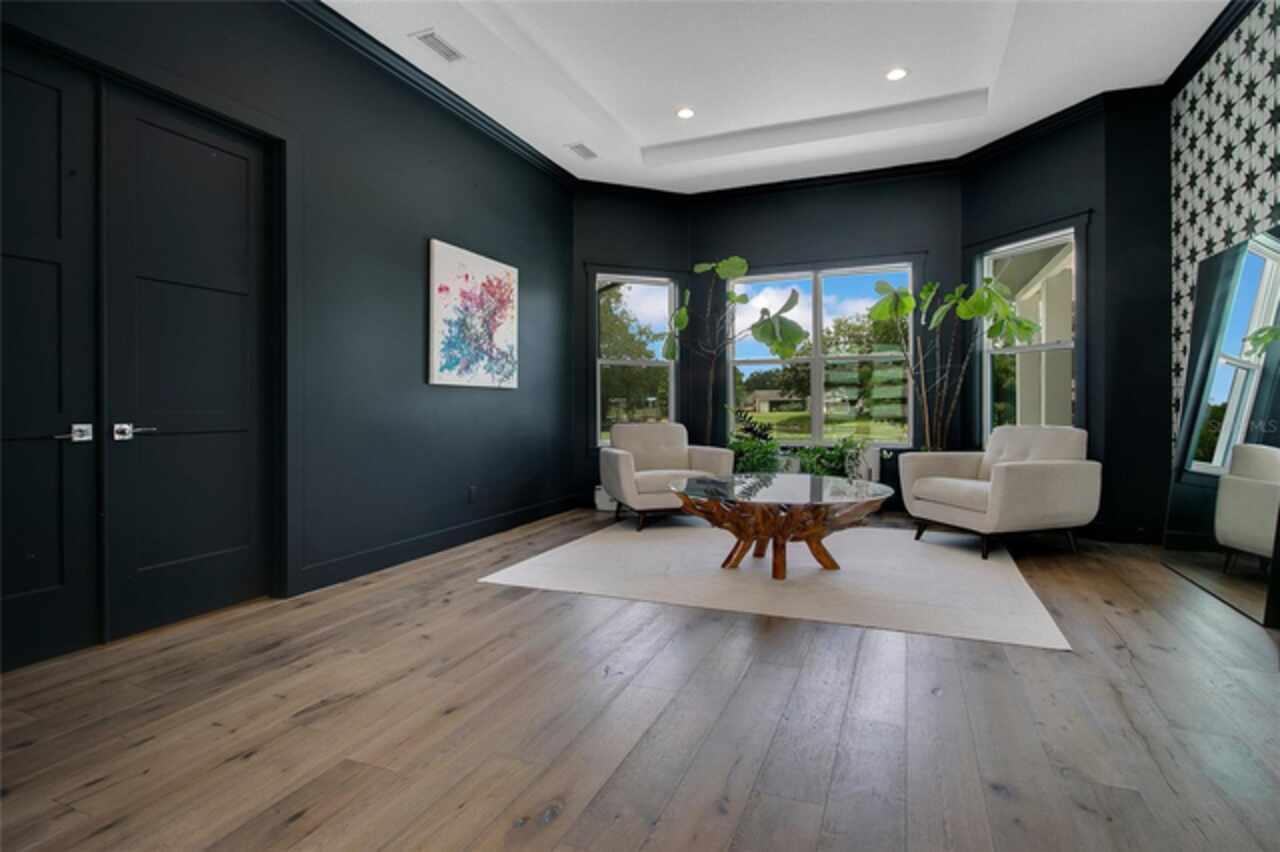 Some homes are built to stand out. Others are designed to settle you in. Here, you get both. Set on a quiet, dead-end street along the Conway Chain of Lakes, this custom-built saltwater pool home brings together architectural clarity, everyday ease, and a waterfront backdrop that never gets old. With 4 bedrooms, 4 full bathrooms, a 3-car garage, and a detached office, the layout feels expansive without overreaching — grounded by clean lines, volume where it counts, and private spaces that support real-life flow. The exterior sets the tone: modern but warm, framed by mature palms and a front entry that draws you in with intention. Inside, the foyer opens to a central living room — a quiet anchor at the heart of the home. From there, the layout unfolds toward the kitchen and family room, where pocket sliding doors disappear into the wall and the indoors spill effortlessly into the outdoor living space. The oversized island takes center stage, overlooking the family room and pool beyond — it’s where homework gets done, meals get made, and guests tend to linger. Just behind it, a hidden butler’s pantry keeps everything in its place — generous in size, functional by design, and tucked completely out of view. The bedrooms are each set in their own corner, offering privacy and flexibility. Two guest suites feature full private baths, while the third shares a nearby full bath. The primary suite spans the entire left wing — quietly set apart with a wall of windows, dual walk-in closets, direct pool access, and an ensuite that makes a statement without saying too much. A freestanding tub sits behind frameless glass, sharing space with a double shower and dual rainfall showerheads. Separate vanities and clean finishes keep the mood soft, balanced, and quietly luxurious. Even the laundry room gets it right — with custom cabinetry and a built-in dog wash that simply makes sense. But where this home truly settles into its identity is out back. Clean lines give way to open sky, water views, and a stretch of green that rolls gently to the lake’s edge. A saltwater pool and spa sit at the center, framed by a covered patio and geometric stepping pads — a space where conversations run long, the sunsets land softly, and the outside feels like part of the home. It’s quiet here. Intentional. The kind of yard that feels like a privilege to care for. Zoned for A-rated Pershing K-8 and Boone High School (Go Braves!). Tucked away, yet fully connected. Minutes to the airport, local shops and dining, and just a short ride to downtown — without ever feeling close to the noise. Everything about this home is exactly where it should be — in proportion, in placement, and in how it makes you feel when you walk through the door.