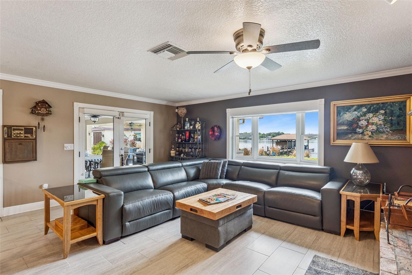 Accessibility Features, Built-in Features, Ceiling Fans(s), Central Vaccum, Crown Molding, Eat-in Kitchen, Kitchen/Family Room Combo, Living Room/Dining Room Combo, Open Floorplan, Primary Bedroom Main Floor, Solid Surface Counters, Solid Wood Cabinets, Split Bedroom, Thermostat, Walk-In Closet(s), Wet Bar, Window Treatments