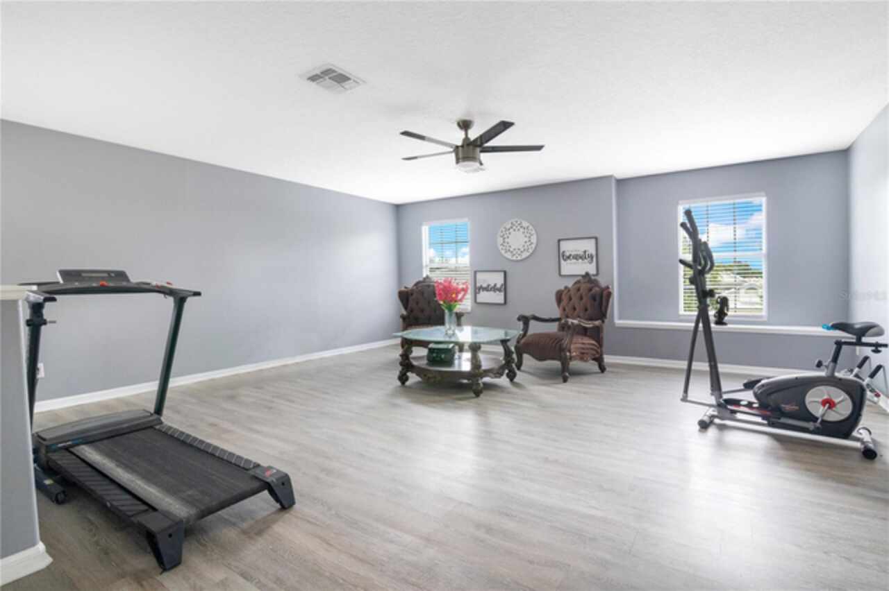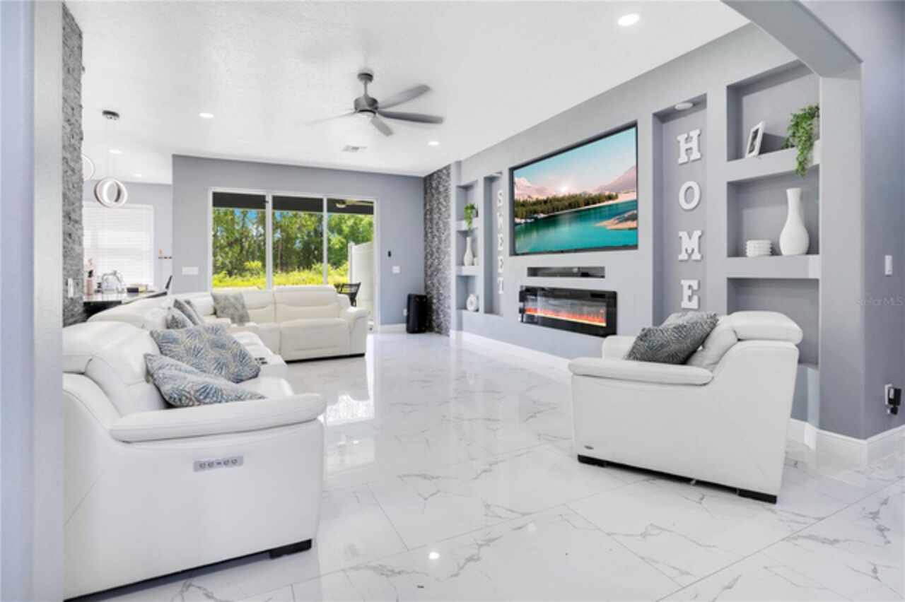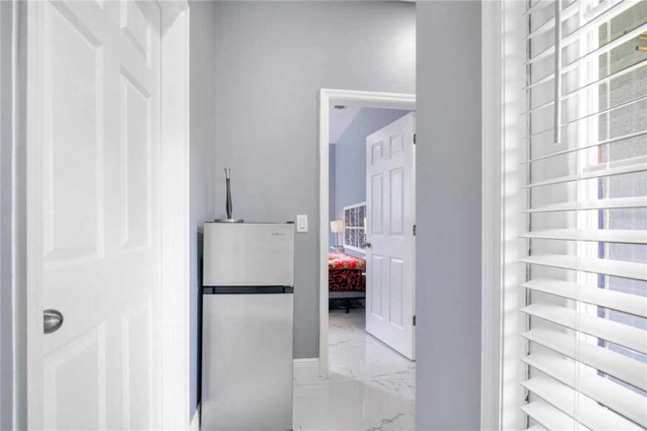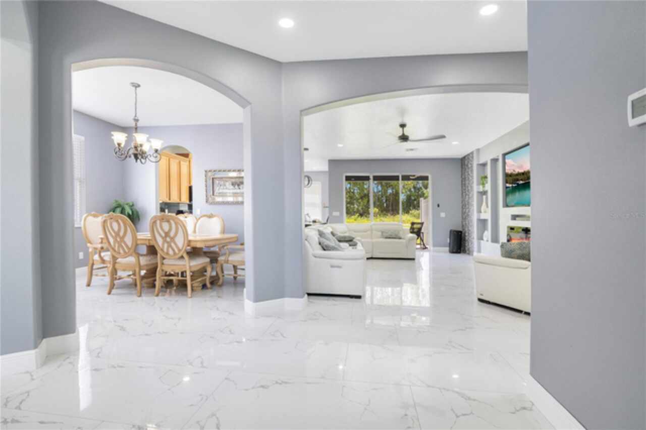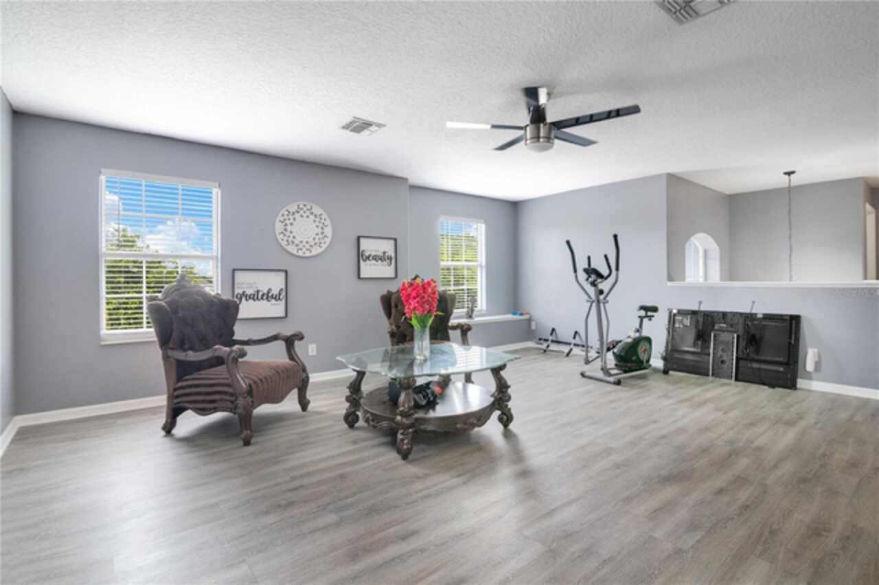 Spacious 5-bed, 4-bath home in Tivoli Woods with over 3, 400 sqft of living space! Enjoy peace of mind with a new roof (Sept 2023) and new AC (Jan 2024). The home features a freshly painted exterior, solar panels for energy savings, and a large open layout with modern upgrades throughout. The kitchen offers granite counters, a sleek island, and tons of cabinet space. Downstairs includes bright tile floors, built-in shelving, a cozy electric fireplace, and an independent bedroom with a private entrance—perfect for a rental, guest room, or mother-in-law suite. Upstairs you'll find roomy bedrooms and a huge primary suite with a spa-style bath. Outside, relax in the side fenced backyard with no rear neighbors, a patio, and a beautiful long trail ideal for walking or running. Great location near MCO, schools, shops, and the parks. Move-in ready!