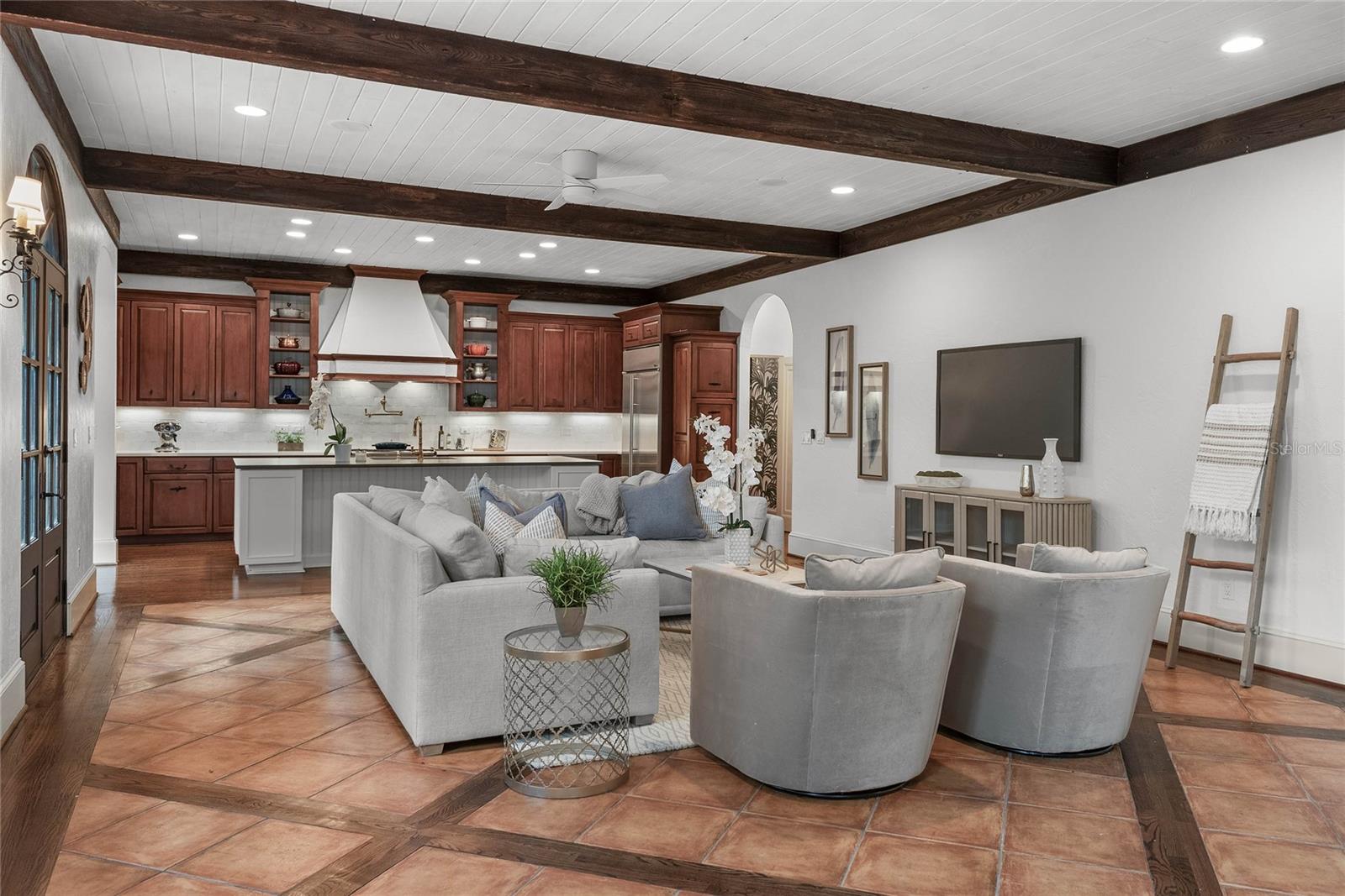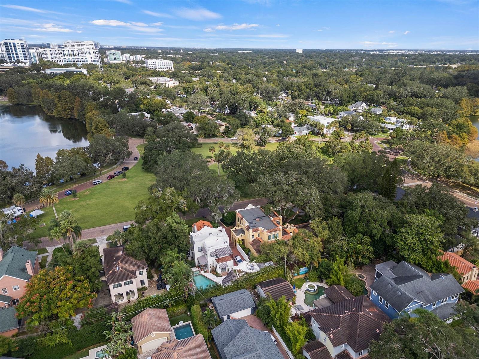 Under contract-accepting backup offers. Stunning completely remodeled, historic Mediterranean home and guest house in the heart of Downtown Orlando’s desirable Lake Cherokee neighborhood! This unique luxury residence, built in 1925 and meticulously updated, spans 4, 722 SF and is surrounded by majestic live oaks, offering a perfect blend of timeless craftsmanship and modern elegance. The foyer opens to the formal living room with a fireplace. The living room flows into a separate formal dining room with a fireplace both with original hardwood floors and high ceiling. The sunroom and large open space kitchen, casual dining, and family room have handcrafted tile flooring with hardwood inlay. The kitchen/family room has cypress beams, custom arched window, and Palladian-style French doors that flood the space with natural light and open to a brick terrace. The terrace is beautifully landscaped with an Old Florida array of plants and trees. The gourmet chef's kitchen is a culinary dream, featuring new quartz countertops, Zellige backsplash tiles, distressed walnut-stained cabinets, and high-end stainless steel appliances, including a Subzero wine refrigerator, Dacor gas cooktop and oven Bosch dishwasher and Sharp under-counter microwave. There is also a walk-in pantry. The custom-made stove hood with crown molding is the elegant focal point of the kitchen. The powder room has British wallpaper reminiscent of the famous palms décor in the Beverly Hills Hotel and The Colony in Palm Beach with a custom vanity, granite, and sink. This home has a floor plan that is perfect for entertaining on a large or intimate scale. The main house includes three bedrooms and two and a half bathrooms. There is a fully detached charming guest house- full bathroom, and kitchenette. Enjoy modern conveniences with an elevator, electrical systems 2023, and multiple water heaters. New Carrier AC (handler and condenser) first floor 2025. New commercial-grade AC capacitor 2025. Ducts replaced 2020. Roof installed in 2020, Office/ bonus room roof replaced 2025. Guest house roof coating 2025. Three new water heaters and Pex pipes installed in the basement 2023. Exterior of the home re-painted 2024. Epoxy garage floors, and custom-built cabinets in the primary suite. There is a separate laundry room on the second floor. The second-story bedrooms and the large office have lovely views overlooking Cherokee Park. Most interiors have been freshly repainted, and custom shutters enhance the primary suite's appeal. The primary bath has dual vanities with new counters and fixtures. Three garages and ample parking. A screened breezeway from the garage to the kitchen/family room provides protection from the elements. A lovingly maintained home. Perfectly situated between Lake Cherokee and Lake Davis, and just across from Cherokee Park, this home is ideally located for morning walks or evening strolls around the lakes. Experience unparalleled living in one of Orlando’s most sought-after neighborhoods, where every detail has been carefully selected and quality crafted for the ultimate luxury lifestyle! Walk to Dr. Phillips Performing Arts Center, Thornton Park restaurants and shopping, and close to all major roads.