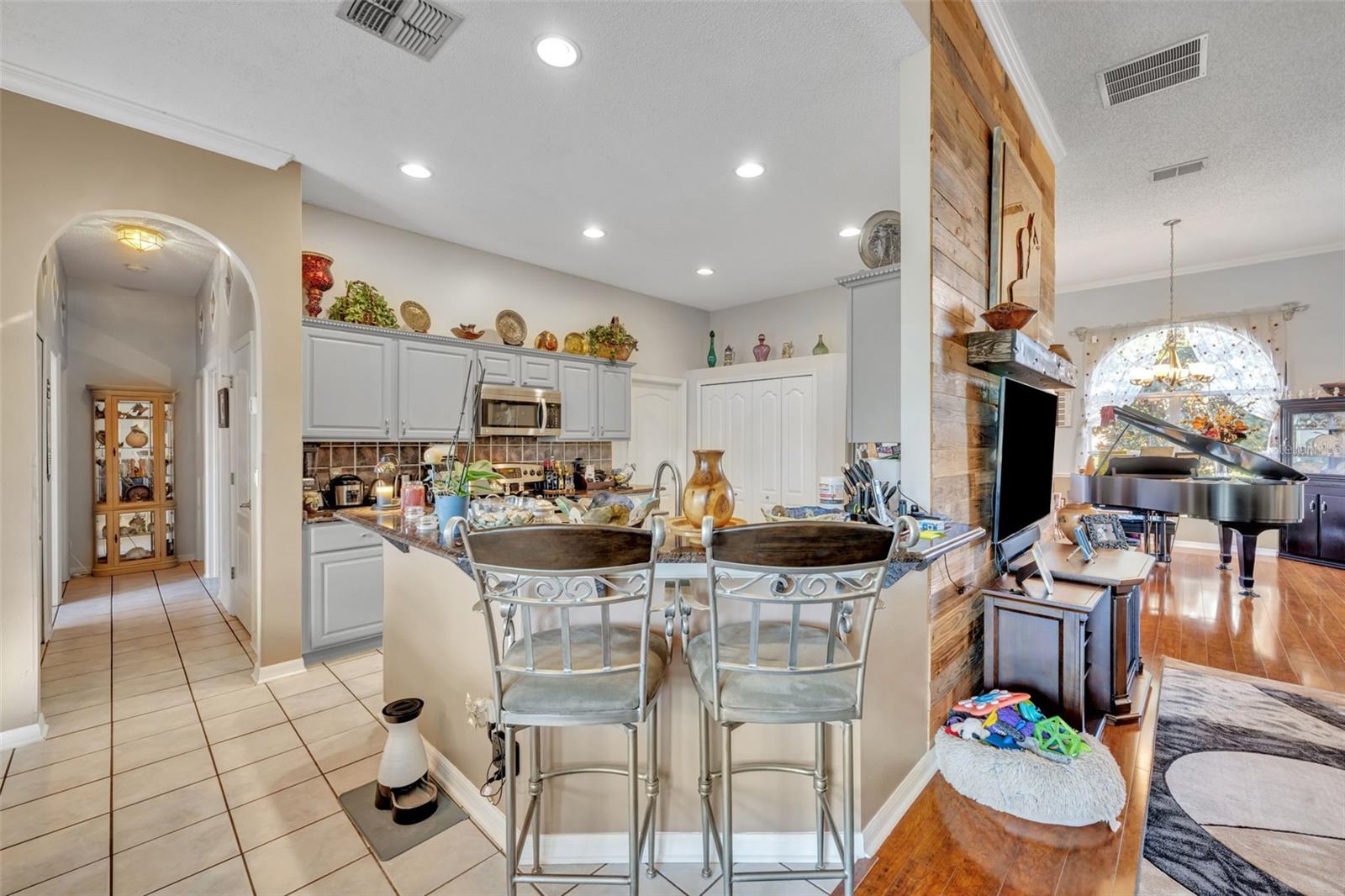 Located in the well-desired community of Waterford Lakes, this beautiful 5 bedrooms, 4 bathrooms home offers the perfect mix of comfort, space, convenience, and charisma. From the front door, you will discover a bright, open floor plan with high ceilings, plenty of natural light and you will have the perfect lake view. The spacious kitchen has quartz countertops, stainless steel appliances, and perfect for family meals or entertaining guests with two separate dining areas. Relax in the covered and climatized lanai, which has AC and Heat, and enjoy your afternoon by the pool cooking in your outdoor gas kitchen. Additionally, you have a private fence in backyard with mature landscaping. Ideal for gatherings or peaceful evenings at home. You also get a bonus room (2nd floor) accessible via two access points either from the primary bedroom or the pool area, this space could be used as an office, a bedroom, or as you desire. Other home features include new roof (2025) main HVAC system (2015), and 2nd AC (2023). Located just minutes from Waterford Lakes Town Center, top-rated schools, UCF, parks, and major highways (408 & 417), everything you need is within reach.