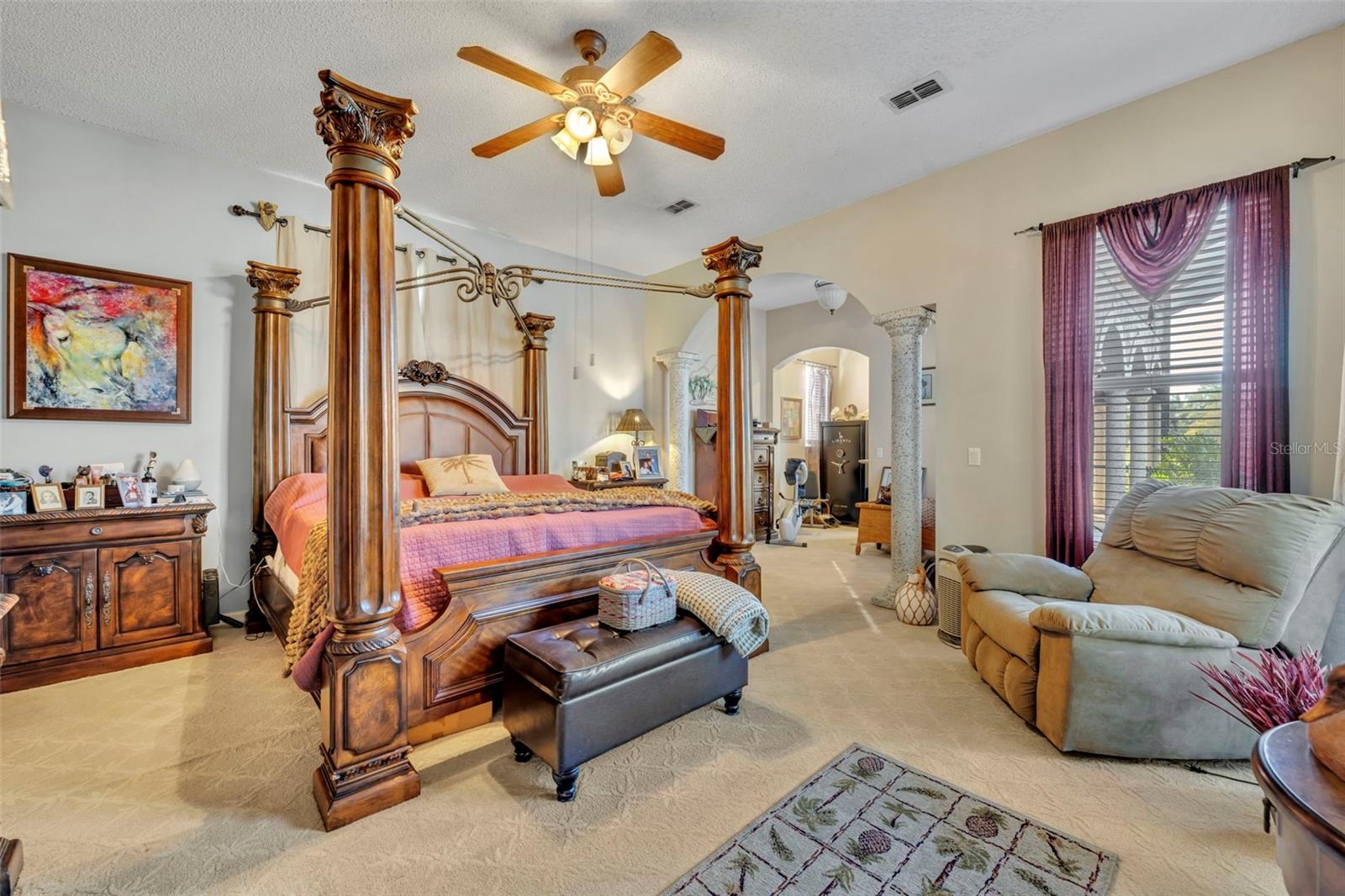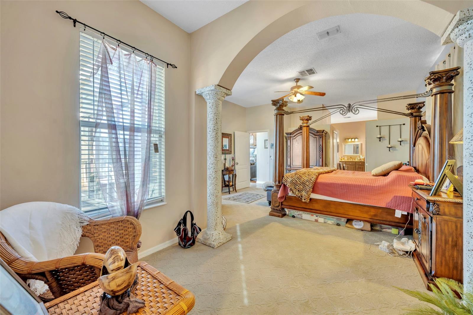 Ceiling Fans(s), Eat-in Kitchen, High Ceilings, Open Floorplan, Primary Bedroom Main Floor, Solid Surface Counters, Thermostat, Walk-In Closet(s)