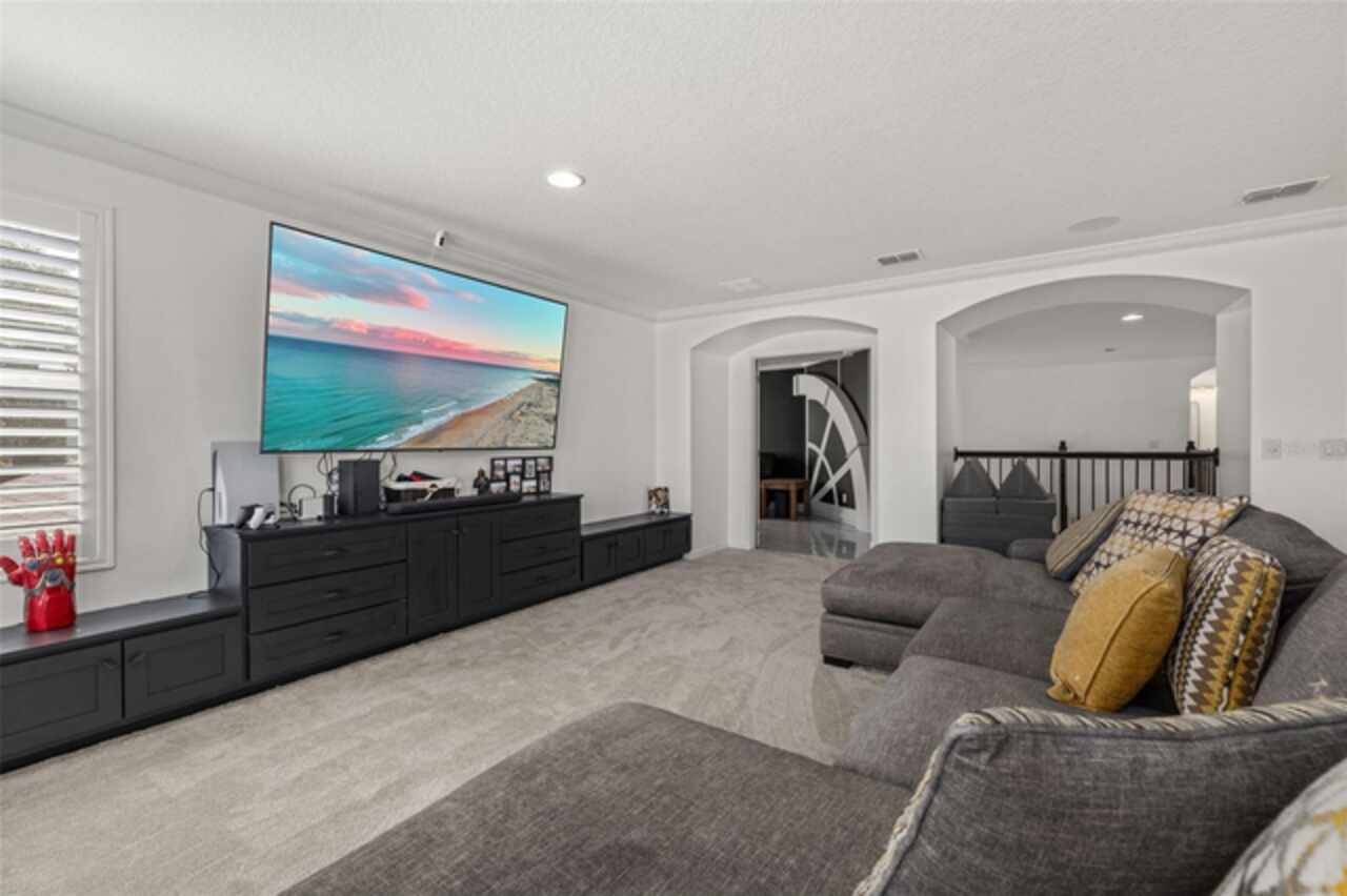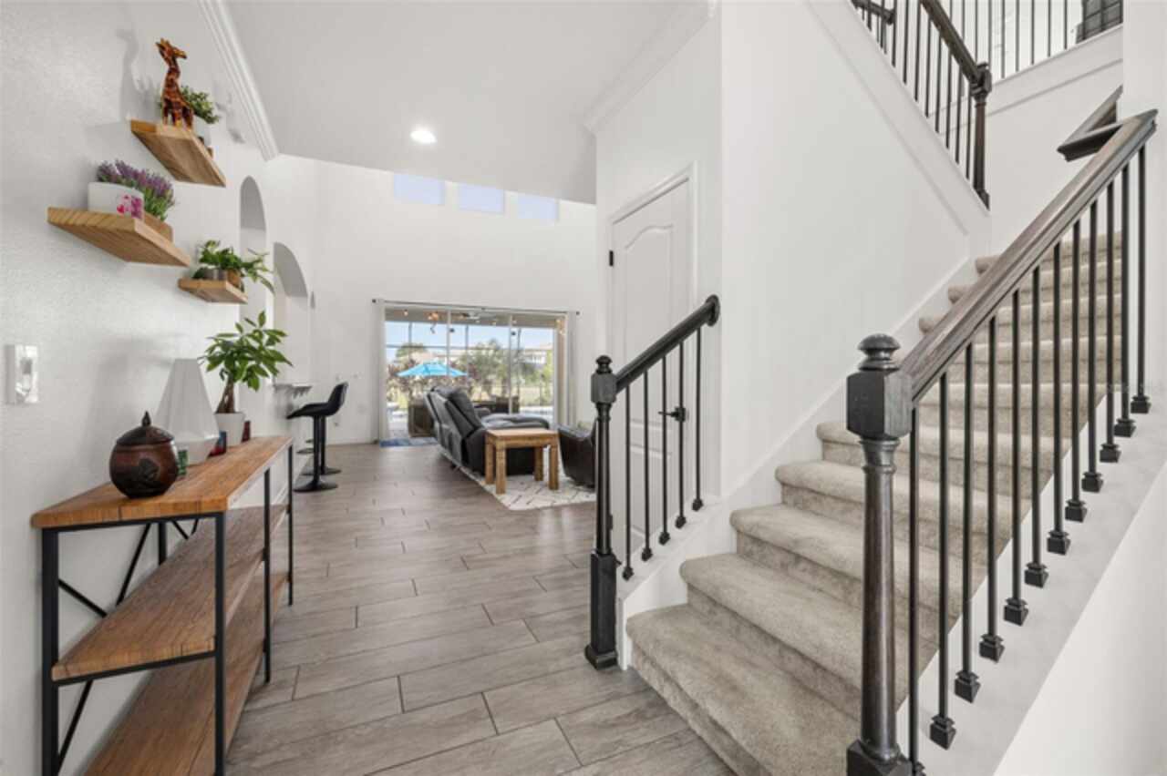 LAST DAYS ON MARKET! GET OFFERS IN! Nestled in the sought-after Overlook II at Hamlin community, this meticulously upgraded 4-bedroom, 3.5-bathroom Taylor Morrison home offers luxurious living space. Built in 2015, it has been thoughtfully enhanced with high-end finishes and modern conveniences. Step into your private oasis featuring a heated, screened-in pool with a swim-up table, perfect for relaxation and entertaining. The expansive covered lanai is equipped with an outdoor surround sound system, creating an ideal setting for evening gatherings. Enjoy serene sunset views over the meticulously landscaped backyard, offering privacy as it backs to a community retention pond area. The home's orientation and mature landscaping provide unobstructed views of the western sky, allowing you to unwind while watching breathtaking sunsets from the comfort of your backyard. Recent renovations & upgrades include brand-new HVAC system ensuring year-round comfort. Freshly rescreened pool enclosure for enhanced outdoor enjoyment. Upgraded epoxy-finished garage with built-in cabinetry for optimal storage. Location is zoned for some of the best schools in Florida. This home seamlessly blends contemporary design with resort-style amenities, creating a sanctuary perfect for both relaxation and entertainment. Its prime location near Lake Hancock, shopping, dining, and entertainment venues like Cinépolis Luxury Cinemas adds to its appeal. With easy access to SR 429 and the Florida Turnpike, downtown Orlando and Disney are just a short drive away.