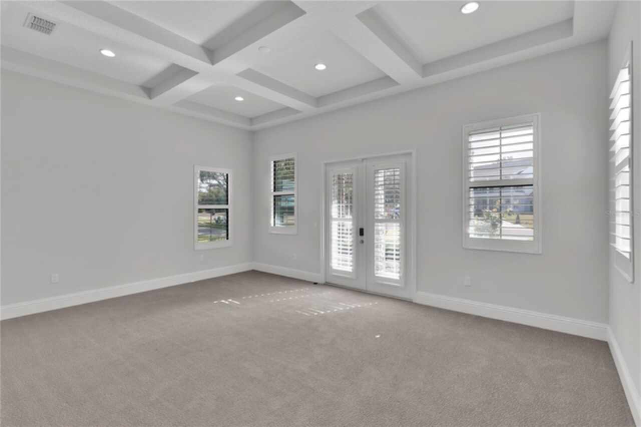 Coffered Ceiling(s), Crown Molding, Dry Bar, Eat-in Kitchen, High Ceilings, Open Floorplan, Solid Surface Counters, Solid Wood Cabinets, Tray Ceiling(s), Walk-In Closet(s), Window Treatments