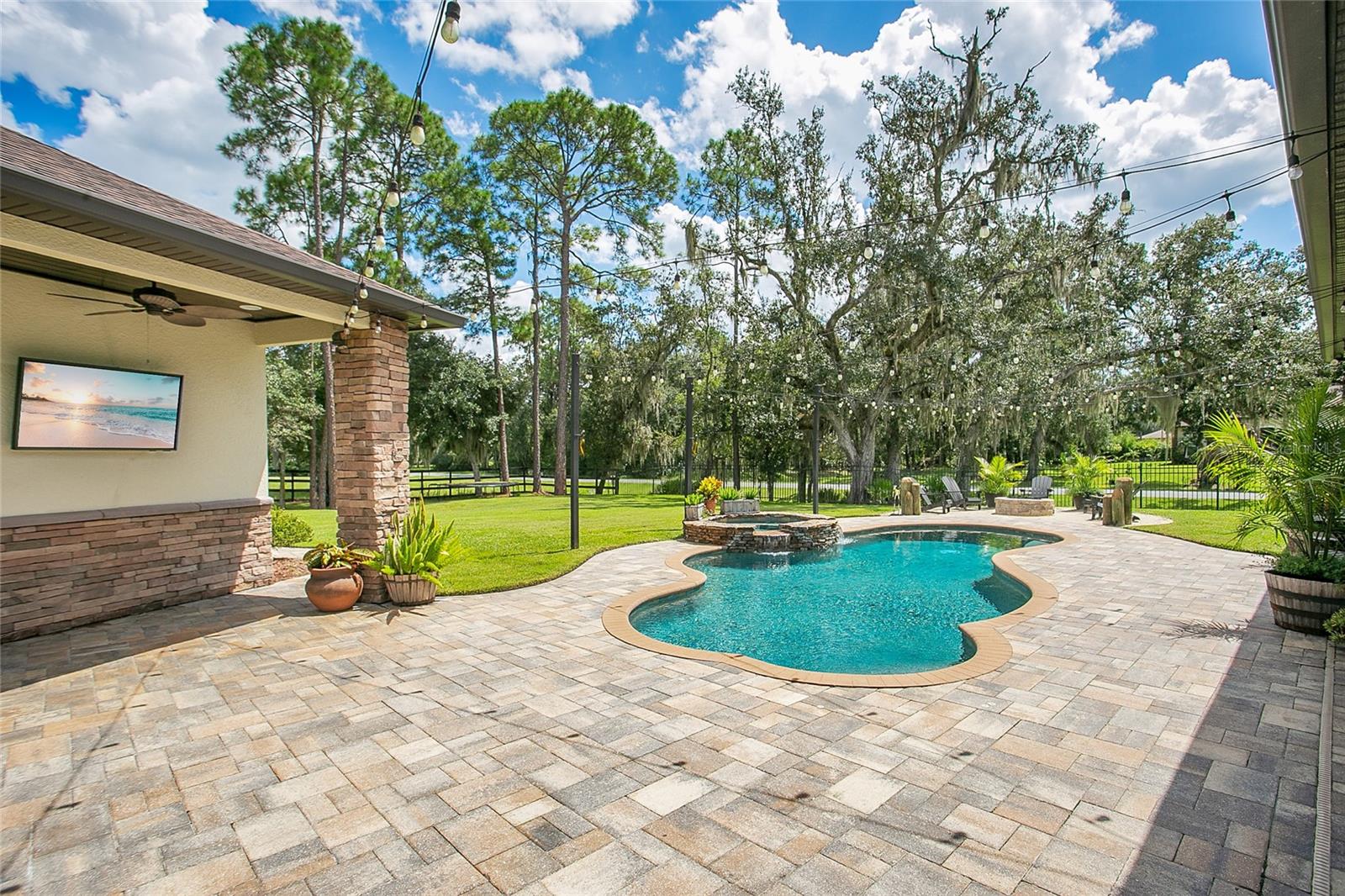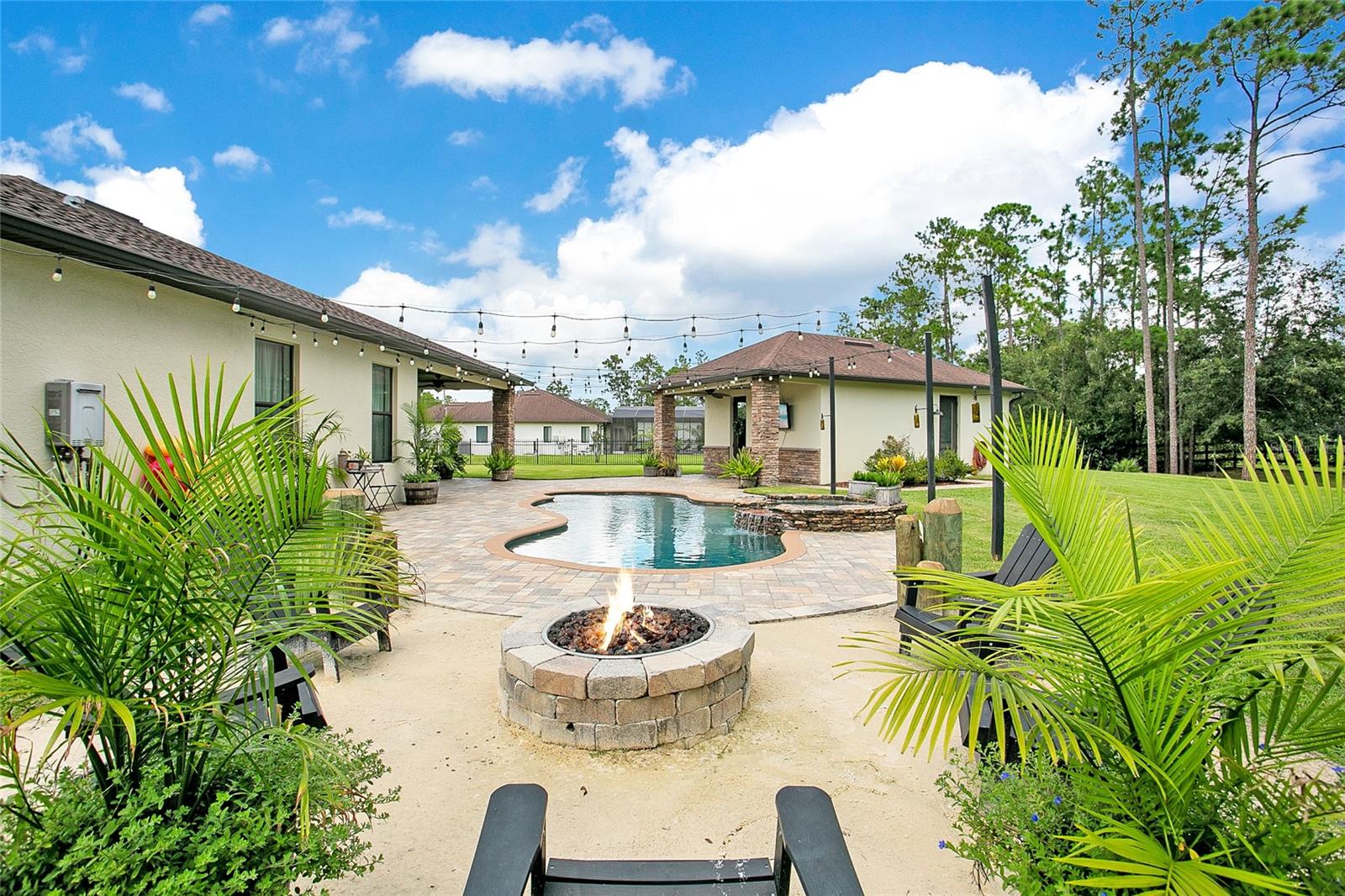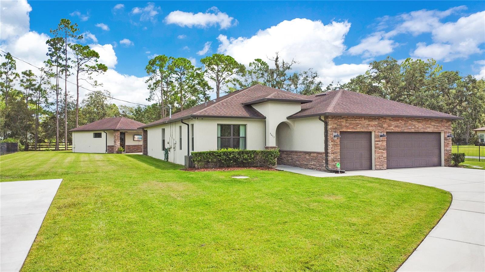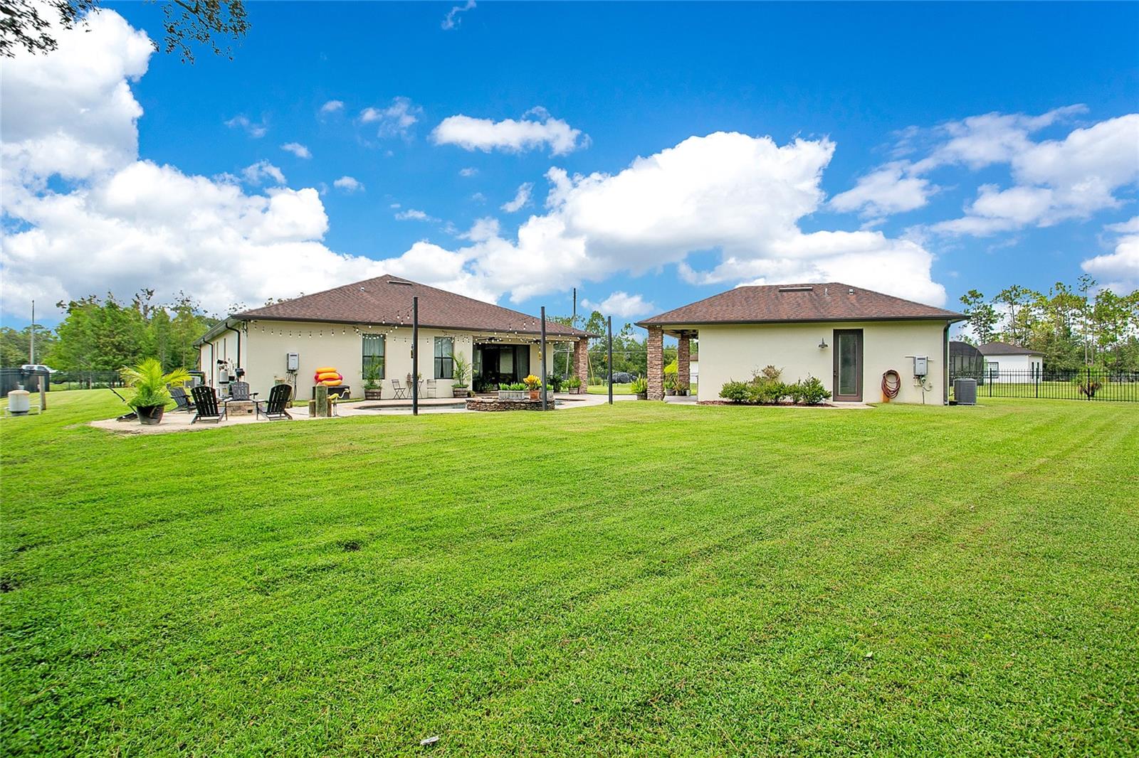 Under contract-accepting backup offers. One acre, gated and set on a corner lot, with space to spread out: a main home that anchors, a guest house that stands apart, a pool built for weekends, and a three-car garage for everything else. The entry sets the tone: high ceilings, natural light pouring in, crown molding, wainscoting, and wide tile floors. It feels open, grounded, intentional. Off to the side, a second primary suite shows up early: coffered ceiling, double French doors, and a bathroom that’s all clean lines. Privacy from the jump. Then the house stretches wide. And the kitchen runs point: a massive island with seating, gas range with three ovens, and a walk-in butler’s pantry that doesn’t quit. Costco runs? Approved. This pantry gets your bulk-buy personality with counter space, storage, and a wine fridge tucked in. Everything spills into the dining and living spaces, where sliders pull the outdoors in. The main primary suite owns the back corner with direct lanai access, a swoon-worthy custom walk-in closet, and private ensuite that feels quietly luxurious. Bedrooms three and four share their own tucked-away wing with a full bath. Even the laundry is oversized, with a sink and storage that make it feel less like a chore. Closet organizers in every room mean the daily chaos actually has a place to go. Step out back and good luck coming in early. Oversized paver patio, pool with spa and stacked-stone spillway, built-in gas firepit poolside, and string lights overhead. It’s the kind of setup where conversations run long, the nights stretch later, and nobody wants to head inside. Covered lanais with ceiling fans and TV-ready walls off both the main home and guest house—it’s built to work year-round, whether it’s game day or a quiet Sunday morning. And the detached guest suite? It’s not an afterthought—it’s its own thing. Private entrance, living room, kitchenette, bedroom, full bath, and its own lanai. Perfect for multigenerational living, long stays, or when you just want extra breathing room. Details keep stacking: three-car garage, oversized laundry, central vacuum system, automatic gate, full perimeter fencing, oversized driveway with parking pad, ready for RV or boat parking. Located in a spot with a rare balance: acreage and privacy when you want it, access when you need it. Lake Nona’s Medical City, OIA, downtown Orlando, and the beaches are all within easy reach. This is living at its best—space, privacy, and a setup that works as hard as it plays.