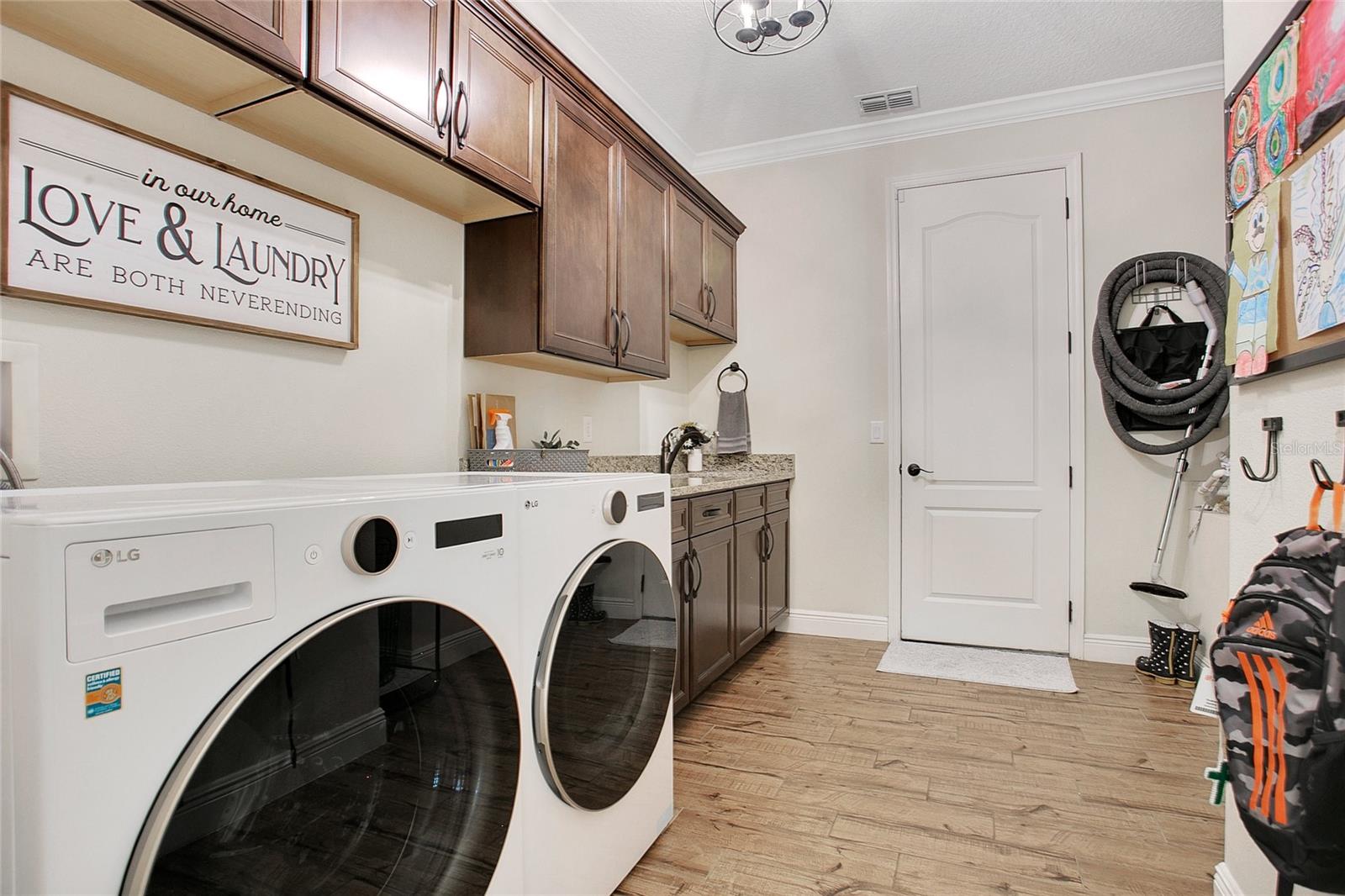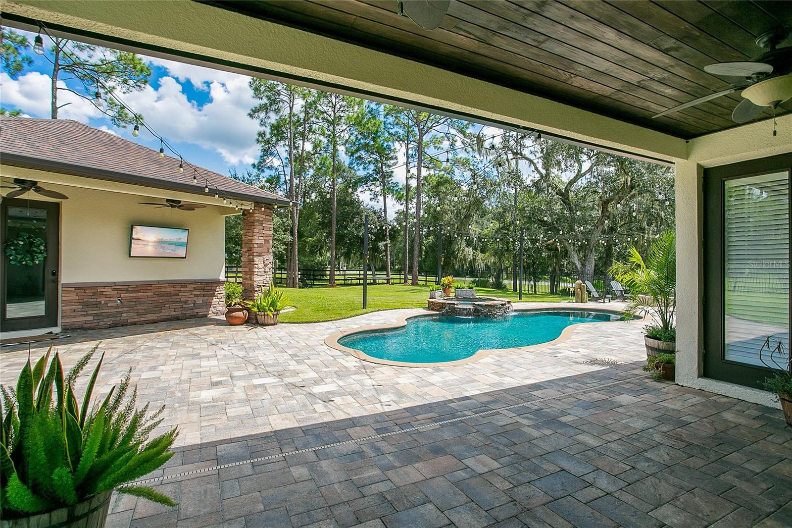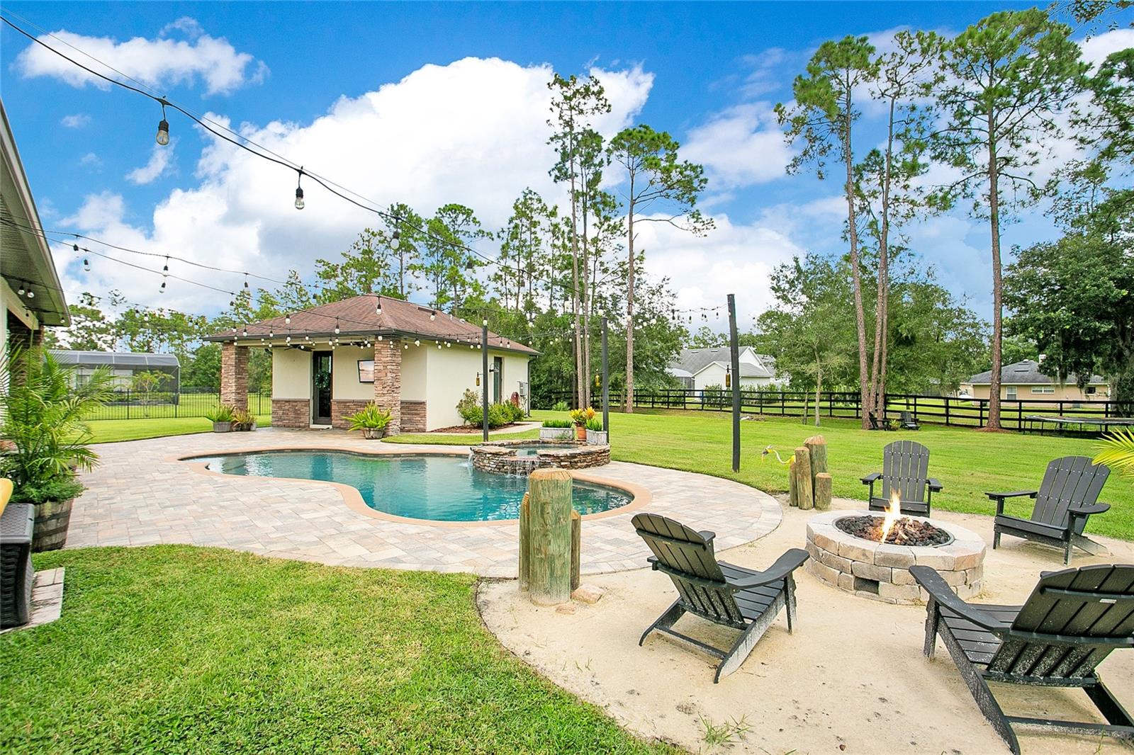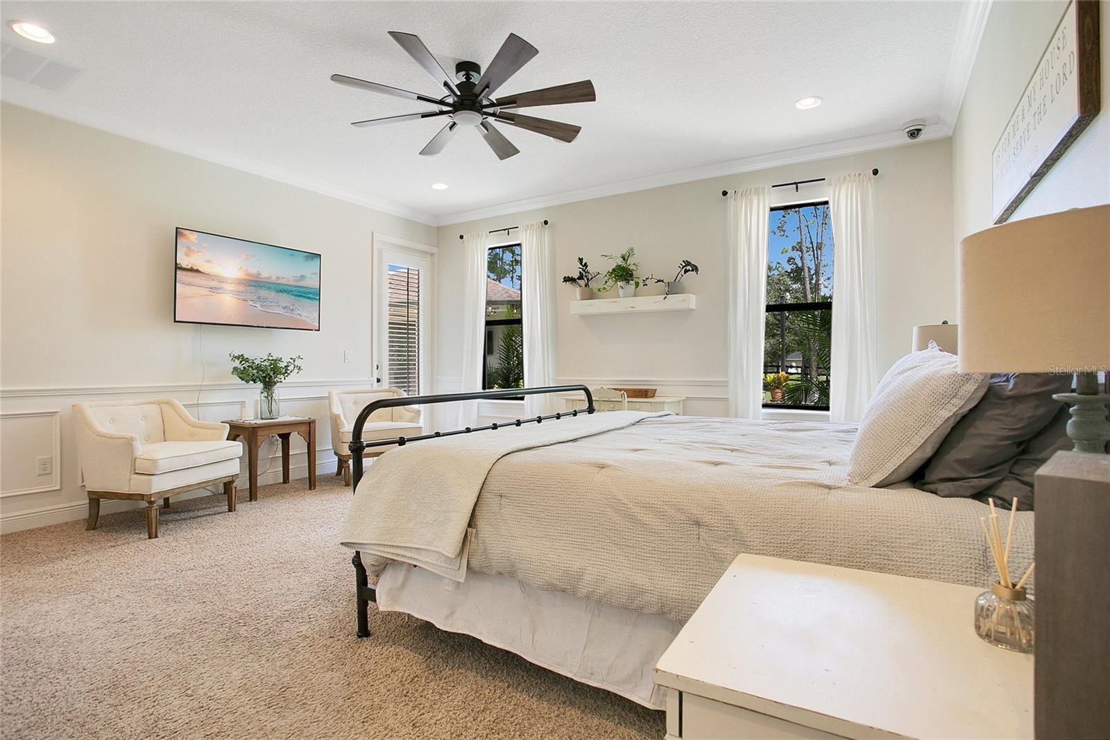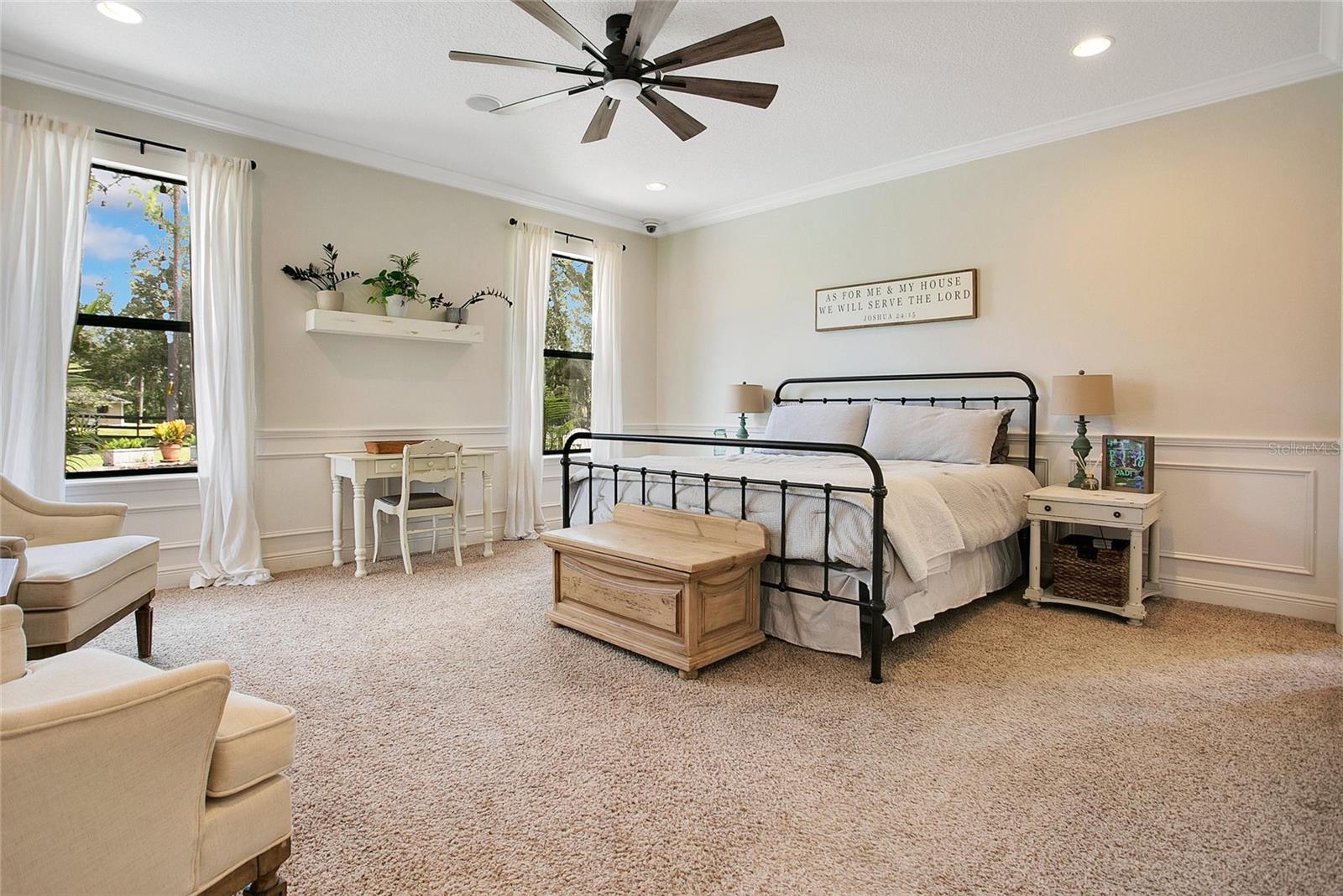 Under contract-accepting backup offers. One acre, gated and set on a corner lot, with space to spread out: a main home that anchors, a guest house that stands apart, a pool built for weekends, and a three-car garage for everything else. The entry sets the tone: high ceilings, natural light pouring in, crown molding, wainscoting, and wide tile floors. It feels open, grounded, intentional. Off to the side, a second primary suite shows up early: coffered ceiling, double French doors, and a bathroom that’s all clean lines. Privacy from the jump. Then the house stretches wide. And the kitchen runs point: a massive island with seating, gas range with three ovens, and a walk-in butler’s pantry that doesn’t quit. Costco runs? Approved. This pantry gets your bulk-buy personality with counter space, storage, and a wine fridge tucked in. Everything spills into the dining and living spaces, where sliders pull the outdoors in. The main primary suite owns the back corner with direct lanai access, a swoon-worthy custom walk-in closet, and private ensuite that feels quietly luxurious. Bedrooms three and four share their own tucked-away wing with a full bath. Even the laundry is oversized, with a sink and storage that make it feel less like a chore. Closet organizers in every room mean the daily chaos actually has a place to go. Step out back and good luck coming in early. Oversized paver patio, pool with spa and stacked-stone spillway, built-in gas firepit poolside, and string lights overhead. It’s the kind of setup where conversations run long, the nights stretch later, and nobody wants to head inside. Covered lanais with ceiling fans and TV-ready walls off both the main home and guest house—it’s built to work year-round, whether it’s game day or a quiet Sunday morning. And the detached guest suite? It’s not an afterthought—it’s its own thing. Private entrance, living room, kitchenette, bedroom, full bath, and its own lanai. Perfect for multigenerational living, long stays, or when you just want extra breathing room. Details keep stacking: three-car garage, oversized laundry, central vacuum system, automatic gate, full perimeter fencing, oversized driveway with parking pad, ready for RV or boat parking. Located in a spot with a rare balance: acreage and privacy when you want it, access when you need it. Lake Nona’s Medical City, OIA, downtown Orlando, and the beaches are all within easy reach. This is living at its best—space, privacy, and a setup that works as hard as it plays.