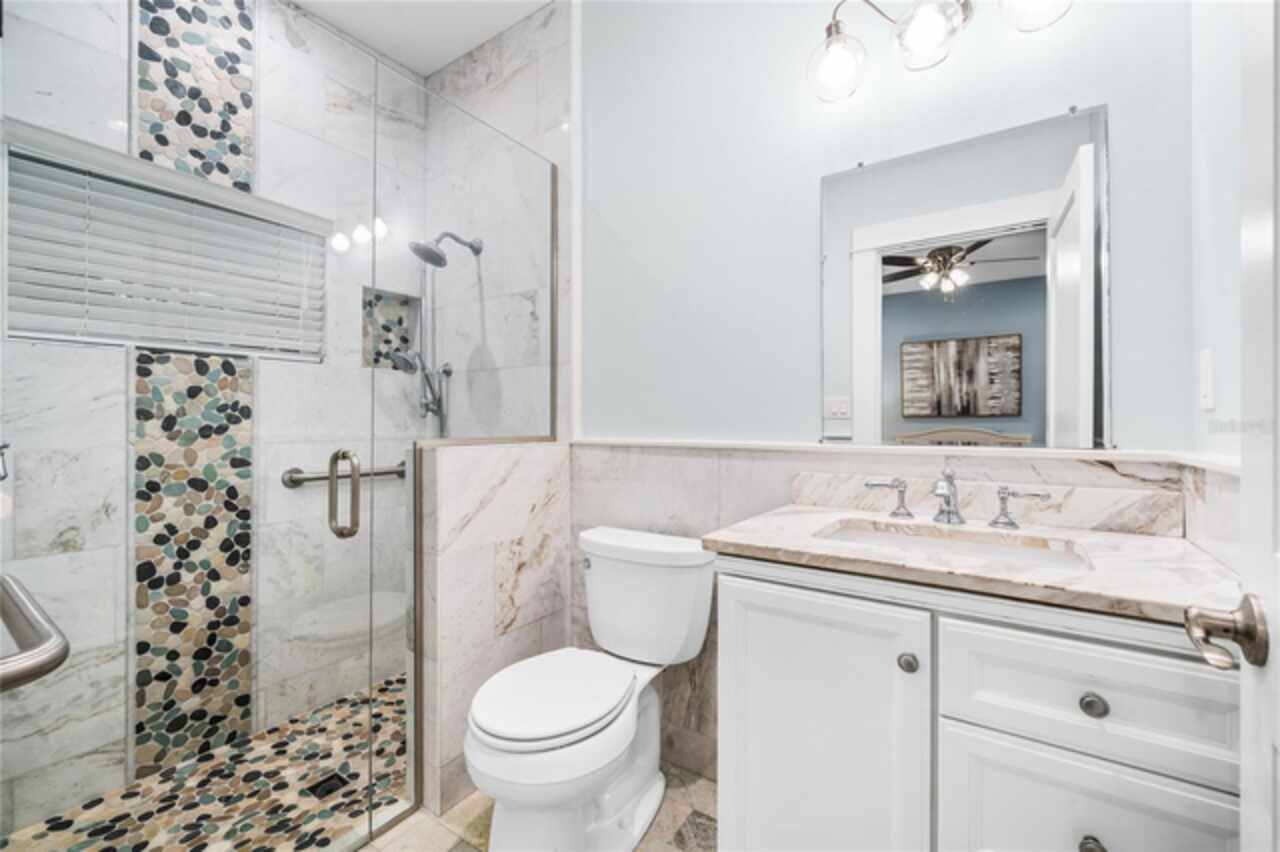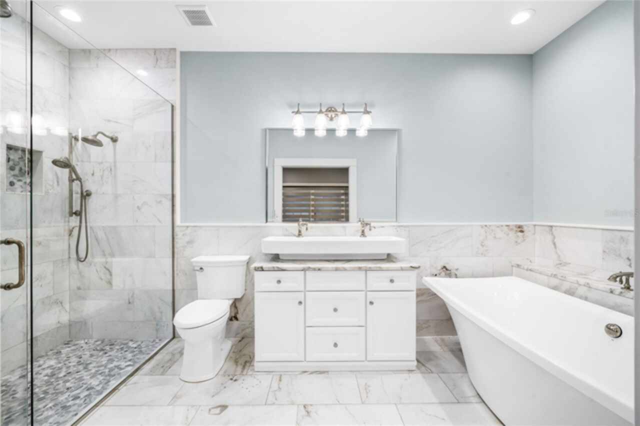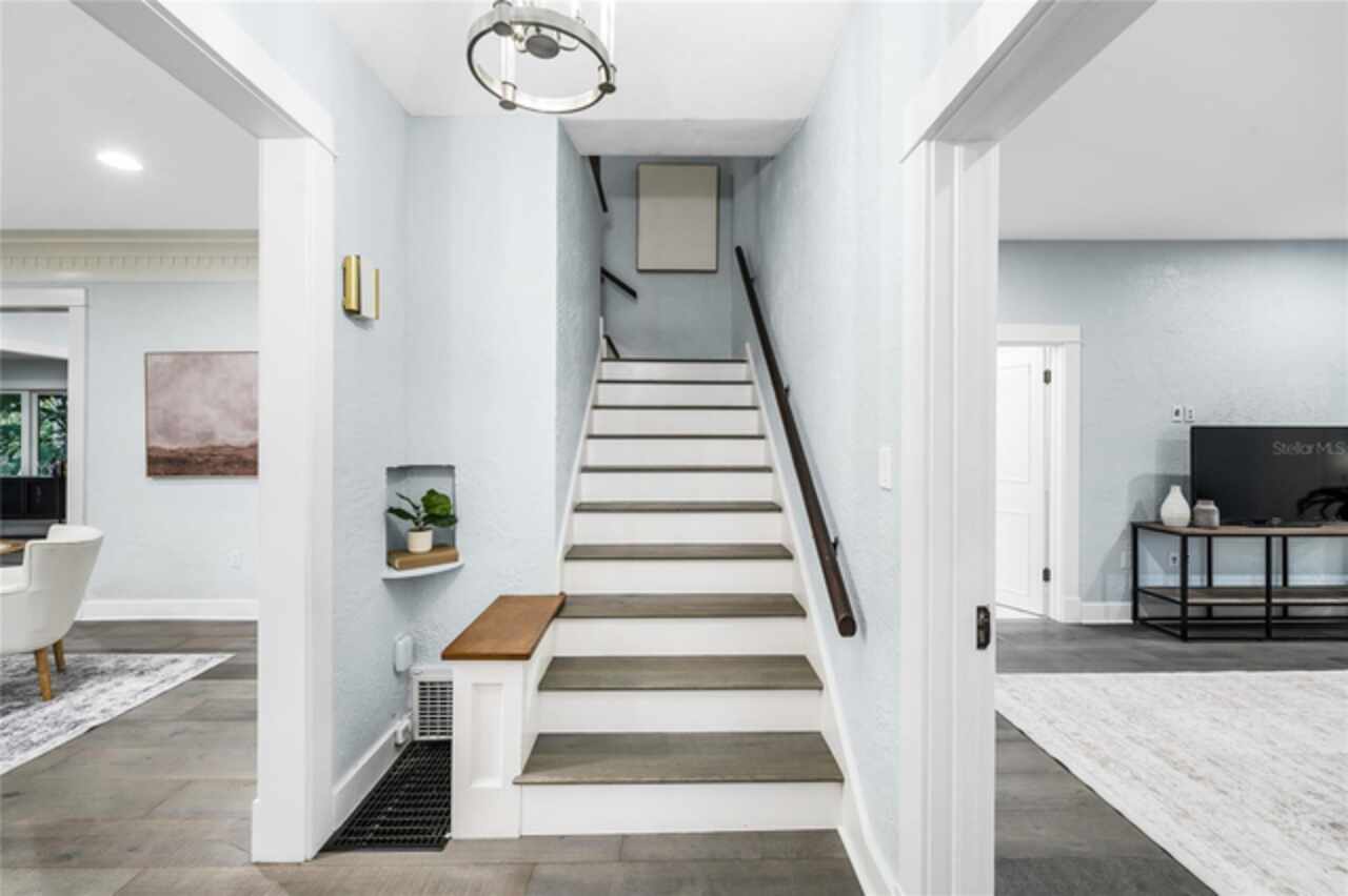 WELCOME TO THE CENTENNIAL HOUSE. Constructed in 1925, this magnificent 100-year-old estate received an authentic renovation reflecting the current conveniences of today’s modern living. The charming exterior detail inspires the imagination of what lies within the front entry door. A renovation / expansion exceeding $500, 000 was completed by the home’s current owner, demonstrating the stewardship this home has received during its existence. At the heart of the home, a re-designed and updated kitchen includes a gas WOLF RANGE and SUB-ZERO refrigerator and wine fridge. Stately navy cabinetry and smooth grey granite wrap an apron-front stainless-steel sink. Counter-to-ceiling herringbone tile backsplash, overhead stainless hood and clear glass-front cabinetry inserts will inspire you in this showcase kitchen environment. Engineered wide-plank hardwood flooring extends throughout the entire home. Marble hearth anchors the brick-wrapped, wood burning fireplace beneath exquisite dental crown molding in the formal living room. First-floor, oversized primary bedroom, privately situated in the rear of the home, offers direct access to the side deck via an exterior door. Primary bathroom remodel includes a free-standing deep soaking tub, seamless glass shower including an overhead rain shower, all wrapped in timeless tile. An additional first-floor bedroom offers an attached en suite bathroom and two closets. Perfectly situated as a nursery, office, or generational suite. Westerly facing window-wrapped Solarium offers magnificent views of Park Lake, directly across the brick paved streets within the neighborhood. Upstairs living area includes three sleeping quarters and two fully renovated baths, both of which are en suite to a bedroom. Oversized car parking area has a two-car detached garage and outside paver courtyard for your entire car collection. Overhead café lighting creates an enchanting evening ambiance. THE CENTENNIAL HOUSE is mere blocks from top-rated Lake Highland Preparatory School (PK-12)! FOUR-POINT FEATURES: Air Conditioning (2025 / 2017 / 2015) – Hot Water Heaters (2010) -- Roof (2017) -- Replumbing (2017) – Electrical Panels (Square D / Siemens).