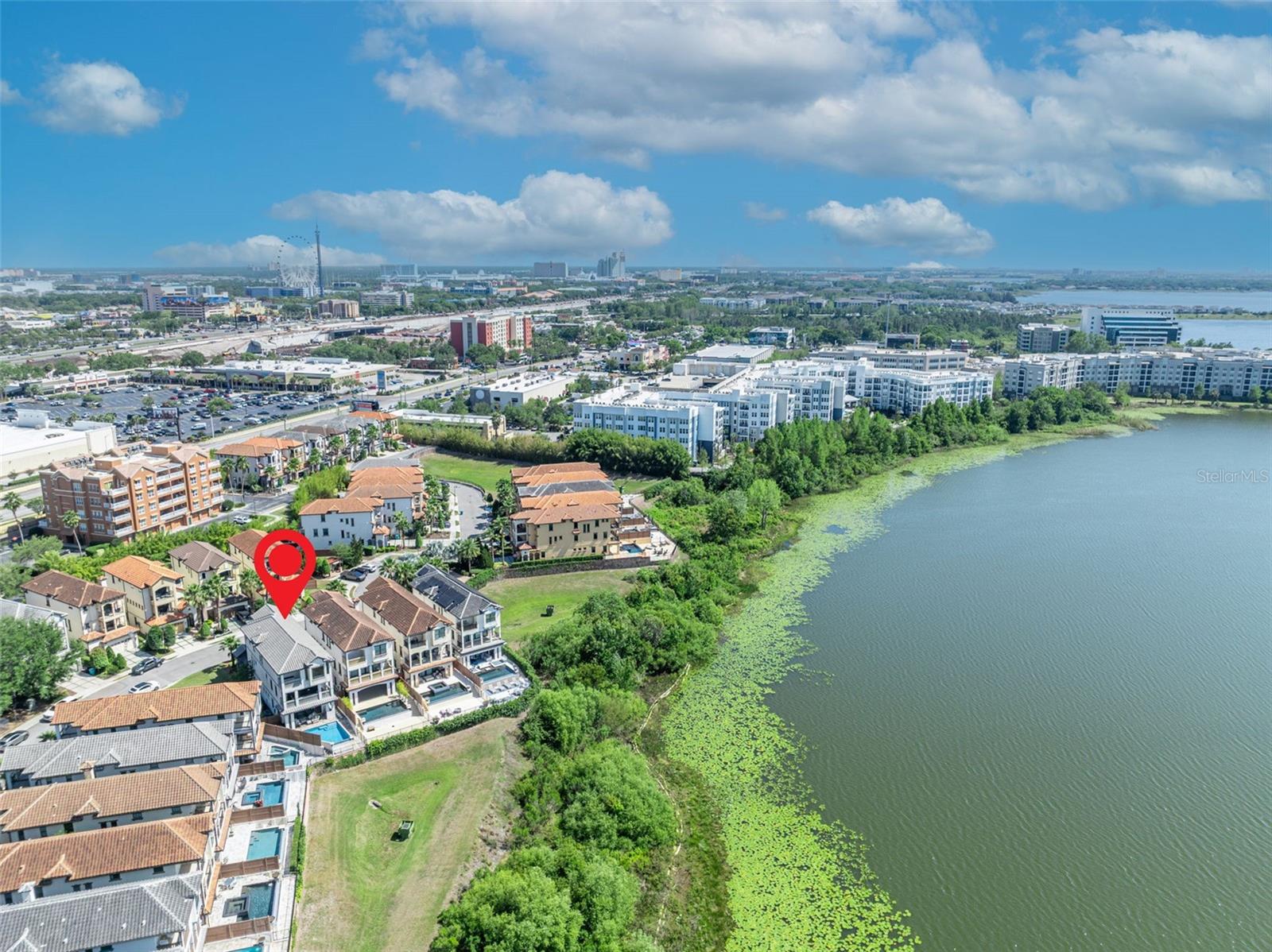 Discover this dreamy LAKEFRONT Residence In The Prime Location of DR PHILIP!. "Don’t just buy a house—invest in this former model home with luxury upgrades and custom touches that set you above the rest!" Nested in one of the most sought after gated community Toscana, this luxurious lakefront three-story single family home features 4 EN-SUITE BEDROOMS and 4.5 Bath, each designed with modern aesthetics and functionality in mind. The interior boasts high-end finishes, including porcelain tile and wood flooring throughout. Three floors are connected with a PRIVATE ELEVATOR, providing easy and fun access. First floor features open floor concept with a breathtaking dream kitchen, a formal dining room and an entertainment living room, overlooking the INFINITY SWIMMING POOL and The BIG SAND LAKE. Spend precious time with family and friends with drinks in the cooling pool and outside lounge or watch beautiful sunset and fireworks at night at the pool deck and private balconies, one of the kind experiences. Second floor features an entertainment room with a massive balcony and three bedrooms all with private bathrooms for extra convenience and privacy. Located on the third floor, the spacious master bedroom is the gem in this house, with overside master bathroom and closet. Large window provide abundant neutral lights and amazing view, and the large balcony is perfect for outdoor entertainment and relaxation. With easy access to major highways, residence can enjoy the benefit of top-rated schools, Restaurant Row, the Arnold Palmer golf course, Butler Chain of Lakes, and all of the Disney, Universal and SeaWorld theme parks. Schedule a private tour and make this beautiful home your new residence. Matterport 3D tour are available on Zillow & MLS for virtual tour and provide room measurements.