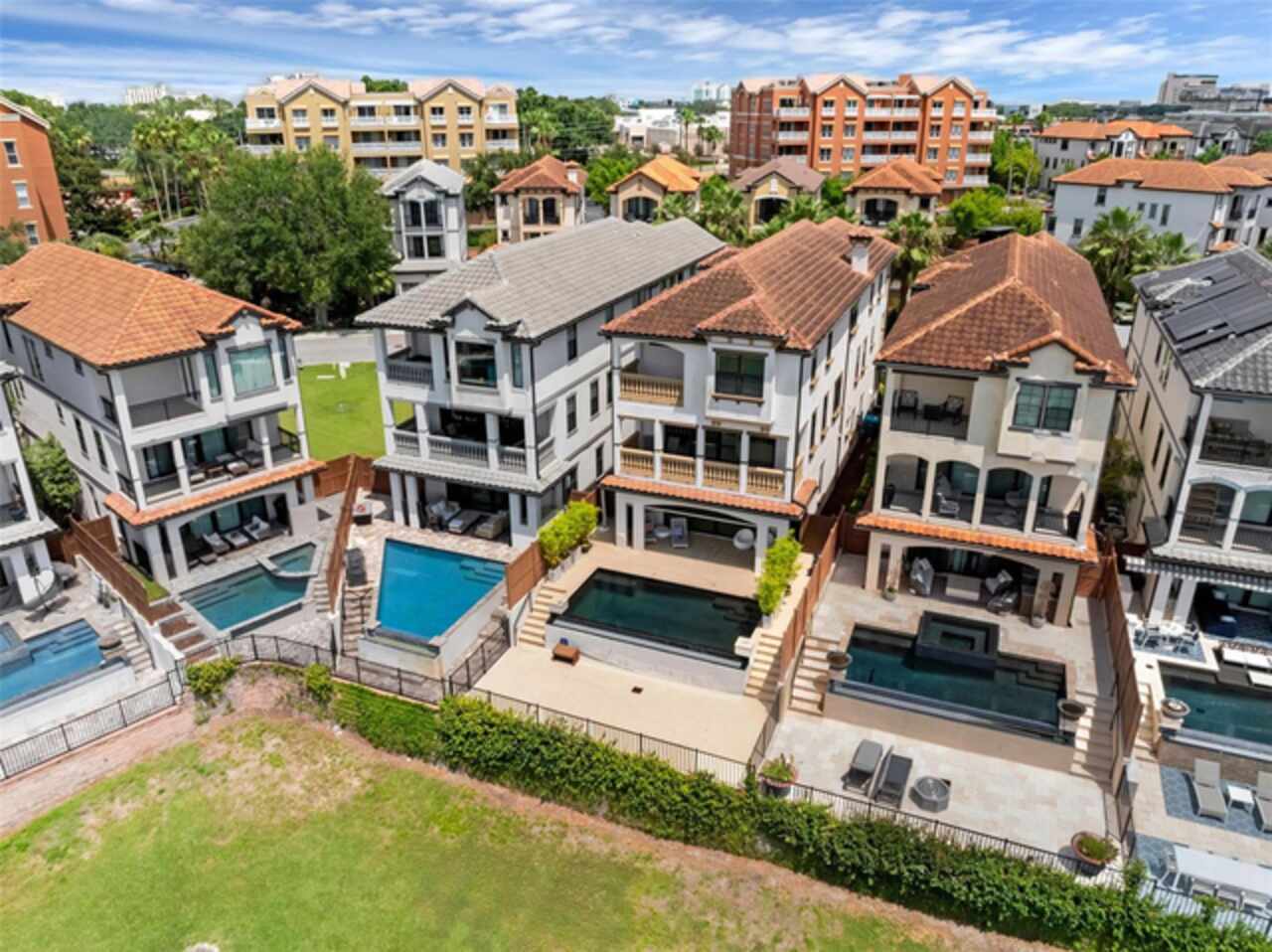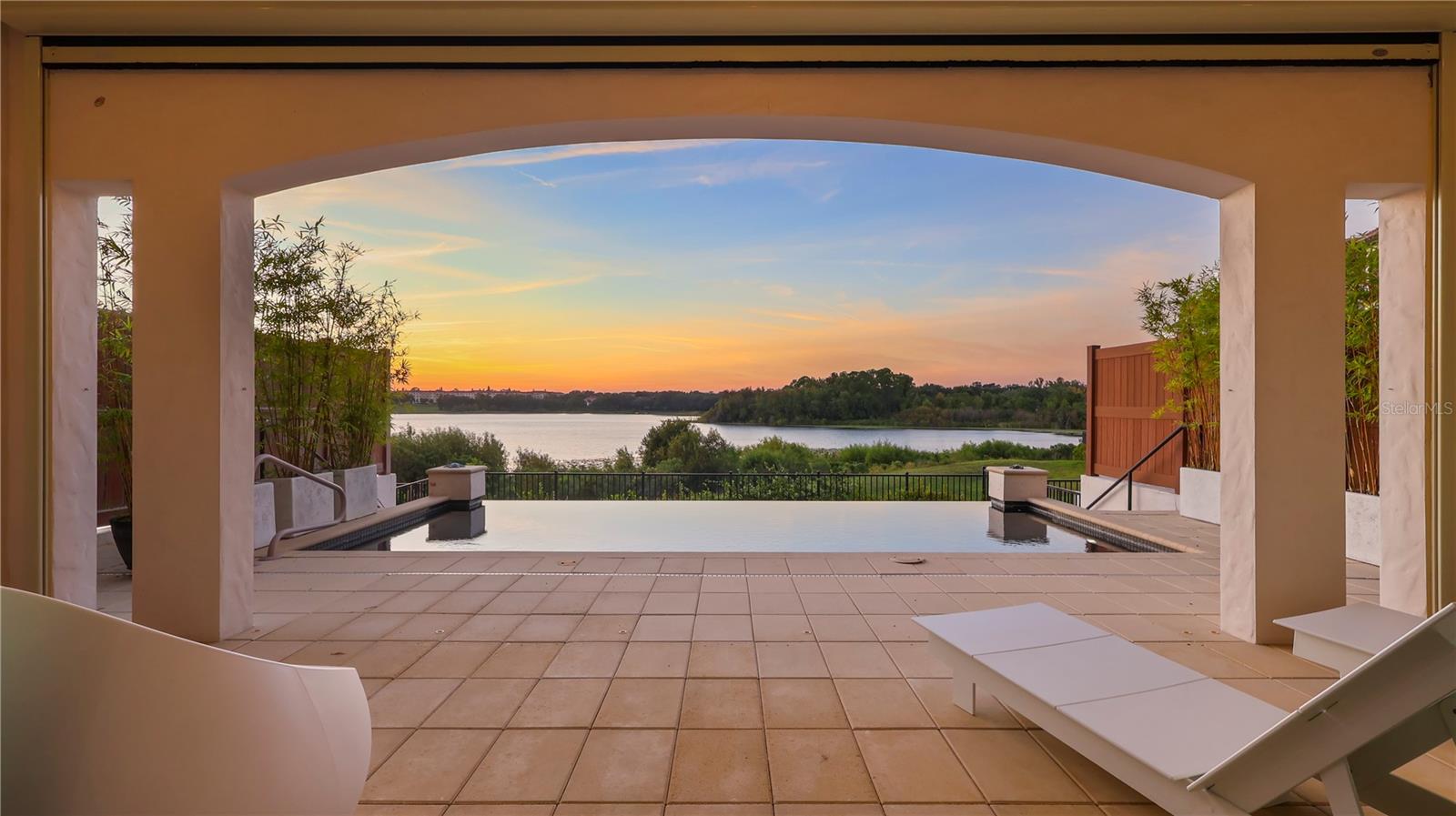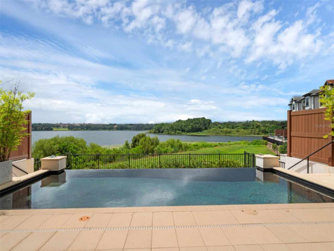 Luxury Lakefront Living in the Heart of Dr. Phillips. Welcome to Lakeside at Toscana, an exclusive gated community nestled along the tranquil shores of Spring Lake. This exceptional three-story lakefront estate offers 6 bedrooms, 6 bathrooms, and panoramic water views from every level. Unwind each evening with a breathtaking sunset, as you take in the peaceful sights and sounds of the wildlife. The dramatic two-story foyer sets the tone with sweeping views of the infinity-edge heated saltwater pool, tiered lanai, and tranquil lake beyond. Both elegant staircases and a private elevator connect all three levels. The gourmet kitchen is a chef’s dream, featuring quartz countertops, a spacious island with breakfast bar, gas range with pot filler, JennAir appliances, custom cabinetry, an eat-in nook, formal dining room, and a walk-in pantry with a second refrigerator. The first floor also offers a spacious great room, guest bedroom, and a full bath. On the second floor, you'll find three generously sized bedrooms, a living area, and a balcony overlooking Spring Lake—perfect for enjoying serene morning views or Disney Fireworks. This level also features a dedicated laundry room for added convenience. The third floor serves as your private retreat, featuring two luxurious primary suites designed for comfort and privacy. Each suite includes a spacious en-suite bathroom with dual vanities, a garden tub, and a separate walk-in shower. One suite enjoys a private balcony with tranquil lake views, while the other overlooks the picturesque neighborhood—perfect for enjoying peaceful mornings or quiet evenings. A second laundry room is also located on this level for added functionality. Thoughtful upgrades throughout the home include lush bamboo landscaping for enhanced privacy, Hunter Douglas electric shades, hurricane-rated doors, smart wiring, and an EV charger in the garage. All of the walk-in closets are custom-built with ample storage. Additional features include three recently serviced A/C units with a transferable service agreement and a removable pool safety fence for added peace of mind. Residents enjoy resort-style amenities including a community pool, fitness center, and maintenance-free landscaping. Ideally located near I-4, Restaurant Row, Universal, SeaWorld, and Disney, this home delivers the perfect blend of luxury, location, and lifestyle. Schedule your private tour today—this extraordinary lakefront home won’t last long!