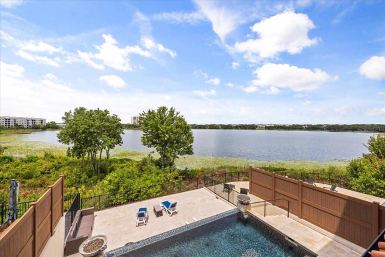 Welcome to the prestigious Toscana community, a sought-after gated enclave in the heart of Orlando. This luxurious three-story single-family home boasts four bedrooms, 4.5 baths and a private elevator for easy access to all levels. Designed with charm, the residence offers breathtaking infinity pool with ideal views of Spring Lake from multiple balconies, facing Disney fireworks every night at 9 p.m. Residents of Toscana enjoy upscale amenities, including a resort-style pool in a beautifully landscaped setting. The home provides a blend of comfort and convenience, with expansive living spaces, and an open-concept design for relaxation and entertainment. Just minutes from Restaurant Row, Universal Studios and Icon Park, Toscana provides easy access to world-class dining, entertainment and shopping. Its central location near major highways makes commuting effortless while offering a serene retreat from the city's hustle and bustle.