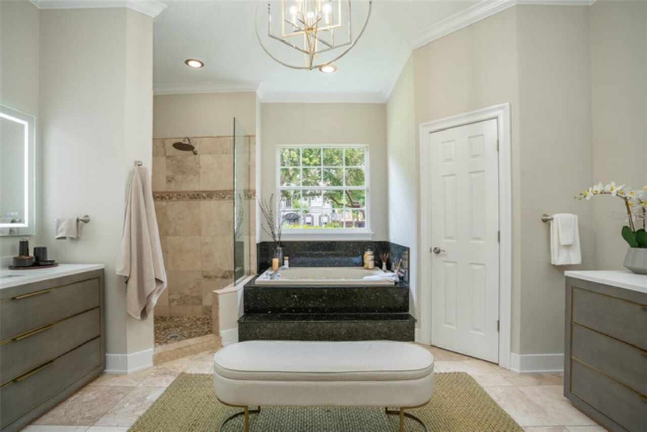 Experience Refined Luxury in the Heart of Dr. Phillips Welcome to a stunningly reimagined estate in the highly sought-after Palm Lake gated community—an exclusive enclave of just 39 luxury homes in one of Orlando’s most prestigious neighborhoods. This move-in ready, 5-bedroom, 5.5-bathroom estate with a spacious upstairs bonus room offers over-the-top elegance and comfort. From the moment you arrive, you’re greeted by immaculate curb appeal—lush, manicured landscaping, a stately paver driveway, and an inviting façade that sets the tone for what lies within. Step inside the grand foyer and be instantly impressed by luxury flooring, a designer chandelier, and seamless sightlines that draw you into the heart of the home. The formal living room features uninterrupted views of the resort-style pool, while the elegant dining room and private home office are adorned with custom lighting and refined finishes—ideal for entertaining or working in style. The chef-inspired kitchen is the ultimate culinary space, boasting premium KitchenAid appliances, including a double convection oven, induction cooktop, and built-in ice maker. The adjoining family room is bathed in natural light, thanks to soaring transom windows that create a bright and welcoming atmosphere. Retreat to the first-floor primary suite, a peaceful sanctuary featuring dual walk-in closets and a luxurious, spa-like bathroom with a soaking tub, oversized walk-in shower, dual vanities, and a show-stopping chandelier. Upstairs, a cozy loft leads to a huge bonus room, pre-wired for surround sound and projector—perfect for your future home theater or game room. Four additional bedrooms, each with access to beautifully appointed bathrooms, provide plenty of space for family or guests. Outside, the screen-enclosed pool area is your private resort. Enjoy the cascading waterfall, elegant stonework, and multiple lounge areas designed for relaxing or hosting unforgettable gatherings. Modern smart features—including a Nest thermostat, Cat-5-E wiring, strategically placed access points, Ring video doorbell, security camera system, and a new 2020 pool pump—ensure this home is as functional as it is beautiful. Thoughtfully upgraded by the original owners, this residence seamlessly blends timeless elegance with Calabasas-inspired luxury, offering a unique lifestyle opportunity in one of Orlando’s most exclusive zip codes. Don’t miss your chance to own this rare gem—where every detail has been curated for those who demand the very best.