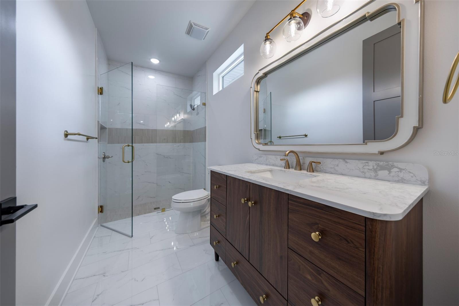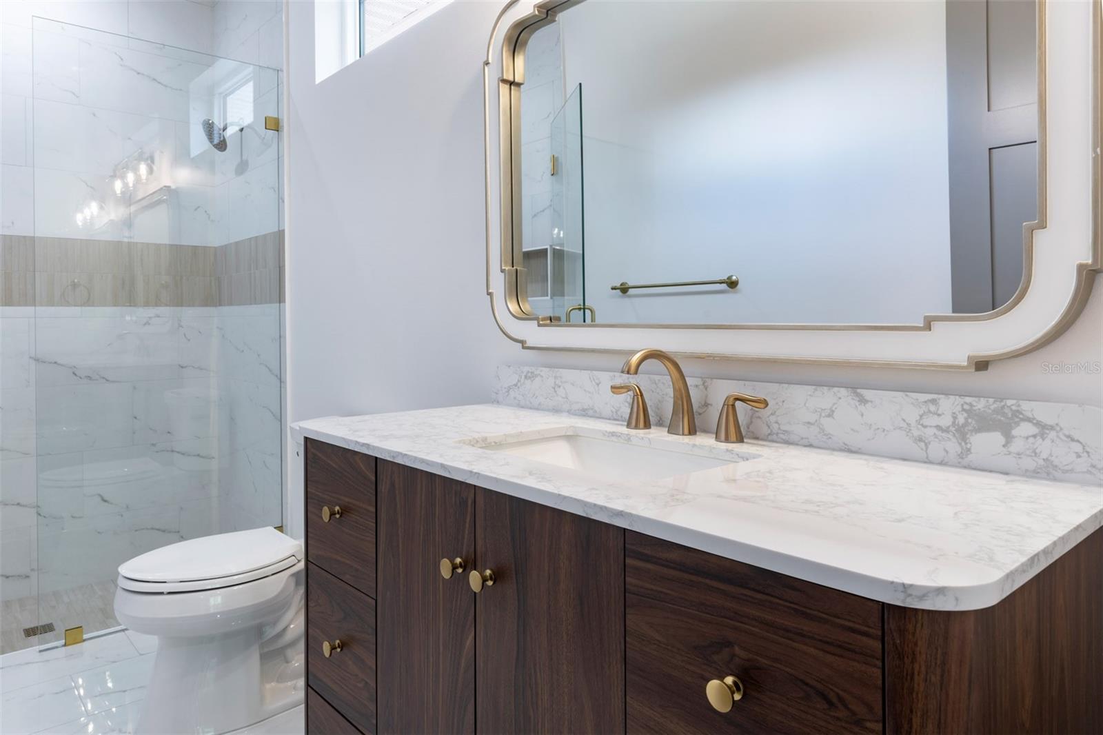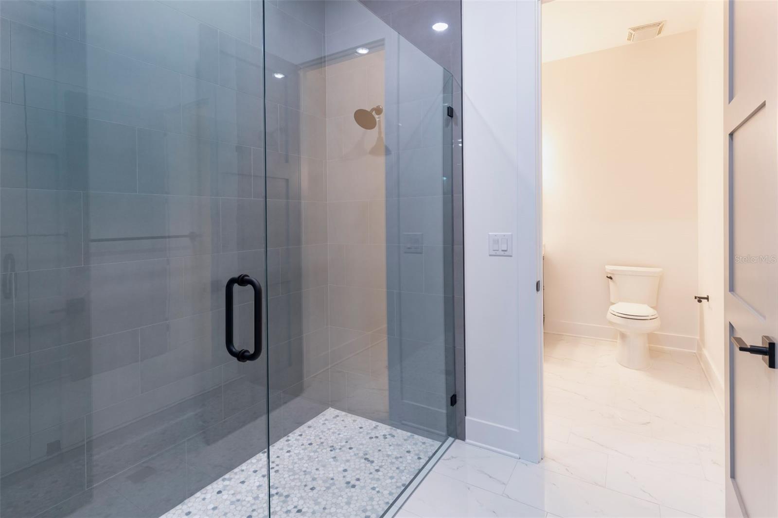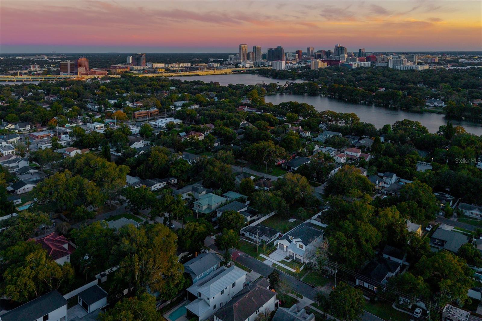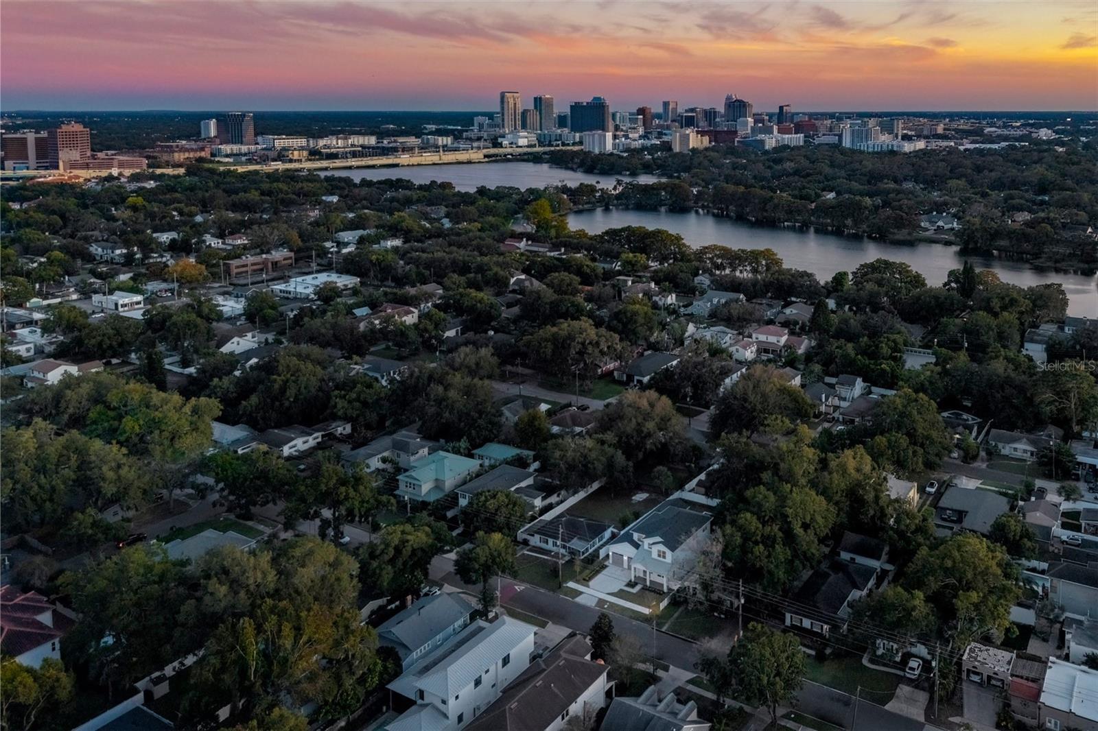 An incredible location with accessibility to its charming downtown main street, that College Park is known for. Enter inside the Silverleaf, a two-story new construction residence concepted by Soco Home Collection. It is transitionally designed with elevated selections and enduring architecture. Encompassing five bedrooms, a primary and guest suite on the first floor and three bedrooms, two baths upstairs with flex space, all rooms generously sized sprawling across nearly 4, 000 square feet. Experience an open living concept with wide plank white oak flooring in all living spaces and 11-foot ceilings which add to the spaciousness of the home. A wide entry foyer features inlaid herringbone tile and enjoys clear views to the backyard through stacking sliding doors to pool. An impressive gathering space makes entertaining easy with an expansive kitchen with clean lines featuring custom double stacked cabinets to ceiling, an oversized island with quartz counters that provides loads of workspace for the emerging chef. A marble-designed backsplash adds character, finished with upgraded gold accented fixtures with sophisticated lighting warming the space. Upscale Bosch appliances and Fisher Paykel refrigerator all panel fronted for continuity. A generous closet pantry is fully customized for organization. This home is filled with storage. Kitchen also features a combined dining space flanked with windows and signature lighting overhead. All spaces blend, with the living room opening to covered porch, and include a stylish wet bar with floating wood shelving and customized tile accents. An outdoor oasis awaits with a sparkling saltwater pool and generous green space for enjoying Florida fall nights. Primary suite is a retreat with ample space and great light. Primary bath is neutral toned with walk-in shower with seamless glass enclosure, dual sinks with carefully selected details, all adding to the elegance. Great primary closet is fully fitted with custom closet organization, making move-in a breeze. The additional first-floor office or guest room welcomes you with custom barn doors with modern hardware and a full bath to make any guest feel right at home. Upstairs finish level continues with consistent wood flooring, customized bath selections and spacious secondary bedrooms. All bedroom closets have custom organization, so every detail is accounted for. Other essential details include oversized garage with flooring finish, paver drive and walkway, professionally landscaped with irrigation system, dimmable recessed lighting throughout, smooth finish drywall, reinforced TV walls for ease of hanging, additional outlets for holiday decorating, additional storage closets strategically placed, generous secondary bedroom and bath sizes all with walk-in closets, summer barbeque in covered porch, fully fenced yard, Pebble Tec pool finish and more. College Park is uniquely close to downtown Orlando, a short distance to Edgewater Drive which is a special town center with locally owned retail, restaurants and shopping unique to this neighborhood. Enjoy top-rated schools and conveniences to many amenities and major roadways. Simplify your life, move right in and capture the reason why so many choose College Park to call home.