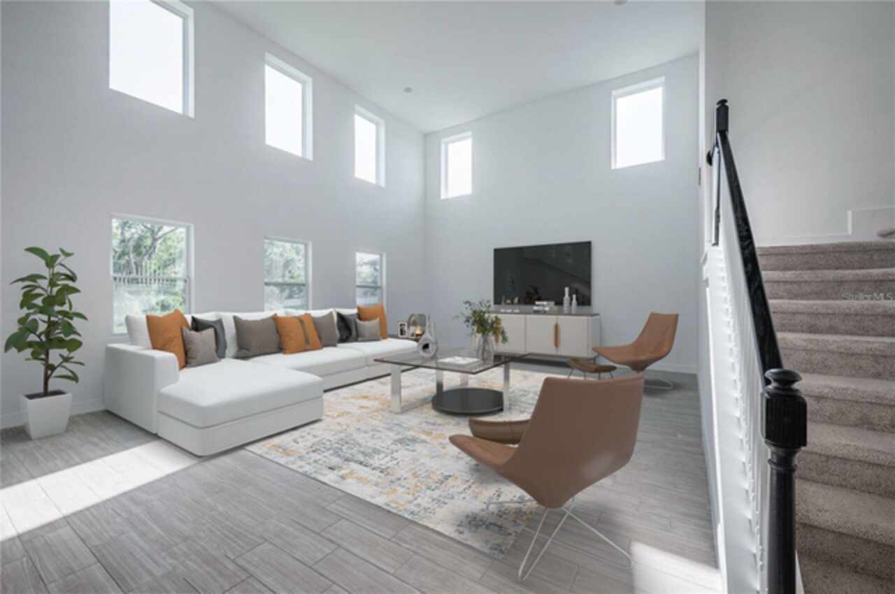 One or more photo(s) has been virtually staged. Amazing water views! Modern luxury meets everyday comfort in East Orlando. Welcome to this beautifully upgraded five-bedroom, four-bath home in the sought-after Waverly Walk community. Built by Ashton Woods in 2023, this home blends sleek modern design with the warmth and functionality every family desires. Enter into a spacious open-concept layout featuring soaring ceilings in the family room and stylish finishes throughout. The heart of the home is a designer kitchen complete with a large center island, quartz countertops, and elegant white cabinetry—ideal for cooking, entertaining or casual meals with family. The primary suite is on the second floor, offering a peaceful retreat with a generous walk-in closet and a luxurious en-suite bath featuring dual vanities and a walk-in shower. This home also includes designer baseboards, modern fixtures and ample space for relaxation and entertainment. Ideally in the heart of East Orlando, you’ll enjoy easy access to UCF, shopping, dining, recreation and major expressways (408 and 417). Don’t miss your chance to own this move-in-ready home and schedule your private showing today.