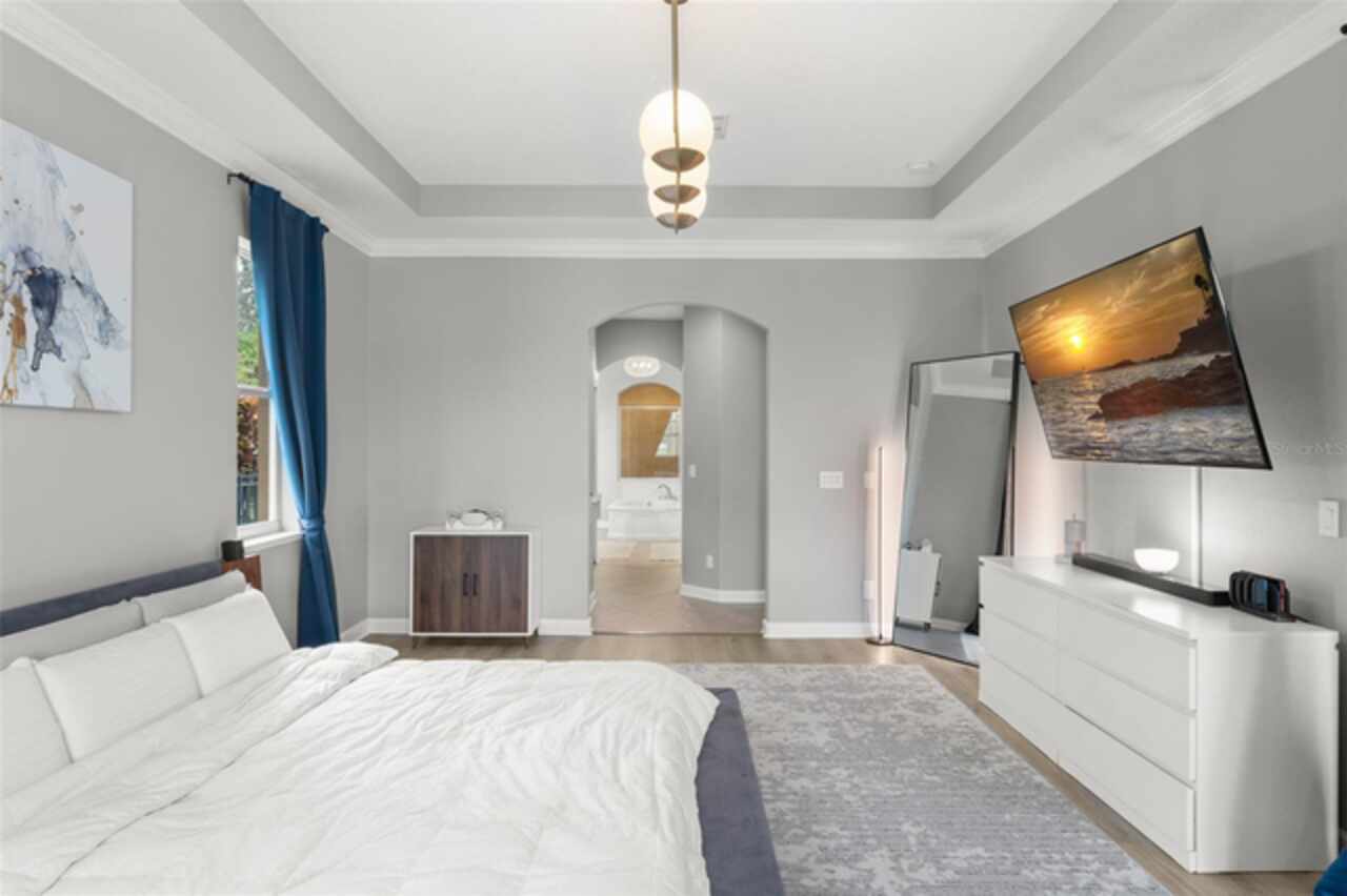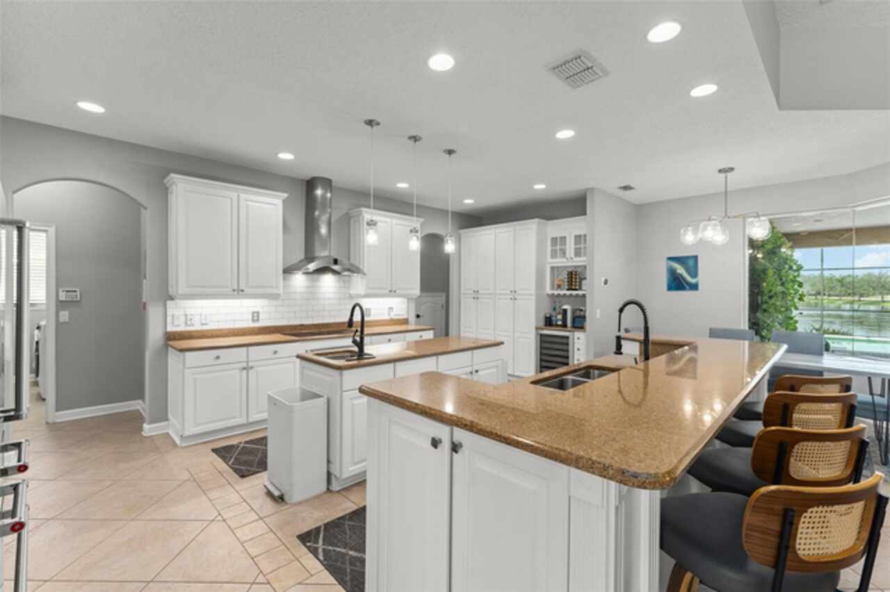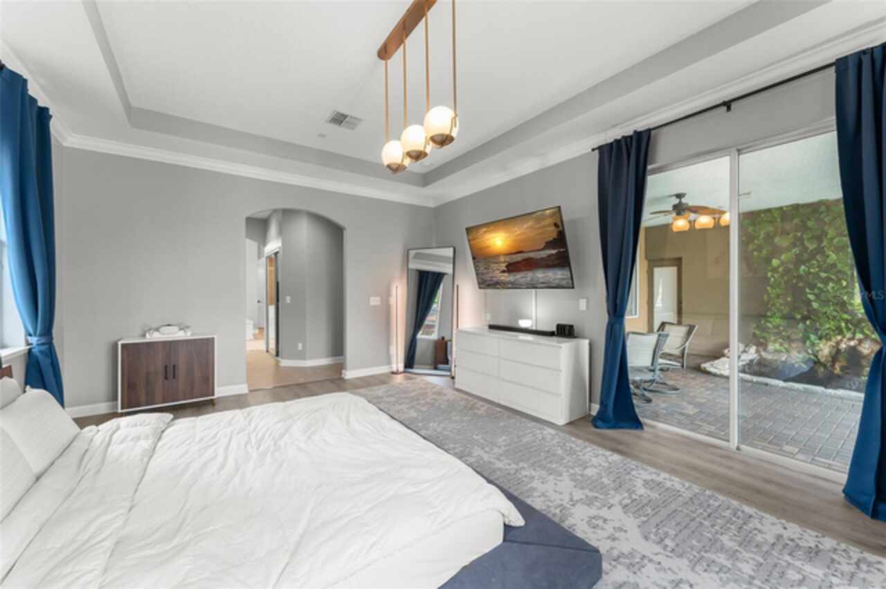 Welcome home to this beautifully updated pool residence in the coveted Lake Nona area, tucked inside the highly sought-after, gated Ziani section of La Vina. Offering the perfect blend of luxury, comfort, and convenience, this freshly painted home features a spacious split floor plan with 5 bedrooms, 4 full baths, and a large upstairs bonus room—ideal for a media room, playroom, or home office. At the heart of the home is the expansive gourmet kitchen, complete with a walk-in pantry, beautiful cabinetry, central island, granite countertops, stylish tiled backsplash, and stainless steel appliances. The kitchen seamlessly flows into the bright and airy family room with soaring ceilings, creating an inviting space to entertain or relax with loved ones. Step outside to embrace the Florida lifestyle. The covered lanai offers a unique retreat with a one-of-a-kind koi pond, peaceful pond views in the back, and a screened-in pool surrounded by elegant brick paver decking—perfect for relaxation and outdoor gatherings.The luxurious master suite provides a private sanctuary with dual walk-in closets, dual vanities, a soaking garden tub, and an oversized walk-in shower. This home has been thoughtfully updated with modern conveniences, including a new hot water heater (2023), new downstairs A/C (2021), new upstairs A/C (2023), and a new remote-control sprinkler system (2023). Smart lighting has been installed throughout, adding both efficiency and ease to everyday living. Perfectly situated in one of Orlando’s most desirable areas, the home offers easy access to SR 528 and SR 417, and is just minutes from Lake Nona Medical City, Orlando International Airport, and world-renowned theme parks. The gated community features secure access and a private playground for residents.As a special bonus, the property boasts a mature mango tree that produces over 100 mangos each year and a rare Longan fruit tree, making the backyard as delicious as it is beautiful.Don’t miss the chance to make this spacious, move-in ready Lake Nona home yours. Call today to schedule your private showing!