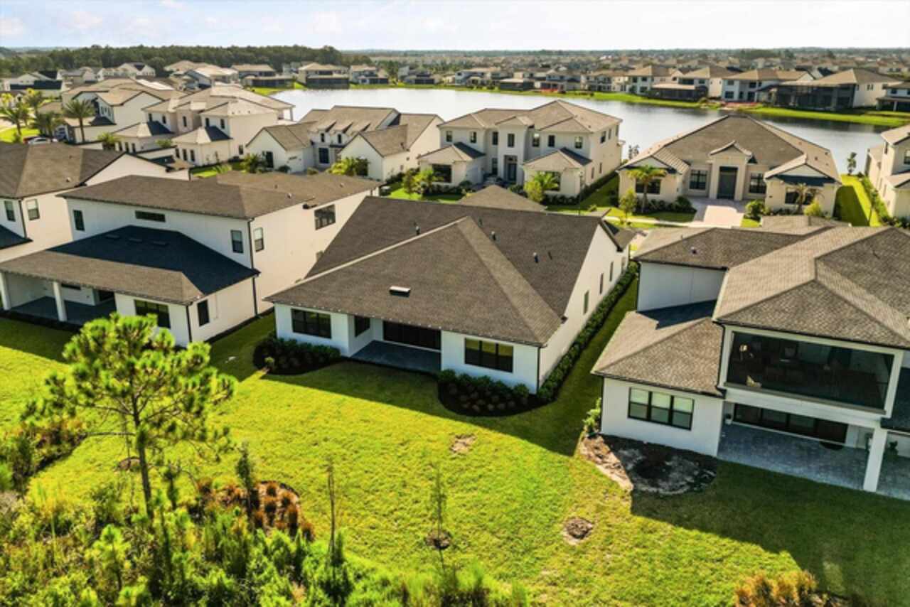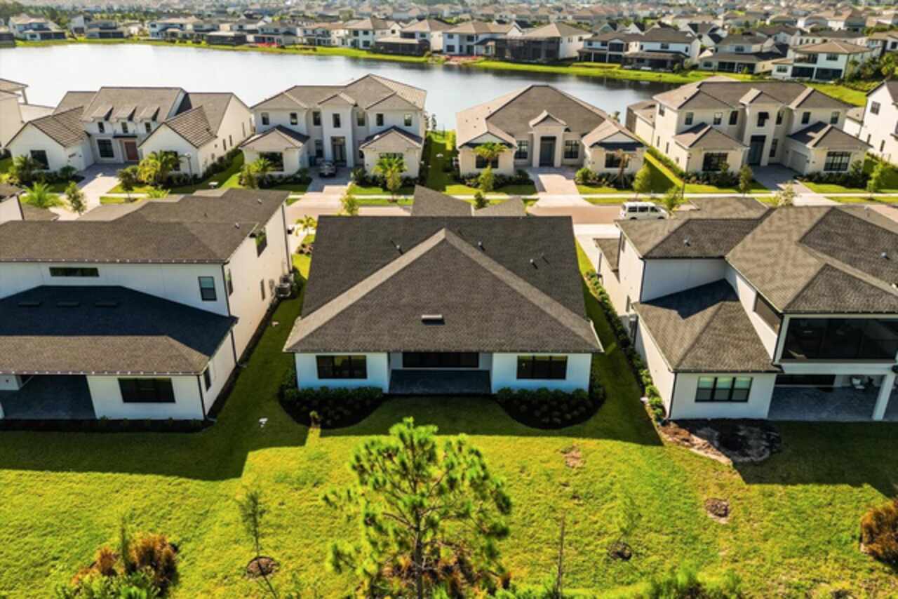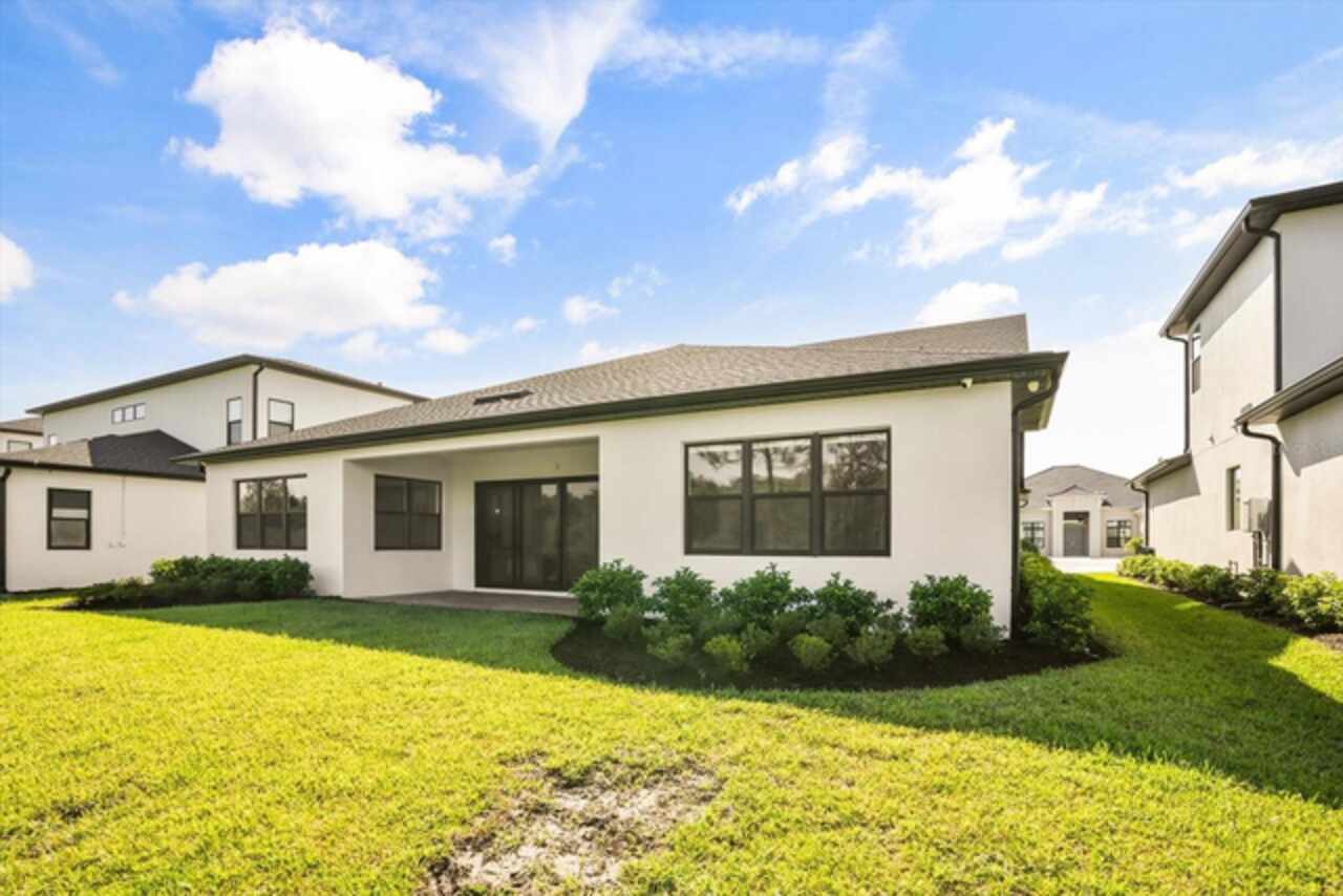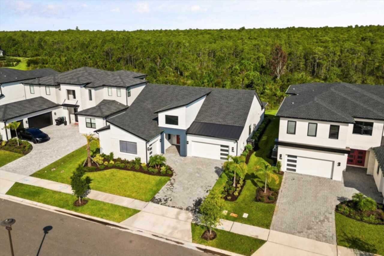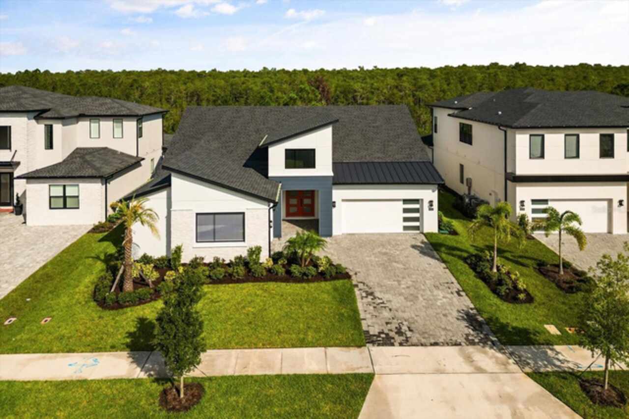Welcome to the Bordeaux Modern, a striking contemporary one-story residence located in the private community of Laurel Pointe, Toll Brother’s new and gated neighborhood with only 124 homes. Completely sold out with construction complete, this home represents a great opportunity to own in one of Lake Nona’s most sought-after communities. This home is exceptionally rare—one of only two single-story Bordeaux floor plans in the 70' Collage Collection across the entire Laurel Pointe community. This thoughtfully designed four bedroom, four bathroom home spans nearly 3, 000 square feet of luxury living space on a generous .23-acre lot. The bold modern elevation and clean architectural lines make a stunning first impression. Inside, soaring ceilings, sleek tile floors, and an open-concept design create a perfect balance of style and comfort. The heart of the home features a chef’s kitchen with an oversized waterfall island, walk-in pantry, custom cabinetry, and premium appliances, flowing seamlessly into the casual dining space and expansive great room with a dramatic feature wall. Walls of glass frame the private conservation view and open to the covered lanai, offering the ideal setting for indoor-outdoor entertaining. The oversized backyard provides plenty of room to design your own pool and backyard oasis. The primary suite is a serene retreat with tray ceilings, large windows overlooking the conservation, a spa-inspired bathroom with dual vanities, a free-standing tub, an oversized shower with designer tile, and a spacious walk-in closet. Three additional bedrooms each include walk-in closets and access to full baths, while a versatile flex room provides the perfect space for a home office, media lounge, or playroom. Additional highlights include a split three car garage, and energy-efficient construction with designer finishes throughout. As a Laurel Pointe homeowner, you will also enjoy full access to Laureate Park’s amenities, including LP Fit fitness center, resort-style pools, playgrounds, and miles of trails. Lake Nona’s Town Center, Medical City, and top-rated schools are just minutes away.