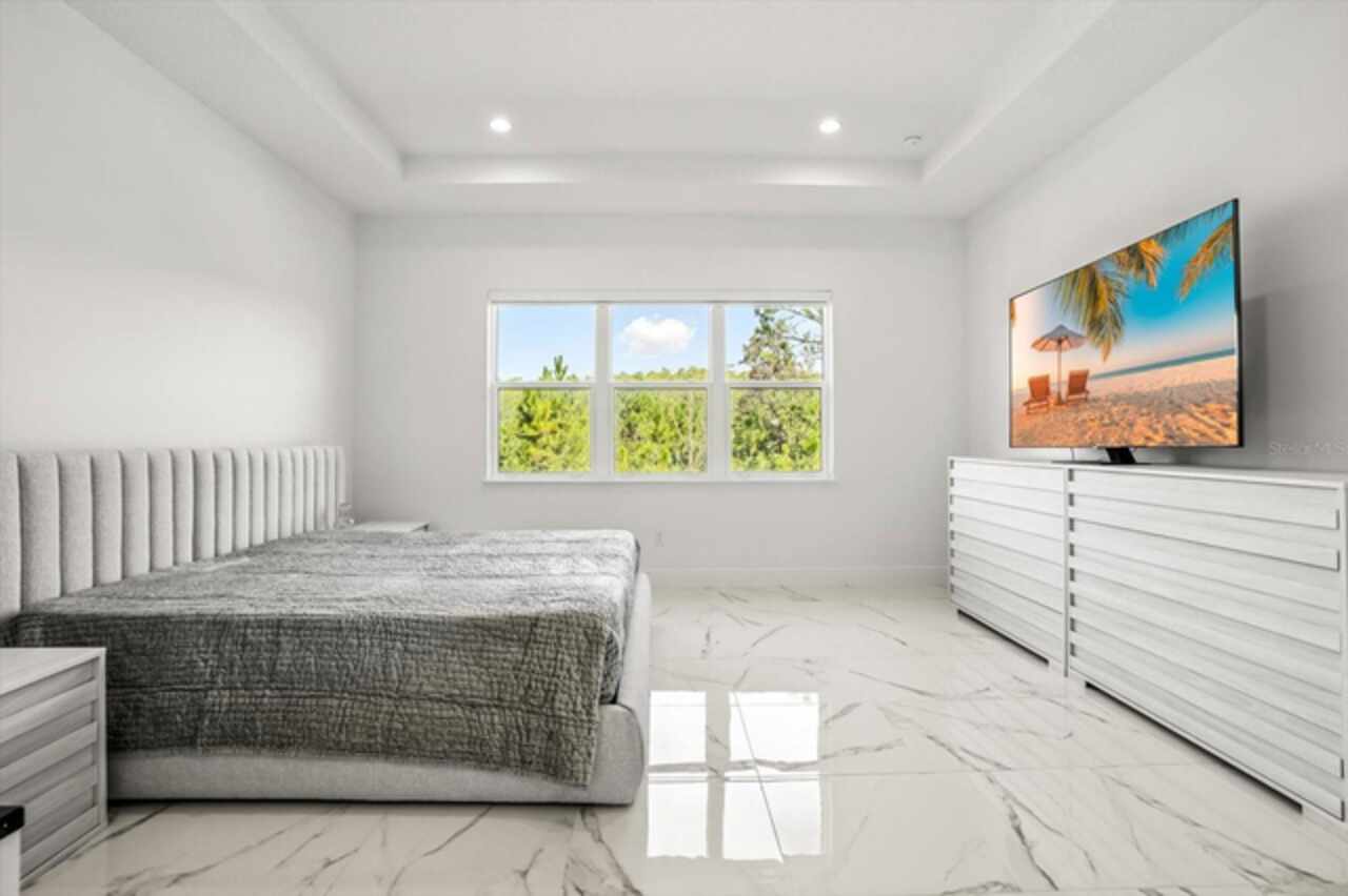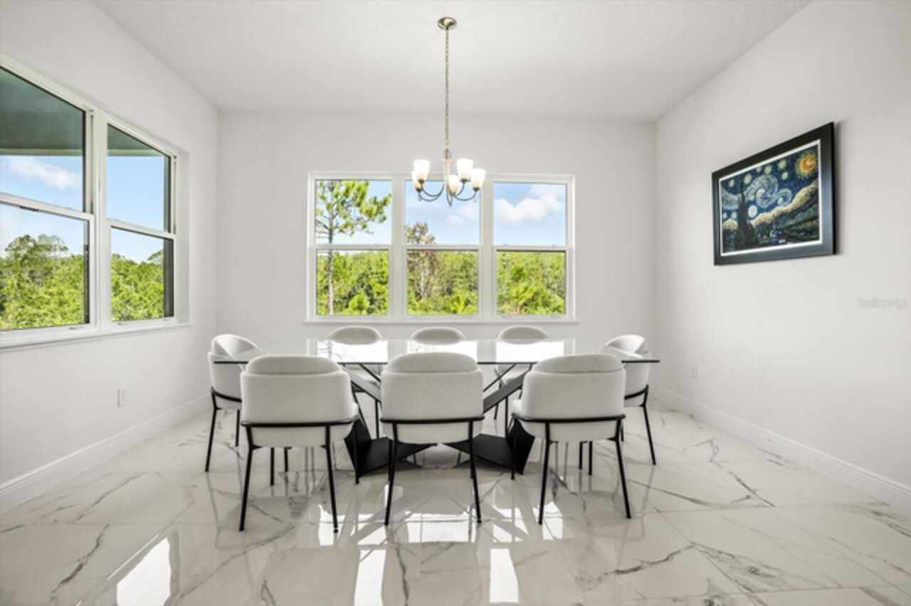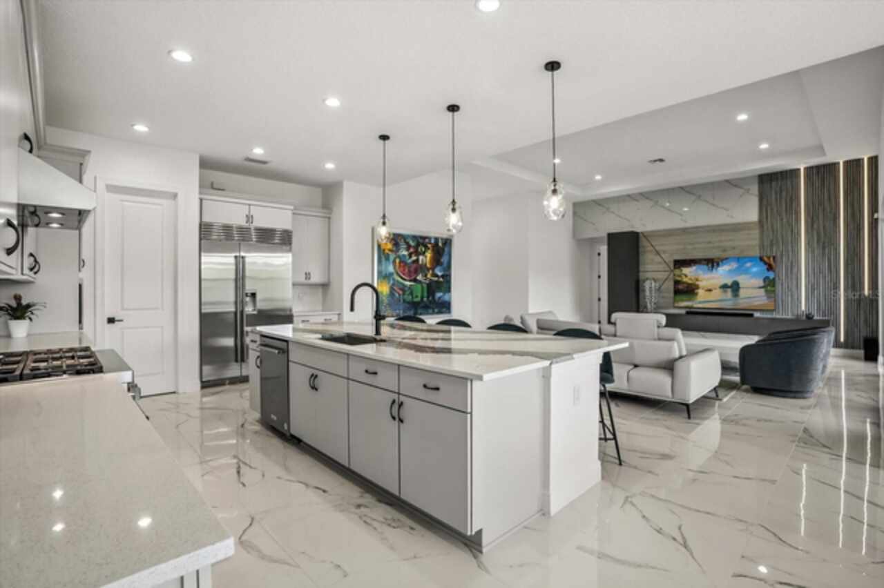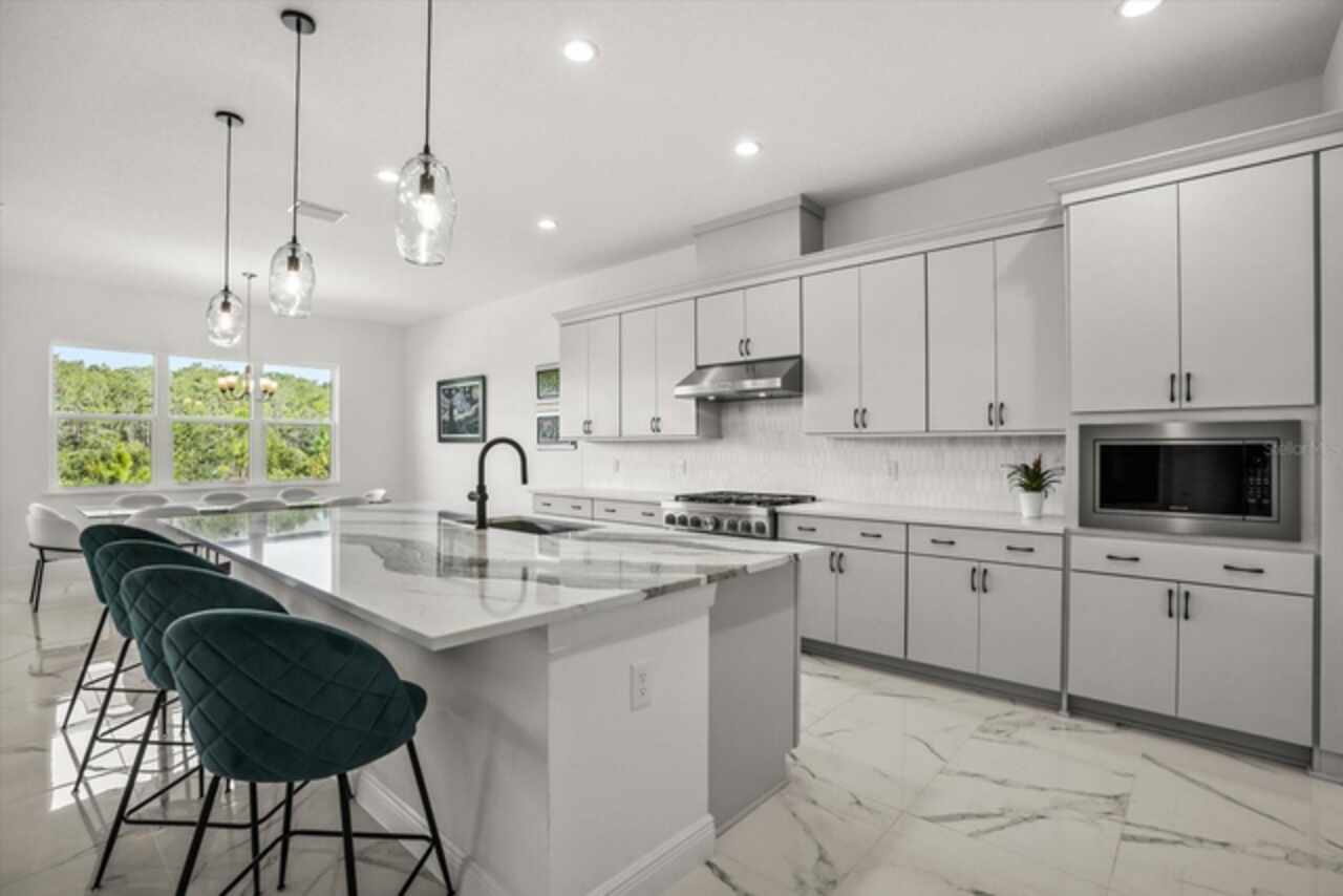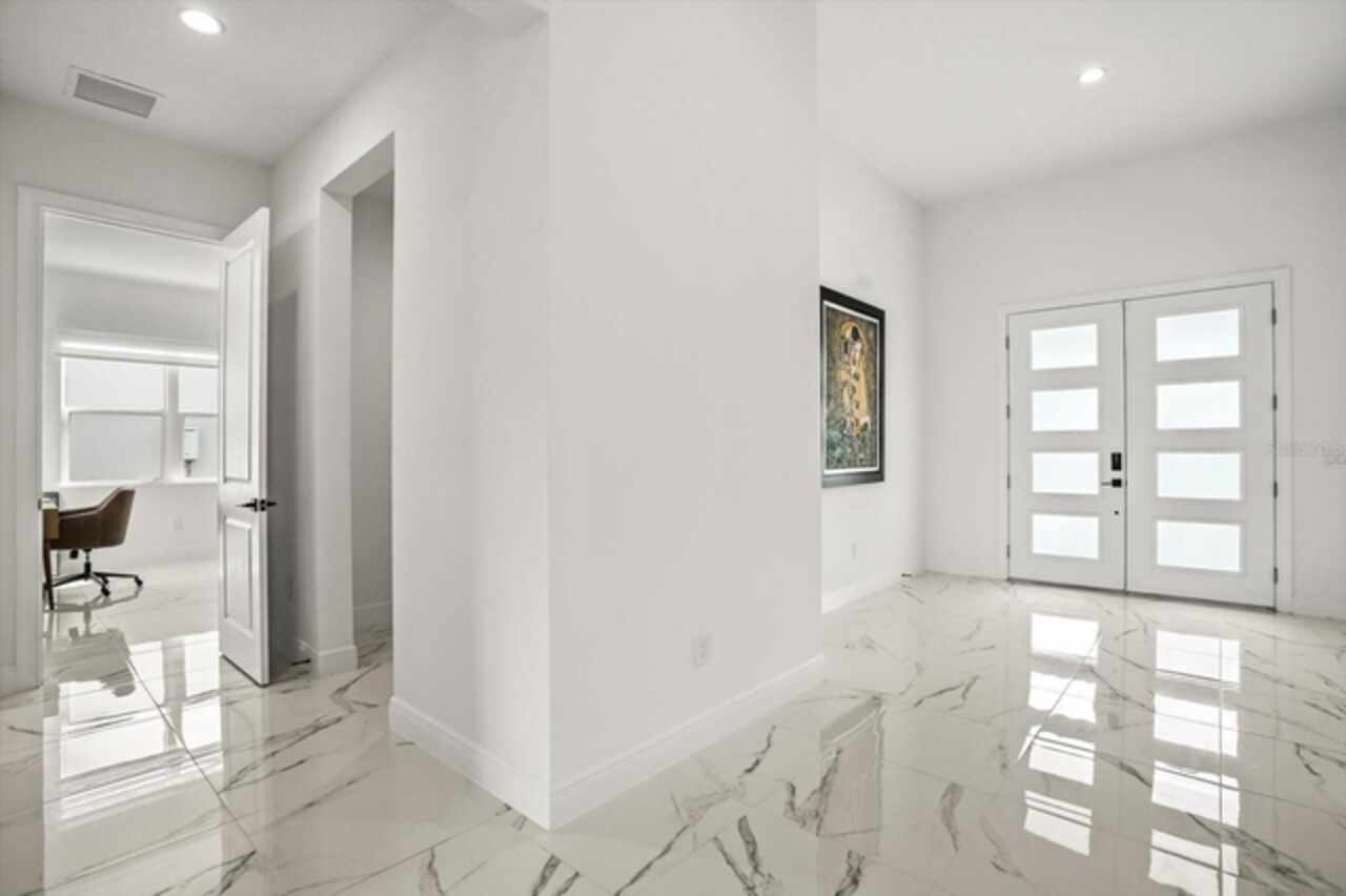 Welcome to the Bordeaux Modern, a striking contemporary one-story residence located in the private community of Laurel Pointe, Toll Brother’s new and gated neighborhood with only 124 homes. Completely sold out with construction complete, this home represents a great opportunity to own in one of Lake Nona’s most sought-after communities. This home is exceptionally rare—one of only two single-story Bordeaux floor plans in the 70' Collage Collection across the entire Laurel Pointe community. This thoughtfully designed four bedroom, four bathroom home spans nearly 3, 000 square feet of luxury living space on a generous .23-acre lot. The bold modern elevation and clean architectural lines make a stunning first impression. Inside, soaring ceilings, sleek tile floors, and an open-concept design create a perfect balance of style and comfort. The heart of the home features a chef’s kitchen with an oversized waterfall island, walk-in pantry, custom cabinetry, and premium appliances, flowing seamlessly into the casual dining space and expansive great room with a dramatic feature wall. Walls of glass frame the private conservation view and open to the covered lanai, offering the ideal setting for indoor-outdoor entertaining. The oversized backyard provides plenty of room to design your own pool and backyard oasis. The primary suite is a serene retreat with tray ceilings, large windows overlooking the conservation, a spa-inspired bathroom with dual vanities, a free-standing tub, an oversized shower with designer tile, and a spacious walk-in closet. Three additional bedrooms each include walk-in closets and access to full baths, while a versatile flex room provides the perfect space for a home office, media lounge, or playroom. Additional highlights include a split three car garage, and energy-efficient construction with designer finishes throughout. As a Laurel Pointe homeowner, you will also enjoy full access to Laureate Park’s amenities, including LP Fit fitness center, resort-style pools, playgrounds, and miles of trails. Lake Nona’s Town Center, Medical City, and top-rated schools are just minutes away.